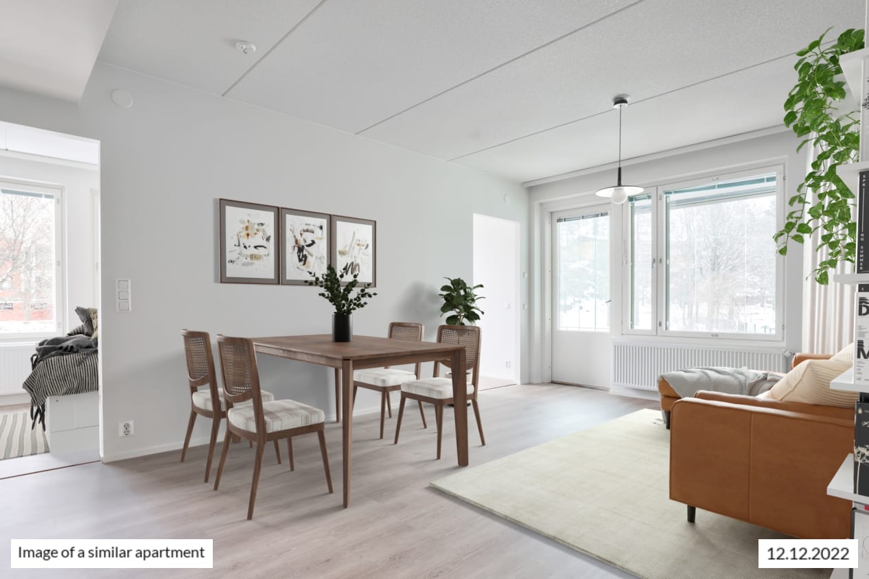 This highly adaptable two-bedroom home has space for running your everyday life, hobbies, resting and lounging around. The home has a good-sized living room, a kitchen that is combined seamlessly with it, two bedrooms and a nice amount of storage space. The handy kitchen/living room can be furnished in many ways, with areas designated for dining as well as lounging. In the summer, you can extend your living space to your own, glassed-in balcony. The clever bathroom has space for spa experiences as well as your washing machine. The neutral colour scheme provides a great backdrop for your personal decor style. This highly adaptable home offers everything you need for good everyday life. Maybe this could be your new rental home?