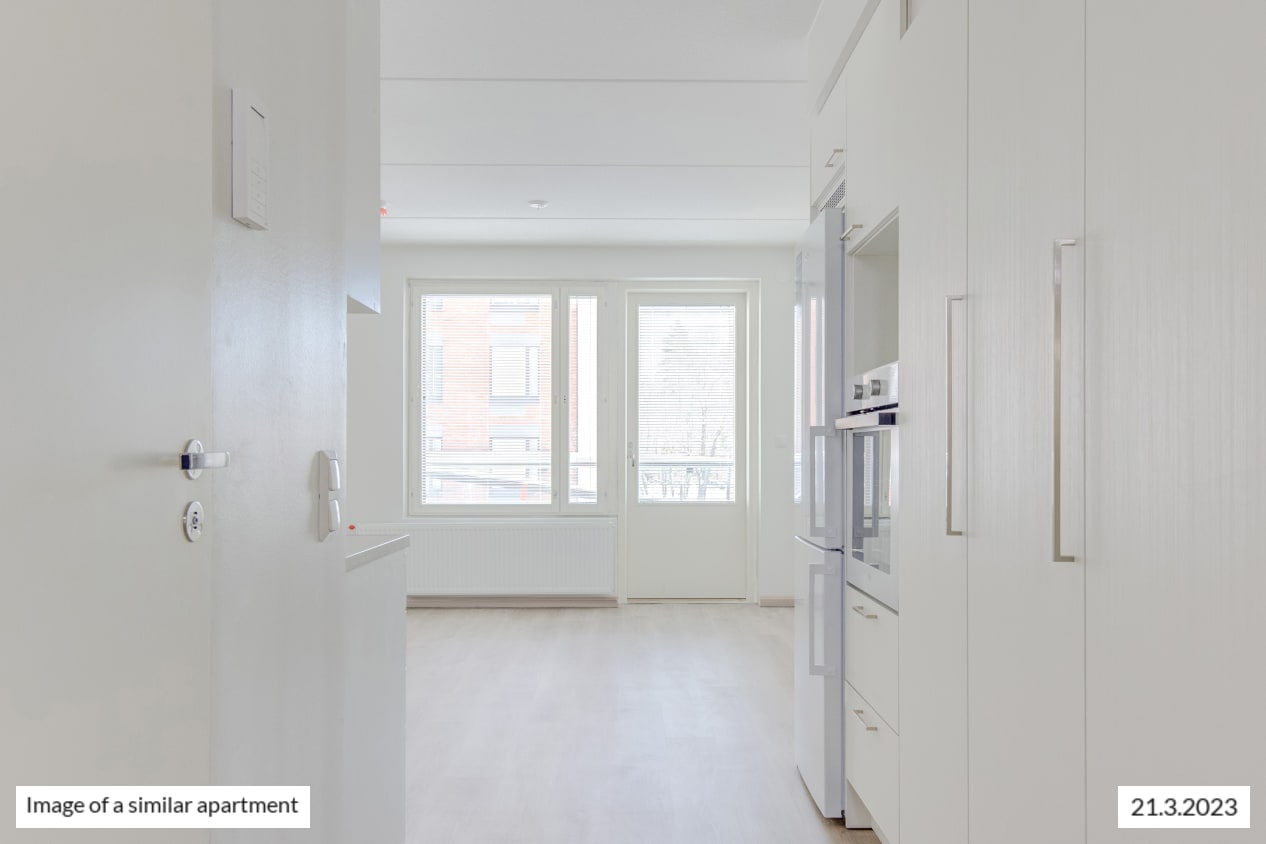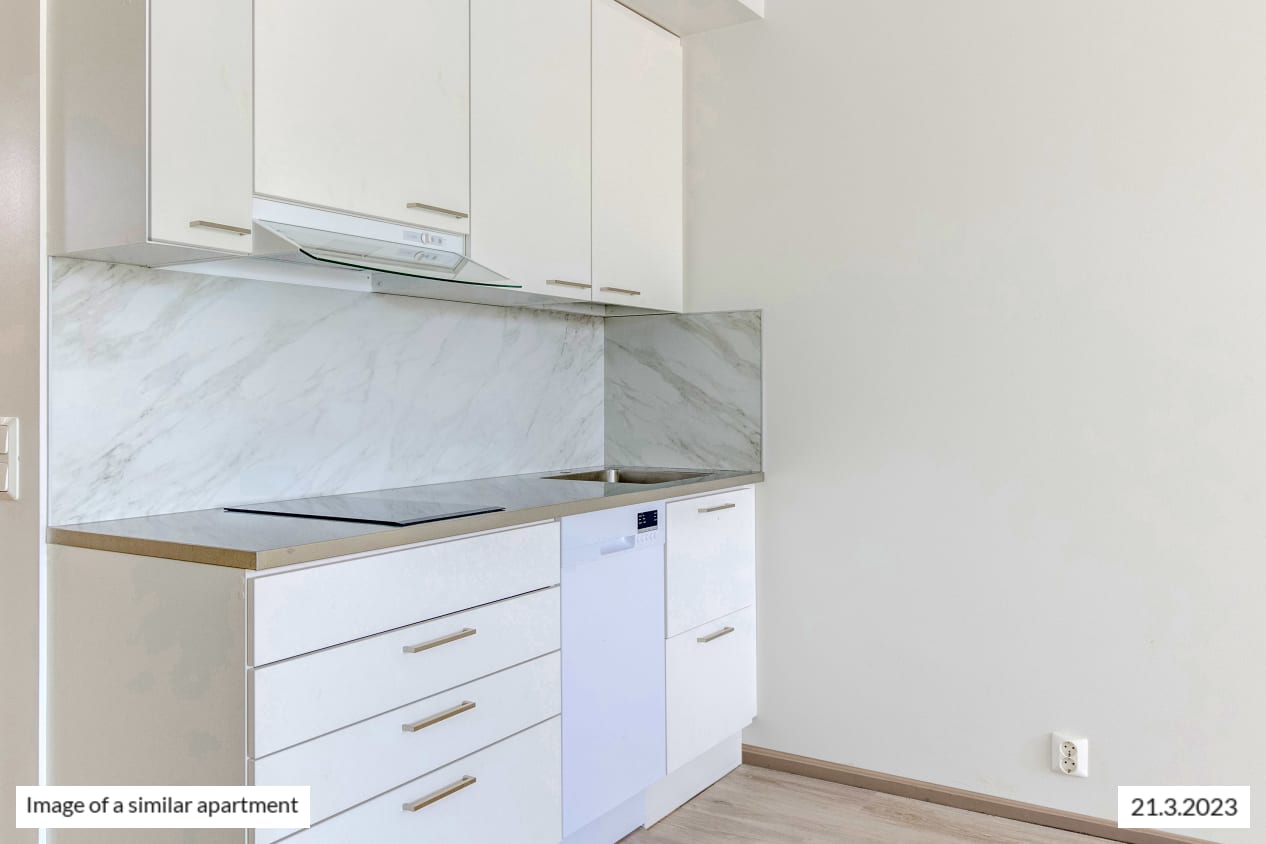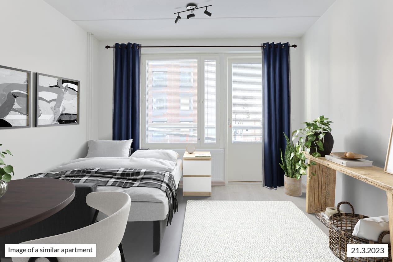 This pleasant little home has everything within your reach. The kitchen and living room of the studio combine into a relaxed lounging area that is easy to furnish to create a cosy space. Added airiness and space is provided by your own glassed-in balcony.