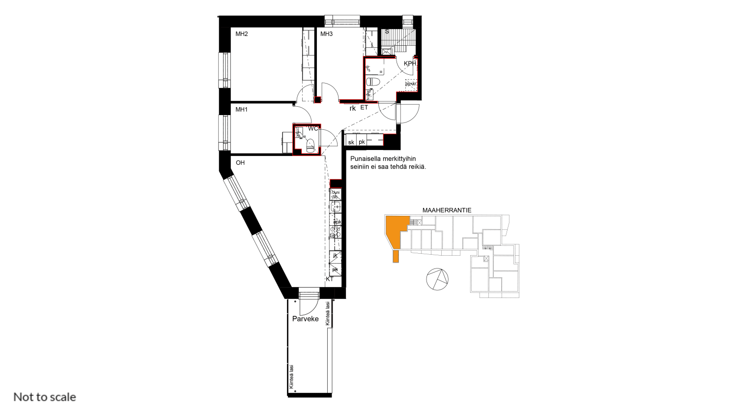 You will love this light-filled three-bedroom home with windows in three different directions. The kitchen and living room combine into an interesting, light-filled lounging area that can be extended to the glassed-in balcony in the summer. Your own sauna and spacious bathroom are ideal for relaxation, with everyday convenience increased by the second toilet. There is plenty of wardrobe space in all three bedrooms and in the entrance hallway.