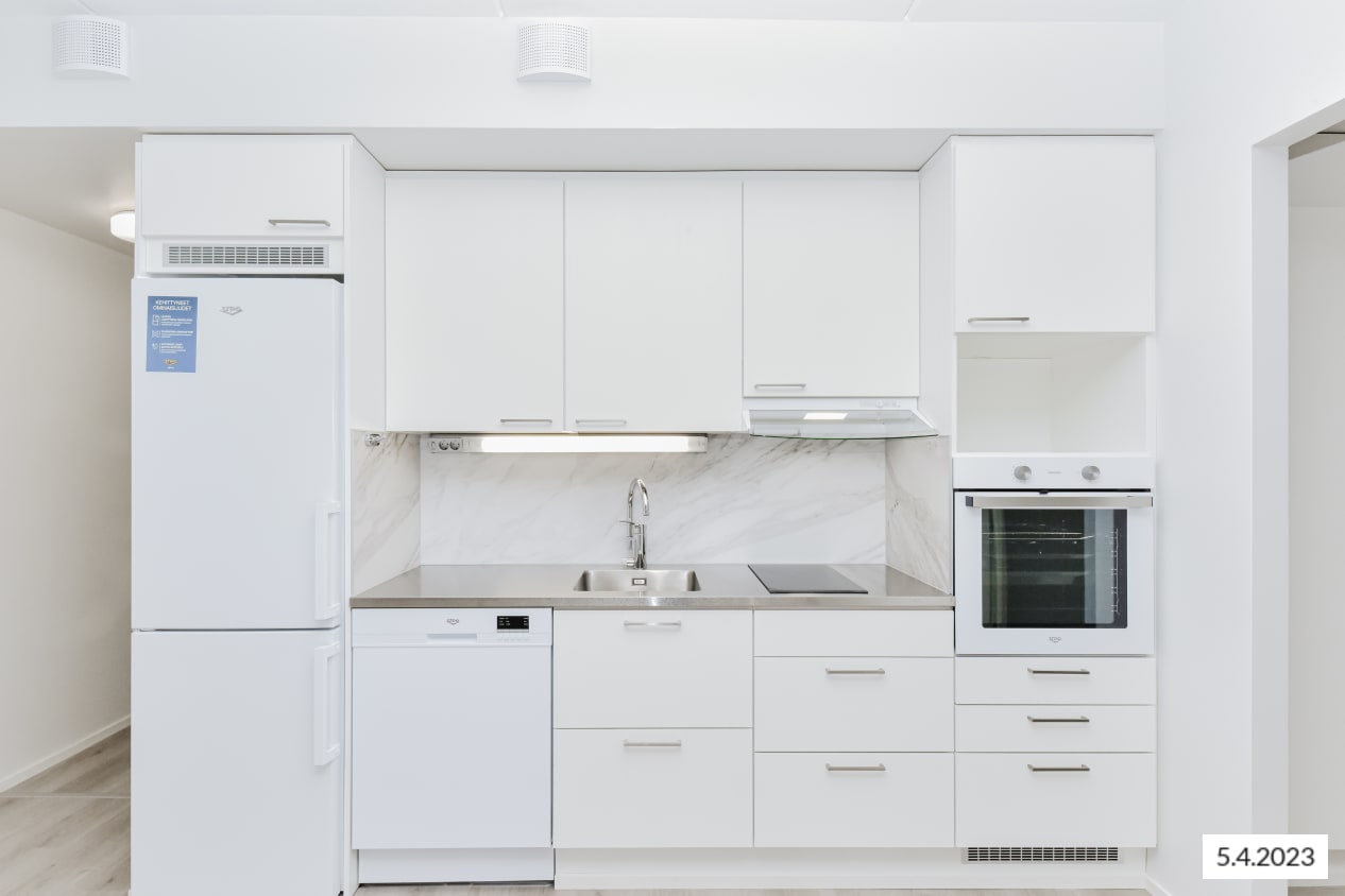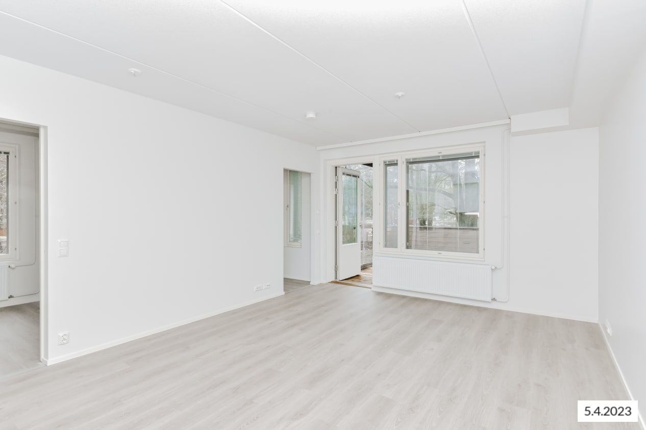This highly adaptable two-bedroom home has space for running your everyday life, hobbies, resting and lounging around. The home has a good-sized living room, a kitchen that is combined seamlessly with it, two bedrooms and a nice amount of storage space. The handy kitchen/living room can be furnished in many ways, with areas designated for dining as well as lounging. In the summer, you can extend your living space to your own, glassed-in balcony. The clever bathroom has space for spa experiences as well as your washing machine. The neutral colour scheme provides a great backdrop for your personal decor style. This highly adaptable home offers everything you need for good everyday life. Maybe this could be your new rental home?