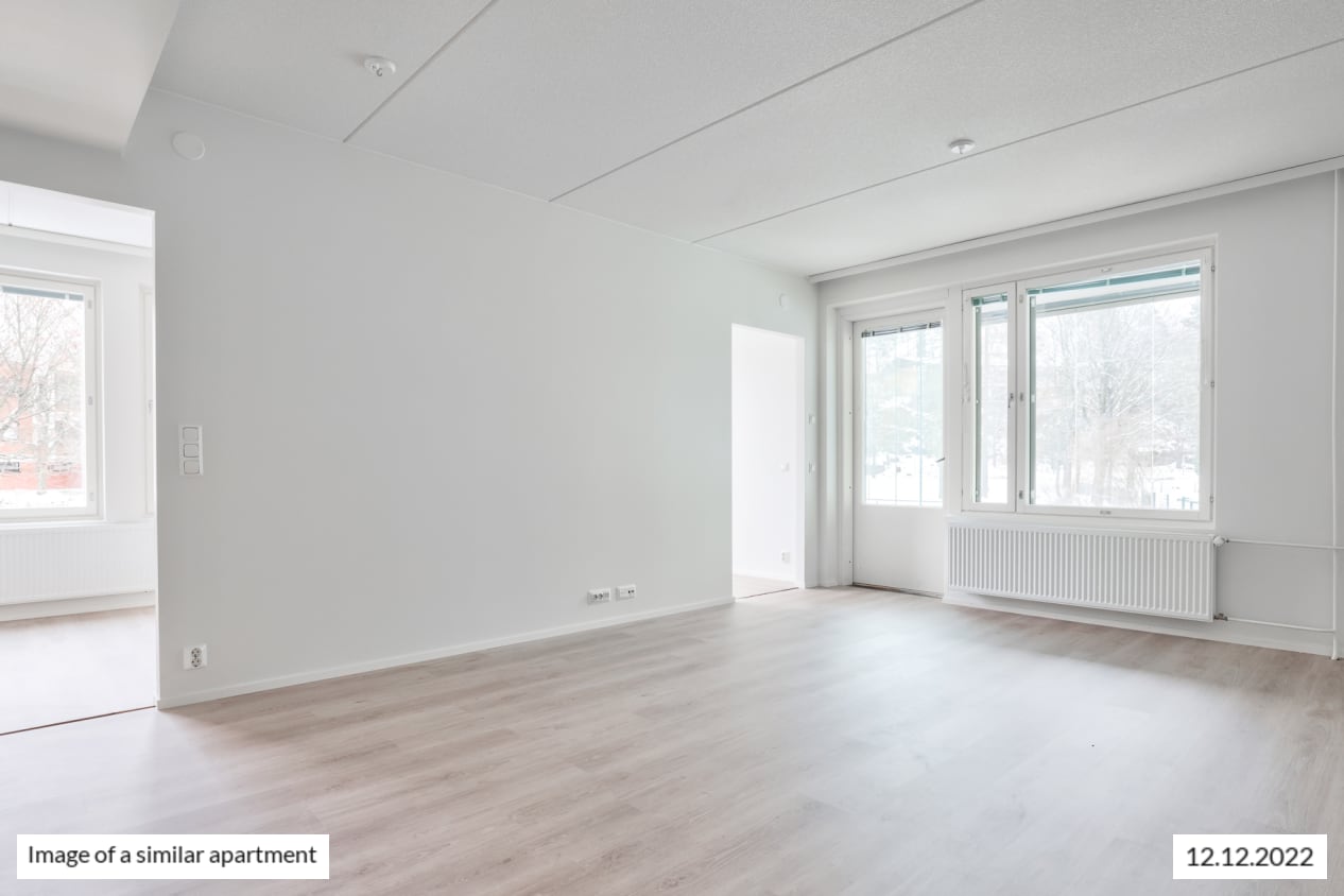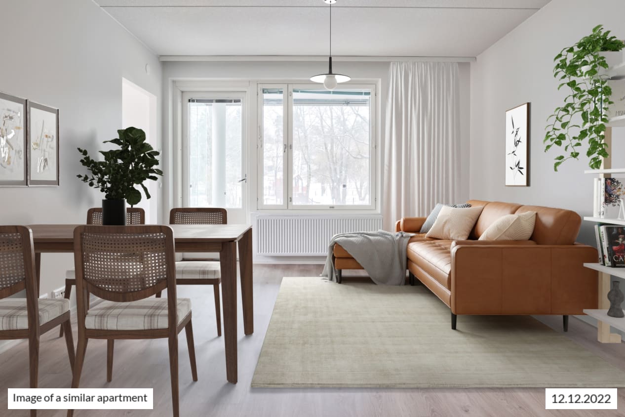 This highly adaptable two-bedroom home has space for running your everyday life, hobbies, resting and lounging around. The home has a good-sized living room, a kitchen that is combined seamlessly with it, two bedrooms and a nice amount of storage space. The handy kitchen/living room can be furnished in many ways, with areas designated for dining as well as lounging. In the summer, you can extend your living space to your own, glassed-in balcony. The clever bathroom has space for spa experiences as well as your washing machine. The neutral colour scheme provides a great backdrop for your personal decor style. This highly adaptable home offers everything you need for good everyday life. Maybe this could be your new rental home?