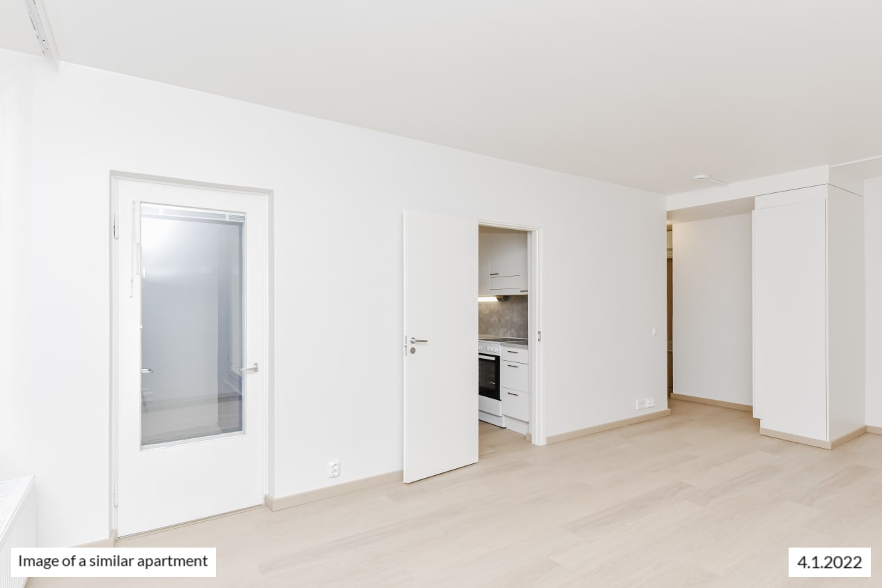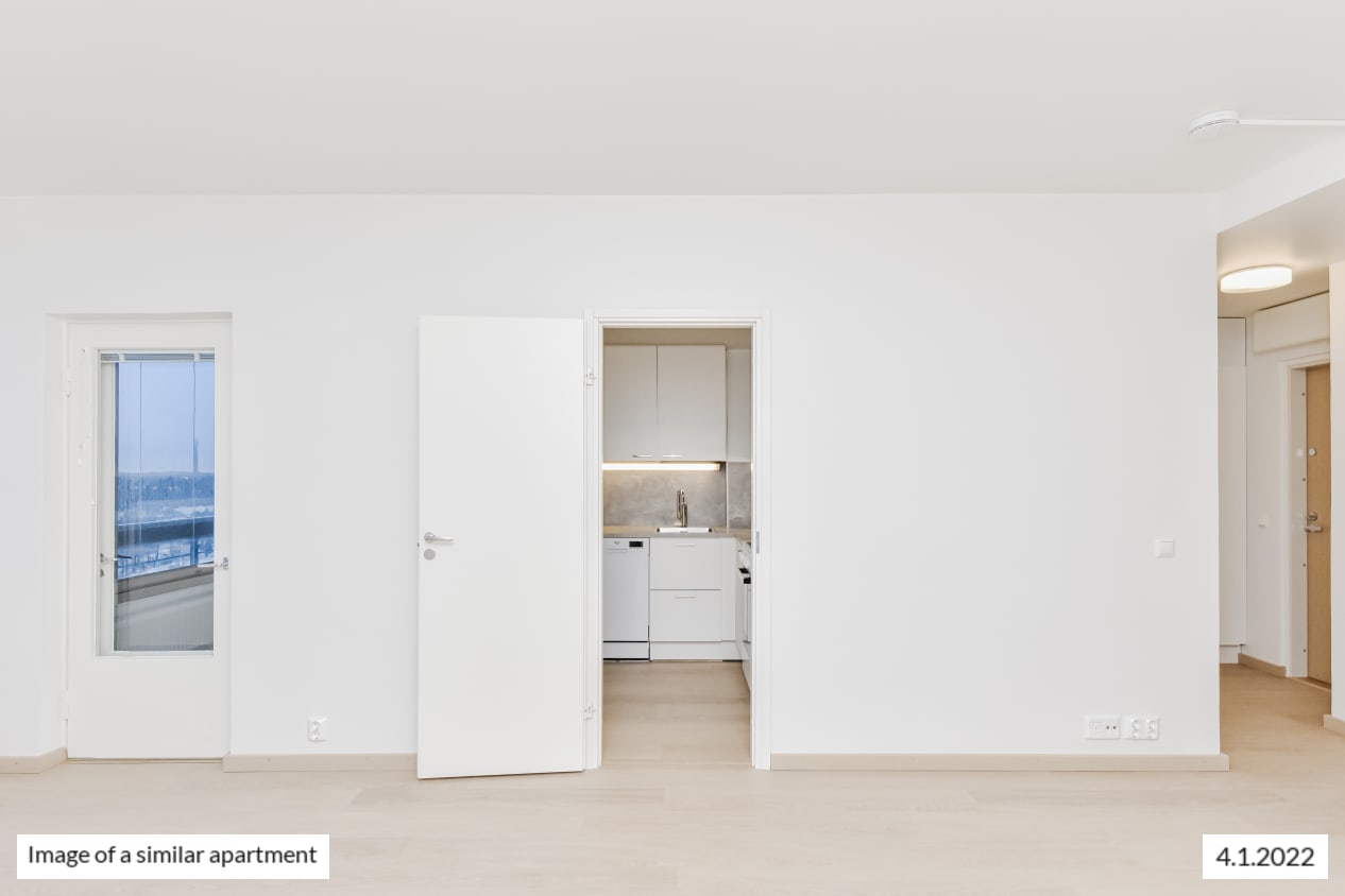 The interior materials of the apartments are light-colored and timeless. The floors are light oak laminate and the walls are painted white. The kitchen units have white cabinets. The space between the top and bottom cabinets and the worktop are grey laminate. In the 1-2-bedroom apartments, the equipment includes a ceramic hob, cooker hood, fridge-freezer and dishwasher. The studios have a ceramic hob and cooker hood and a fridge-freezer. Kitchen appliances are white. The furniture in the bathroom is from SATO's Kide collection. Their material is a very durable and beautiful white solid laminate. The bathroom walls are white tile, and the floor tiling is gray.
