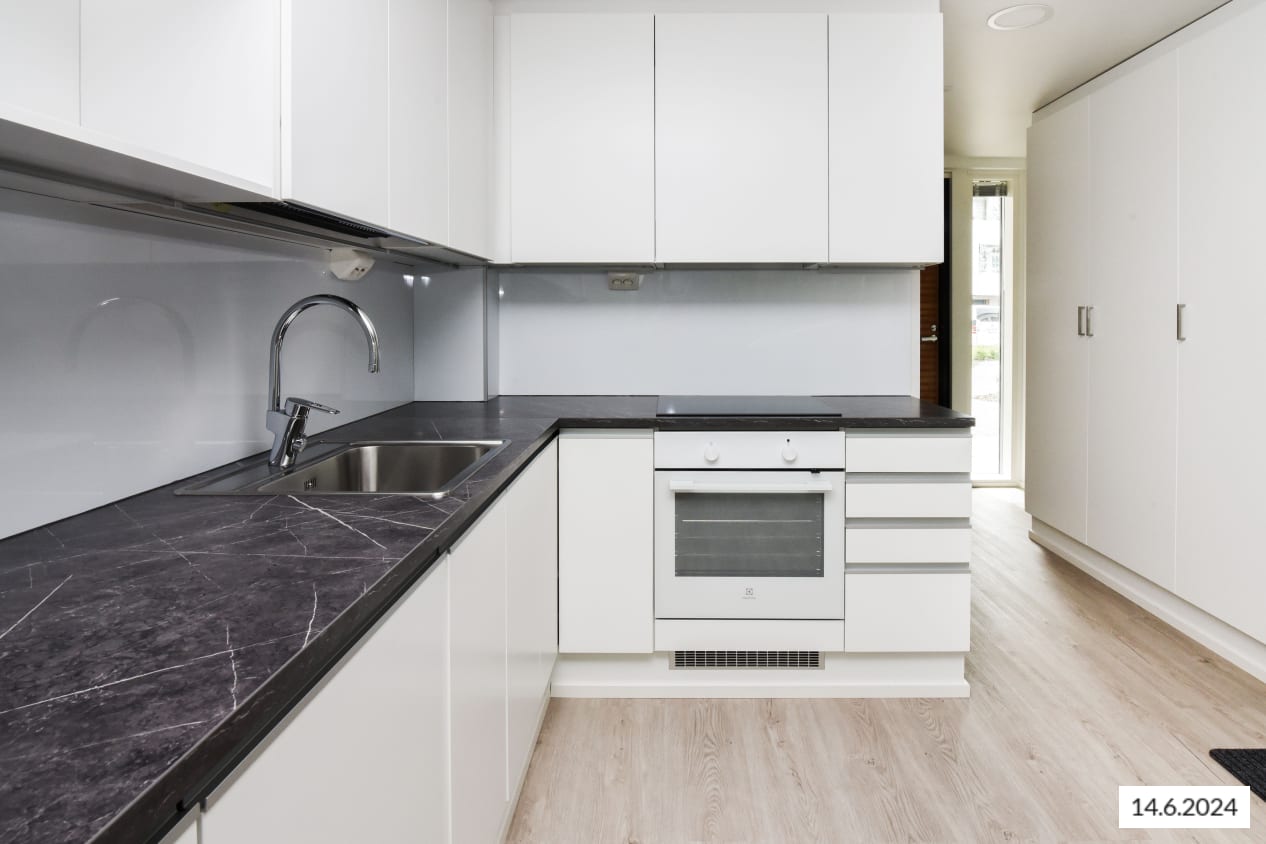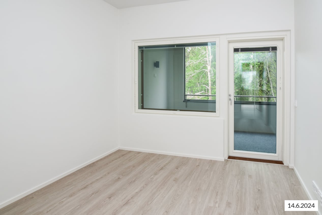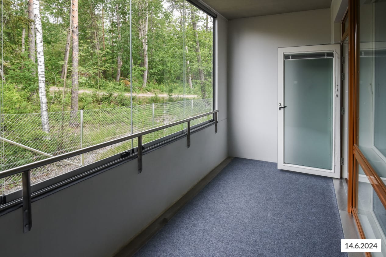 Here’s a wonderful opportunity to secure a home in a row house completed in 2024! This beautiful rental home offers two glazed balconies and bathrooms, as well as a private sauna, taking comfort to the next level. The bright home has plenty of storage space, with both cold and warm storage rooms near the entrance. The balconies, which span the width of the apartment, provide views of the lush nearby nature.