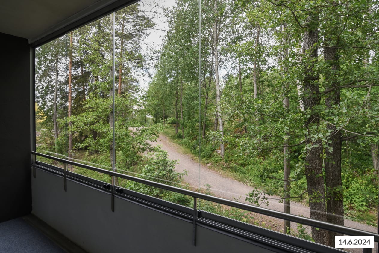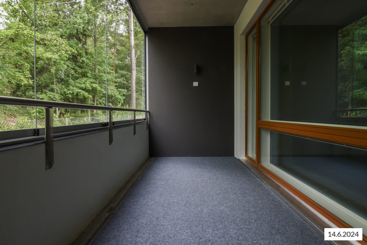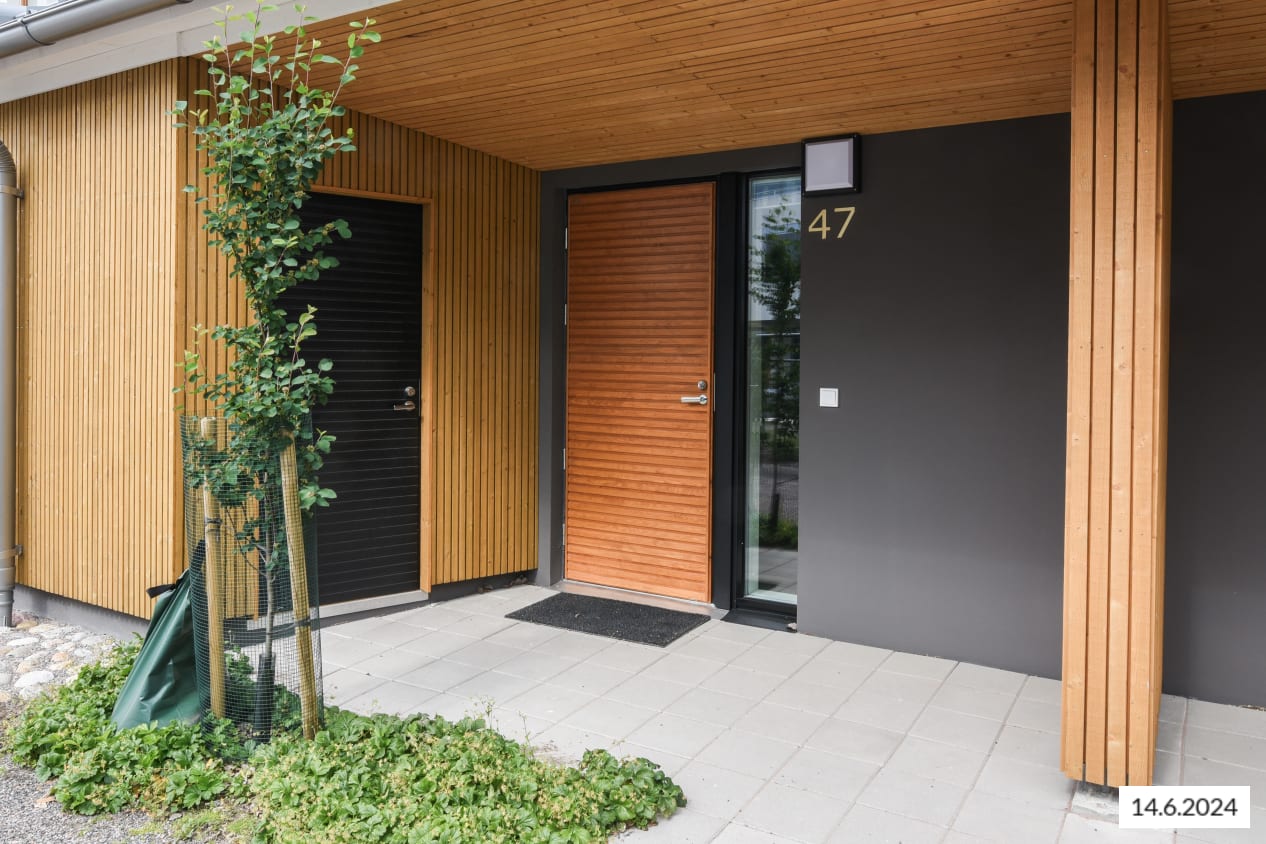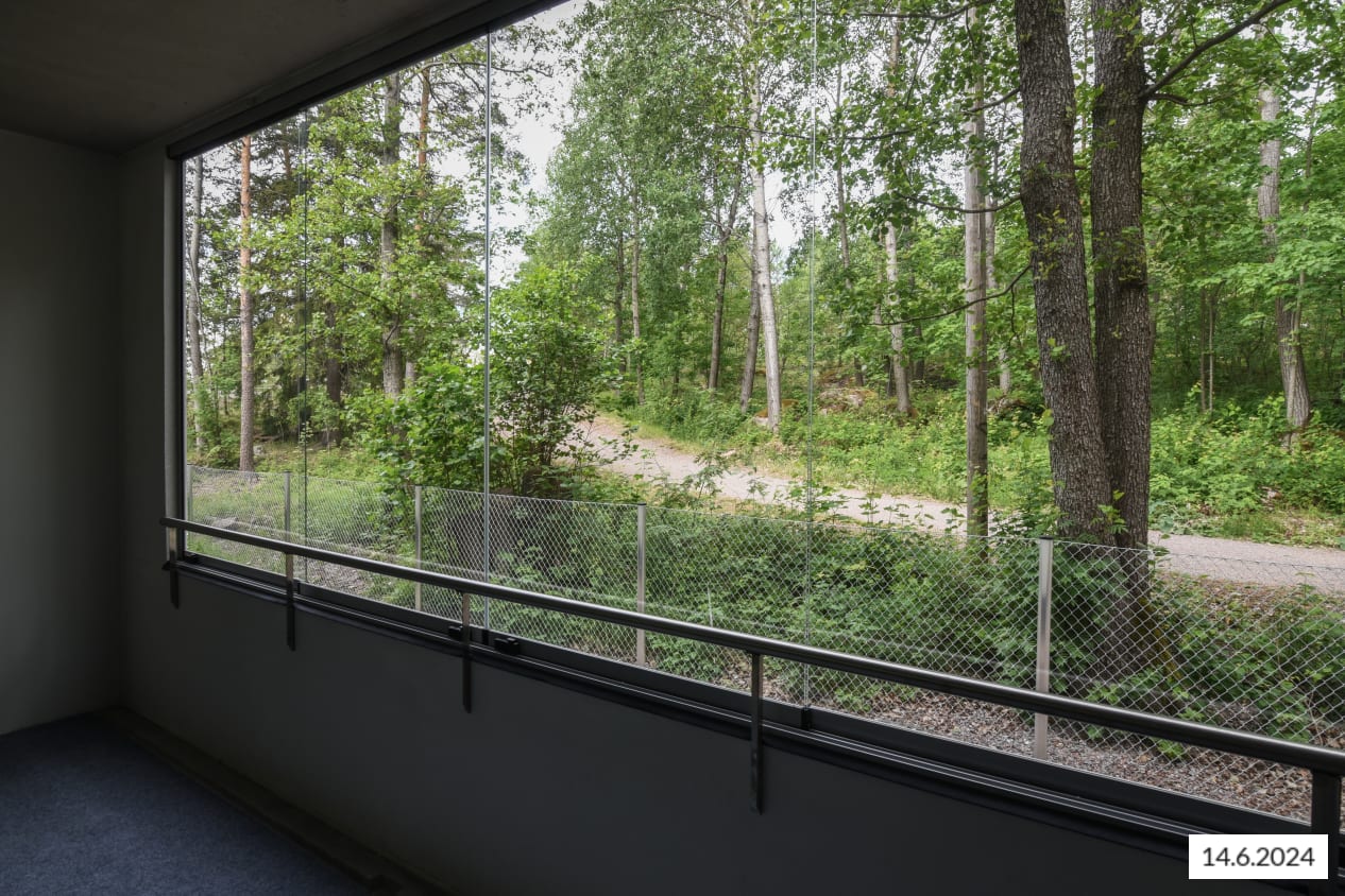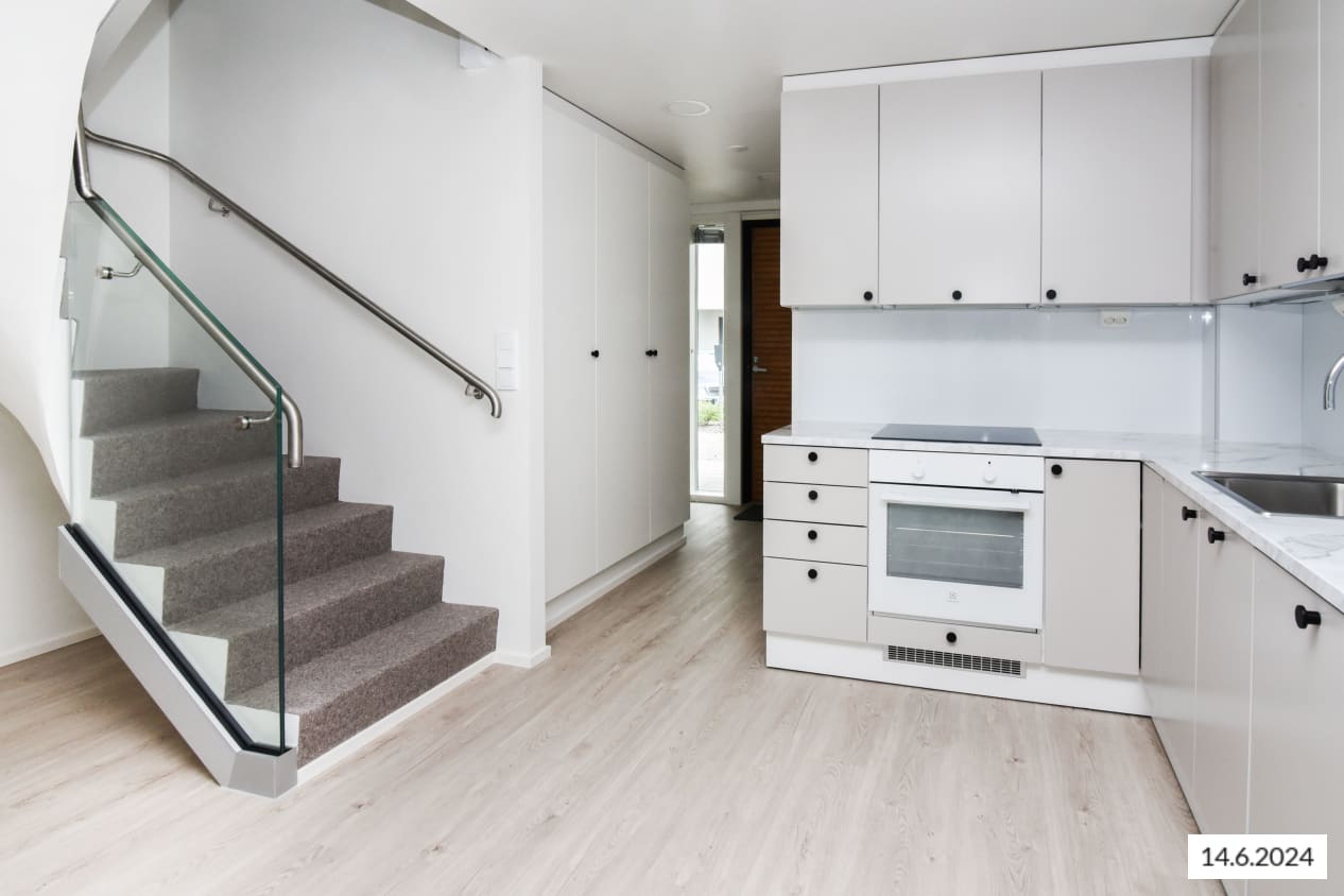 Here’s a wonderful opportunity to secure a home in a row house completed in 2024! This beautiful rental home offers two glazed balconies and bathrooms, as well as a private sauna, taking comfort to the next level. The bright home has plenty of storage space, with both cold and warm storage rooms near the entrance. The balconies, which span the width of the apartment, provide views of the lush nearby nature.