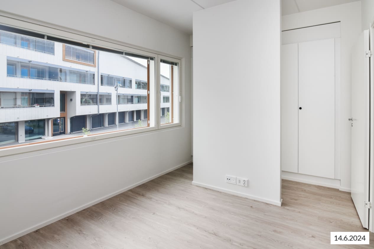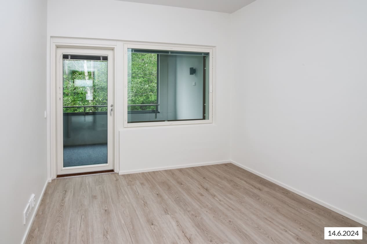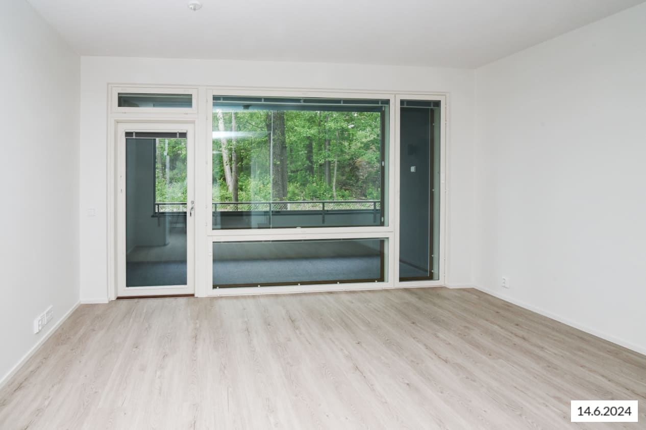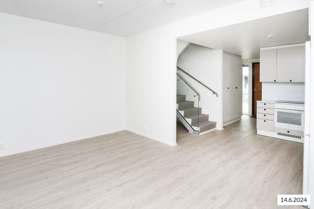 Here’s a wonderful opportunity to secure a home in a row house completed in 2024! This beautiful rental home offers two glazed balconies and bathrooms, as well as a private sauna, taking comfort to the next level. The bright home has plenty of storage space, with both cold and warm storage rooms near the entrance. The balconies, which span the width of the apartment, provide views of the lush nearby nature.