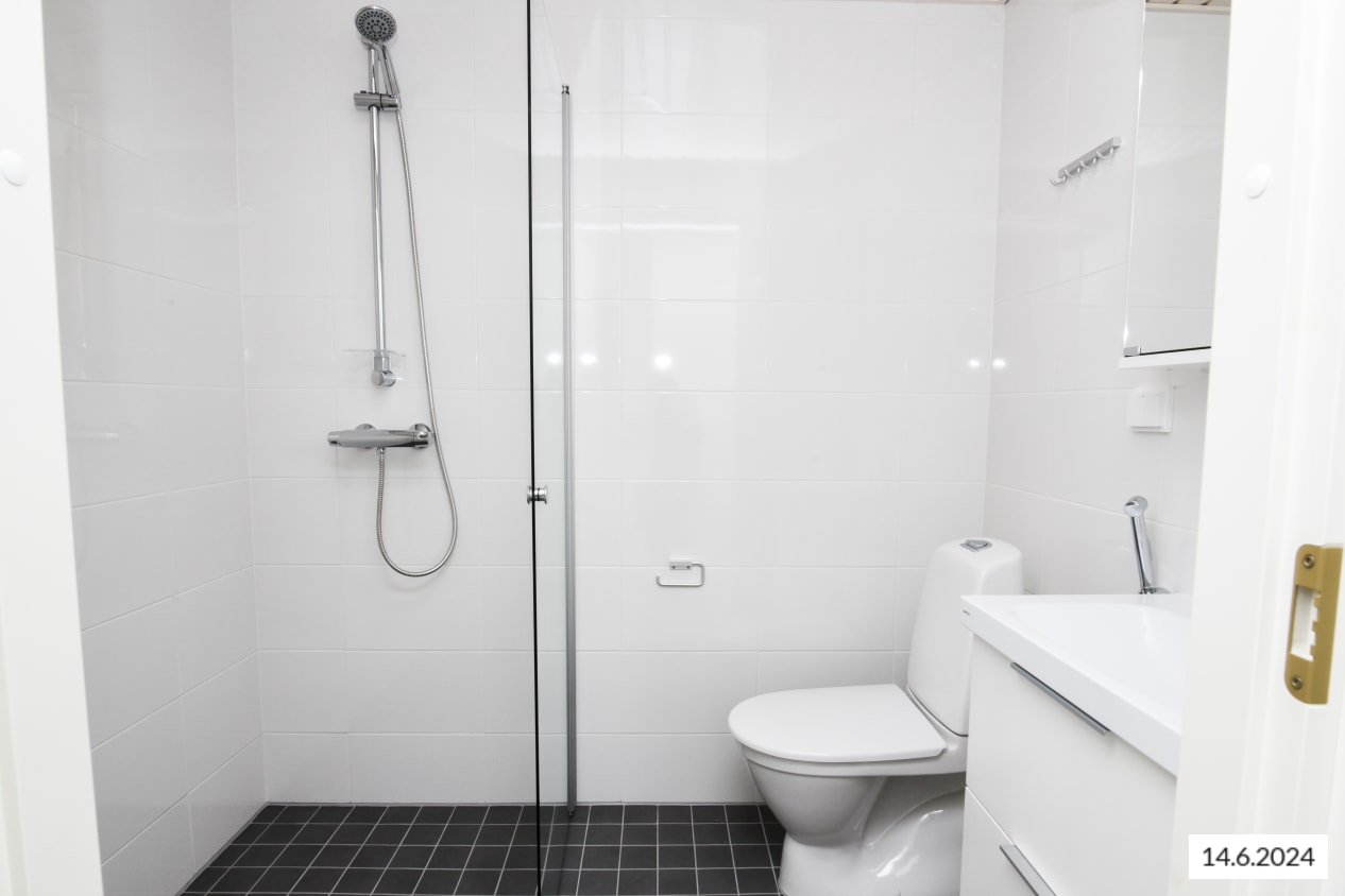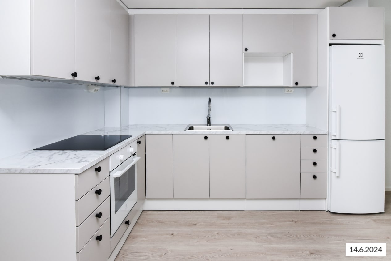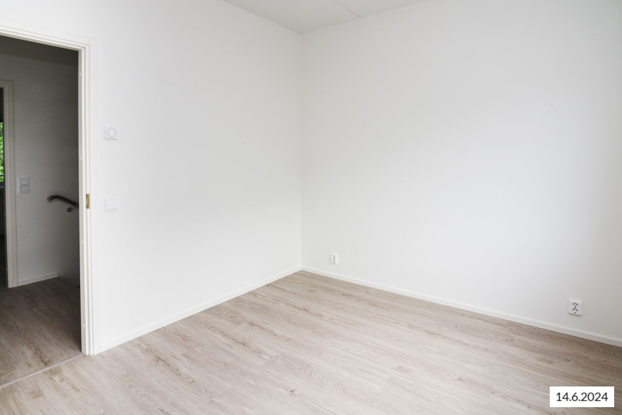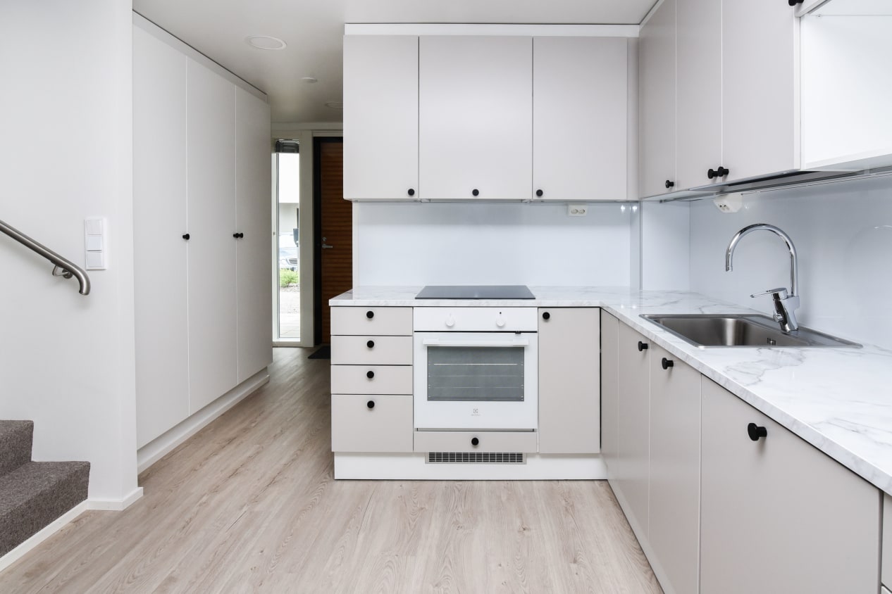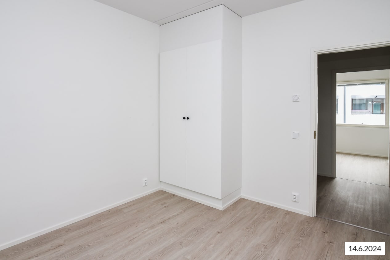 Here’s a wonderful opportunity to secure a home in a row house completed in 2024! This beautiful rental home offers two glazed balconies and bathrooms, as well as a private sauna, taking comfort to the next level. The bright home has plenty of storage space, with both cold and warm storage rooms near the entrance. The balconies, which span the width of the apartment, provide views of the lush nearby nature.