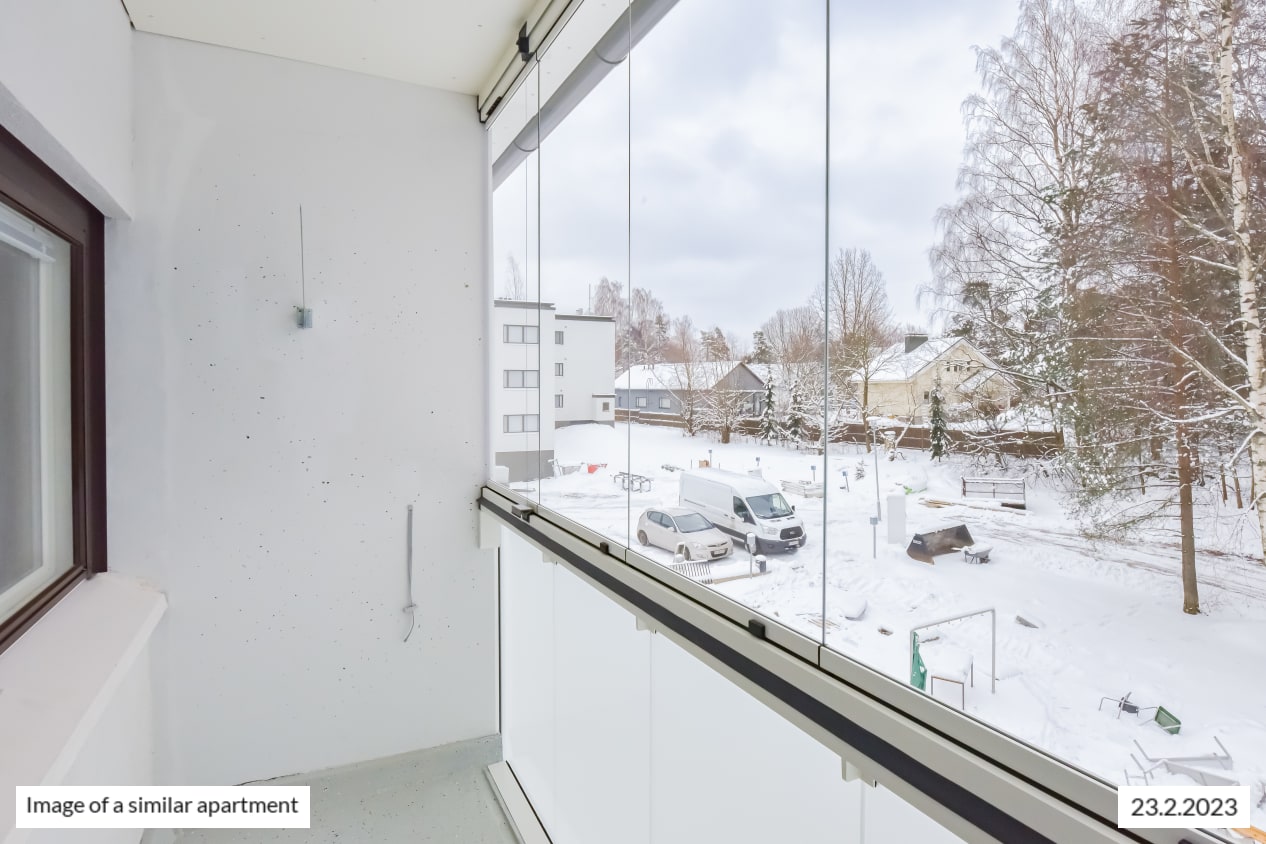 This one-bedroom home has an efficient layout: a spacious living room/kitchen and a bedroom that is just the right size. In the summer, the space is extended by your own, south-facing glassed-in balcony. There is a nice amount of storage space in the entrance hallway as well as in the bedroom. This comfortable home has windows in two different directions: the living room and bedroom face south and the kitchen is west-facing. The fully renovated bathroom has everything you need and also space for your washing machine.
