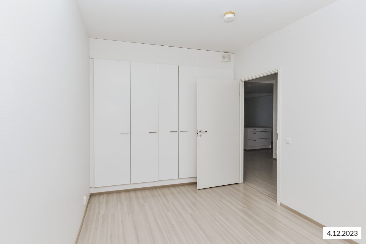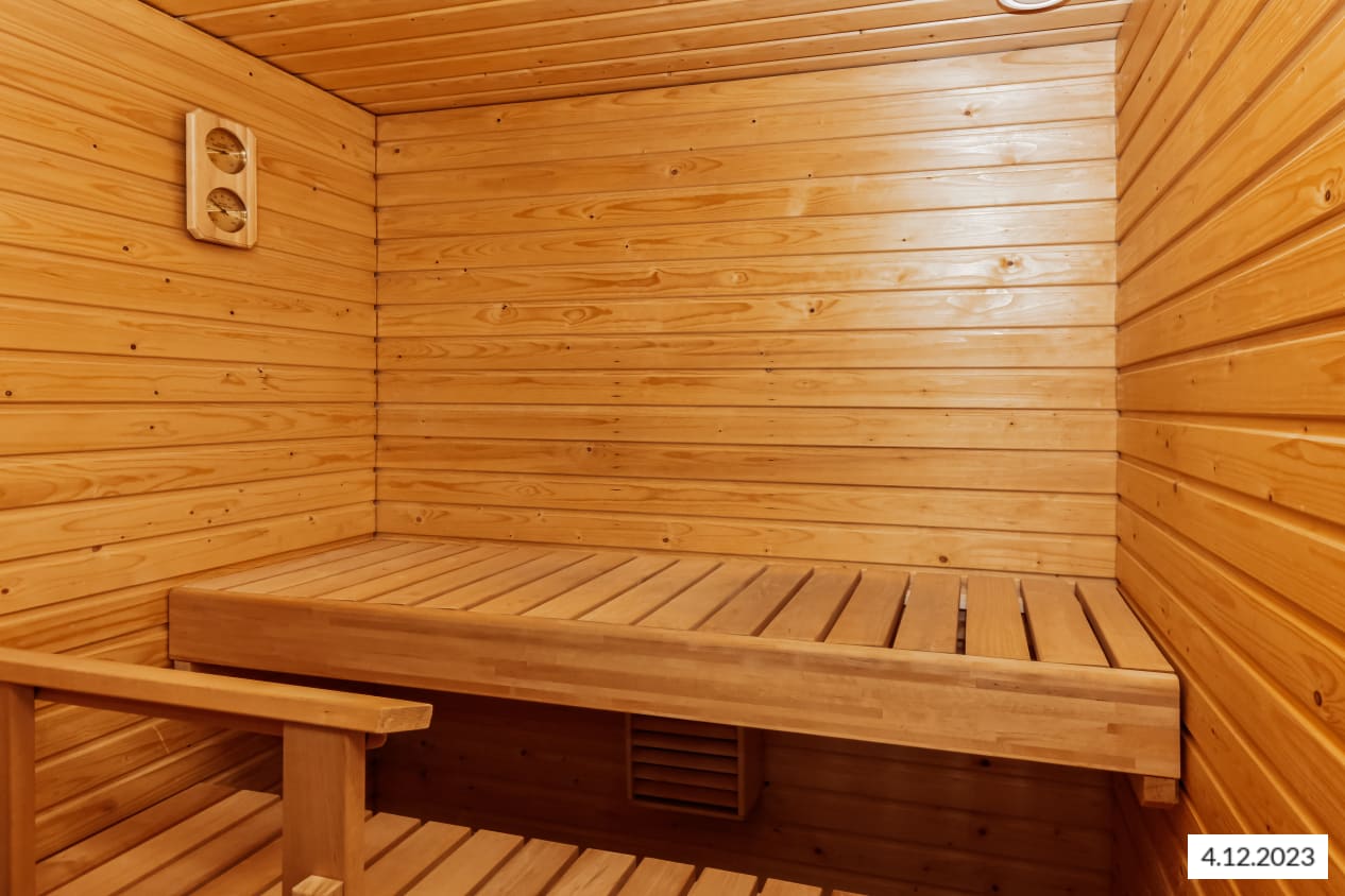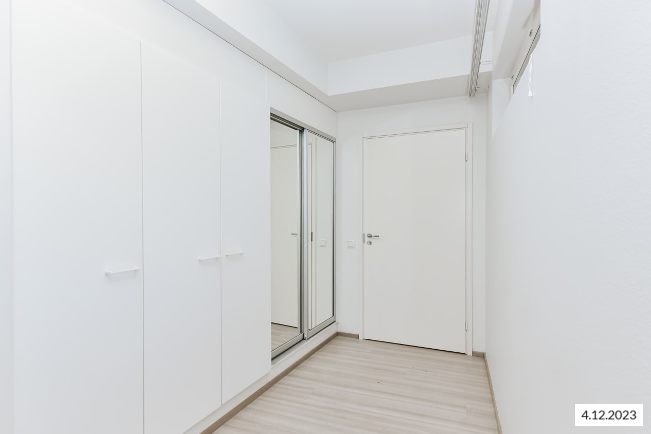 The floors in the living areas are wide laminate resembling white-lacquered wood. The light-coloured bathroom is tiled and equipped with comfortable underfloor heating, with space for your washing machine. The home is crowned by its own sauna.