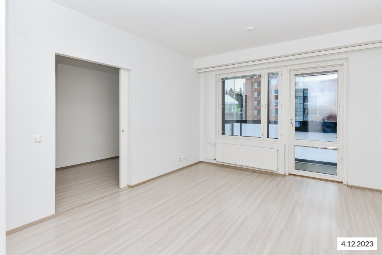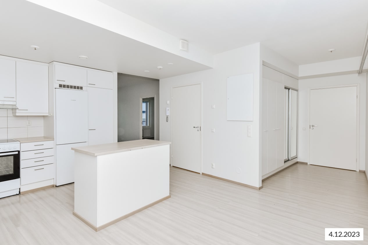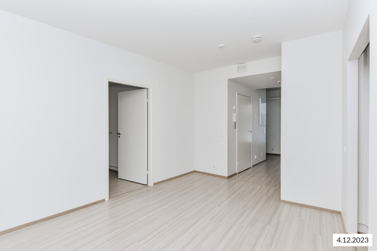 The floors in the living areas are wide laminate resembling white-lacquered wood. The light-coloured bathroom is tiled and equipped with comfortable underfloor heating, with space for your washing machine. The home is crowned by its own sauna.