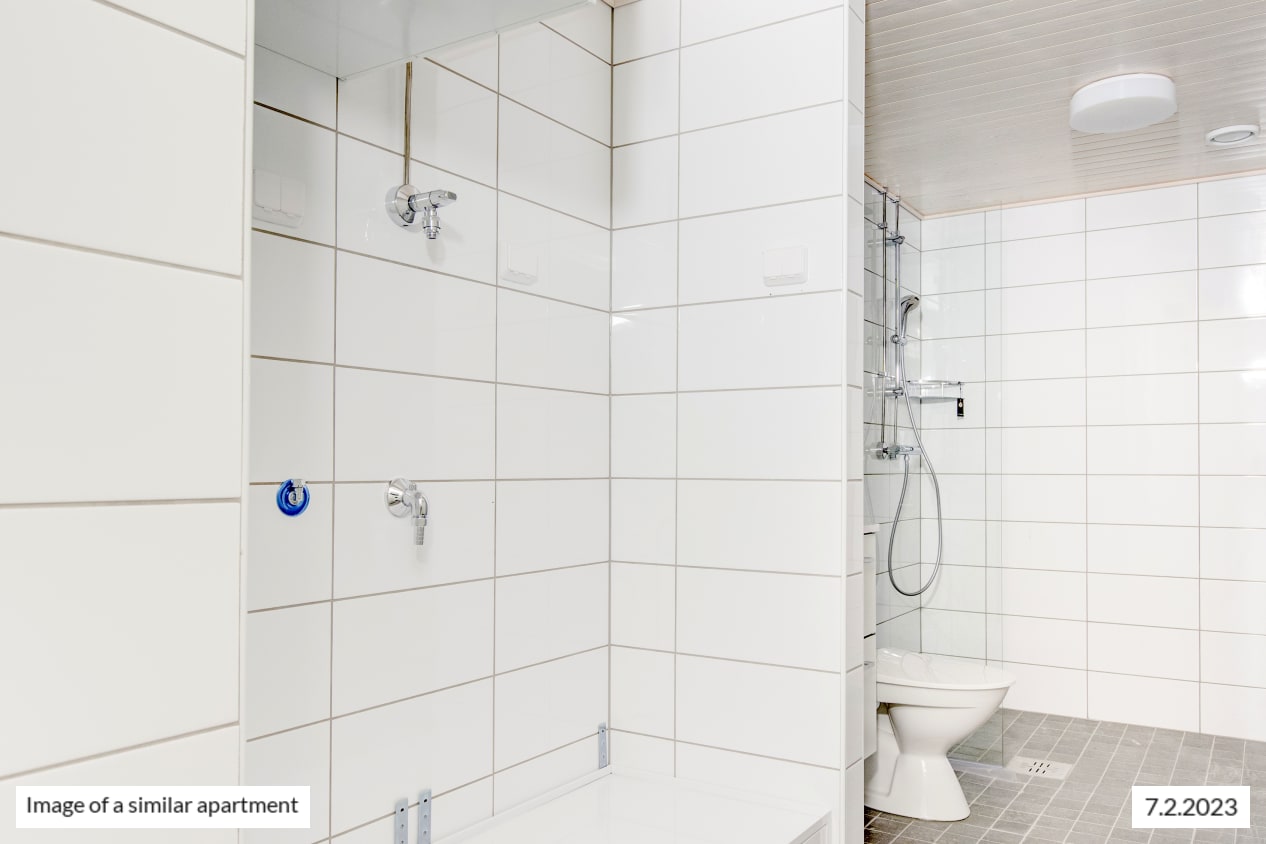 This three-bedroom home has a smart layout: a good-sized living room, a kitchen that is slightly separate from it, a spacious main bedroom and two smaller bedrooms. This comfortable home boasts windows in four different directions. You can enjoy the sunsets from your own, glassed-in balcony. The functional kitchen is conveniently slightly separate from the living room and has space for a small dining table. There is a nice amount of storage space in the bedrooms as well as in the entrance and other hallways. The fully renovated main bathroom has everything you need and also space for your washing machine. There is also a separate toilet for everyday convenience.