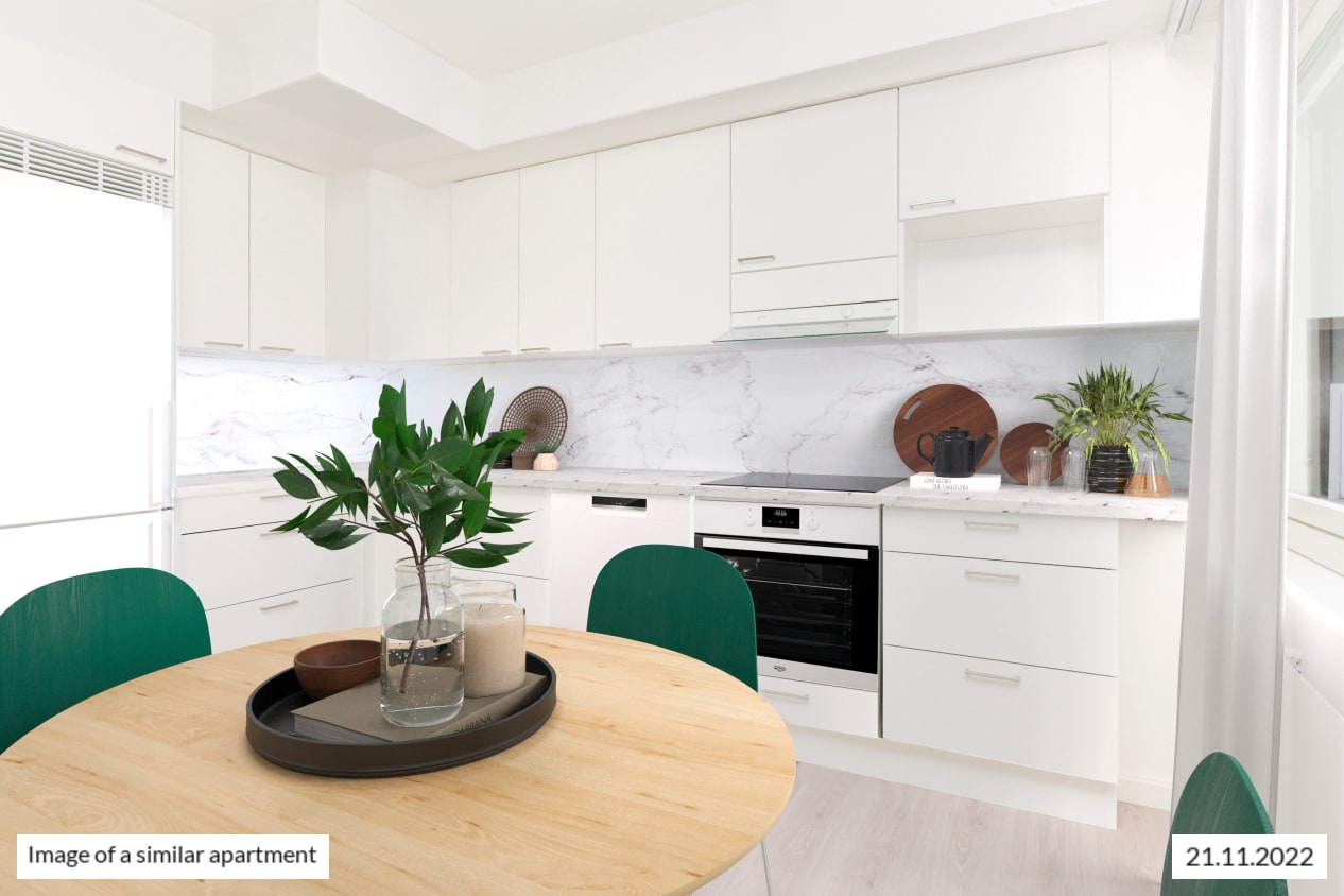 Osta vastuullisesti (Buy sustainably) homes are located in energy-efficient buildings. They are an above-average choice in terms of sustainability.
