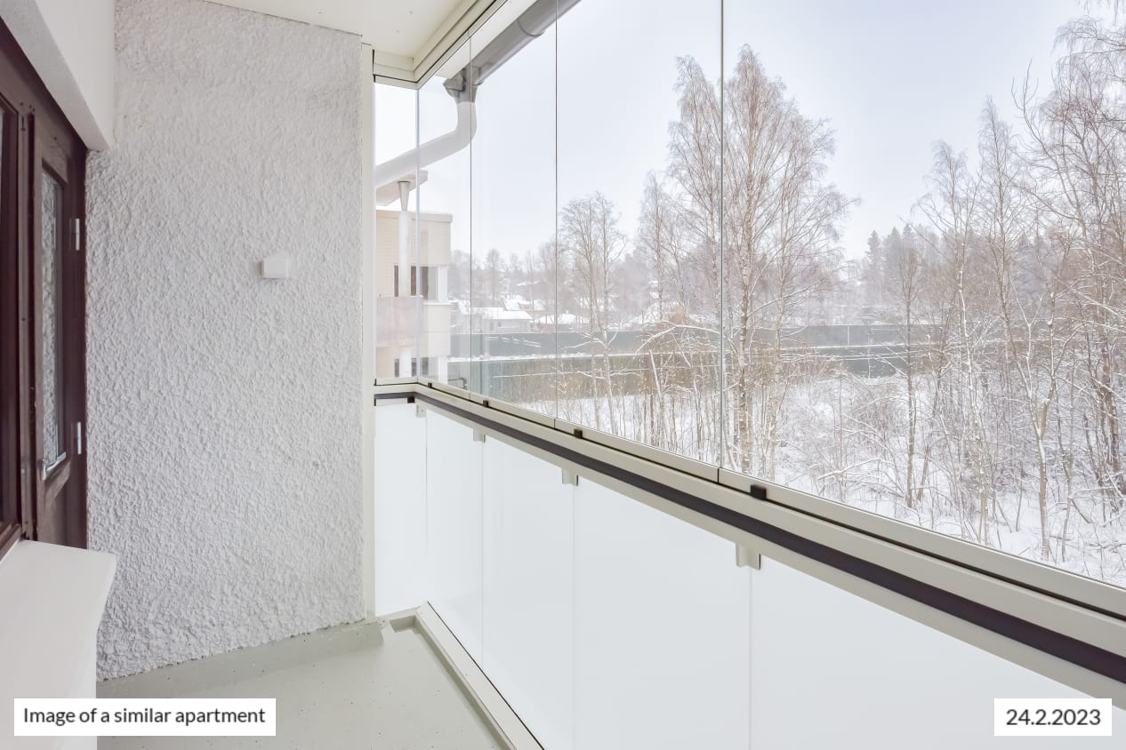 This one-bedroom home has an efficient layout: a spacious living room/kitchen and a good-sized bedroom. You can enjoy the sunrises from your own, glassed-in balcony accessed from the bedroom. There is a nice amount of storage space in the entrance hallway as well as in the bedroom. This comfortable home has windows in two different directions: the living room and bedroom face east and the kitchen is north-facing. The fully renovated bathroom has everything you need and also space for your washing machine.