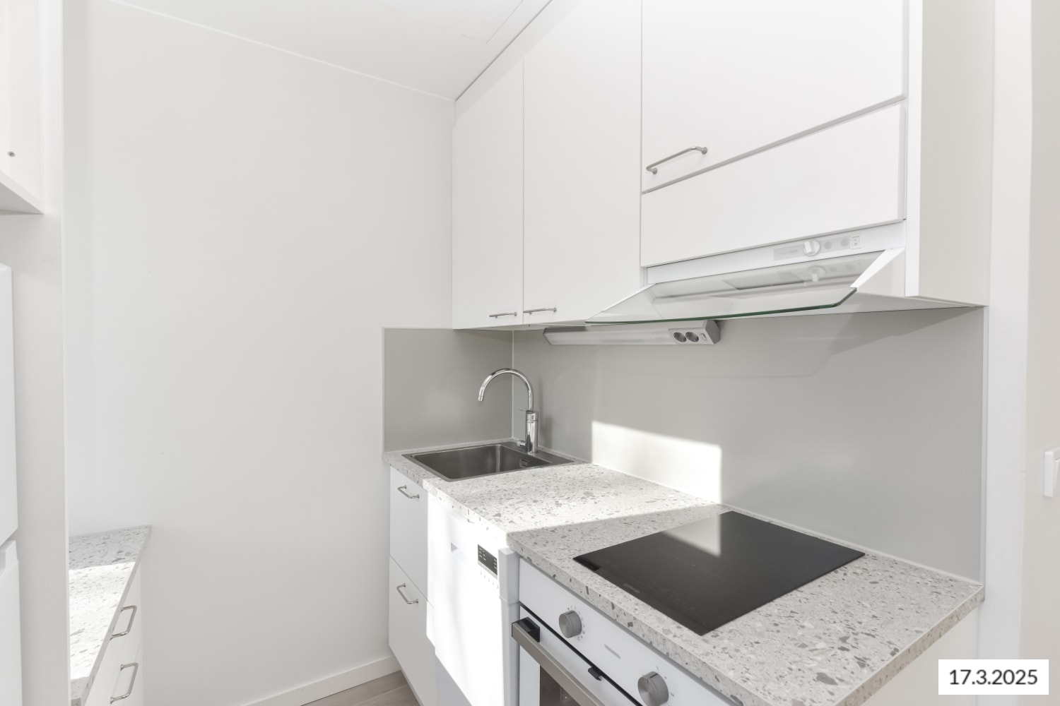 The look of the interiors is calm and provides an easy and neutral backdrop to your personal style. The harmonious kitchen colour scheme reflects the tone of the original stone windowsills. The kitchen units are in white wood-effect laminate, the backsplash pale grey and the countertops in neutral faux stone laminate. The floors are laid in pale grey oak laminate. The fully renovated, fresh bathroom is perfect for a splash in the shower: the walls are in traditional white 15 x 15 cm tiles and the floor in smaller pale grey tiles. The timeless Kide range of bathroom furniture is made in Finland and comes with a 25-year guarantee of durability. There is ground floor bicycle and baby transport storage with direct outdoor access. The housing company also has a clubroom. The heated apartment-specific storage units are in the basement. The property is heated with district heat and locking system is iLOQ. About 60 parking spaces and 4 electrified charging points are also available for rent.