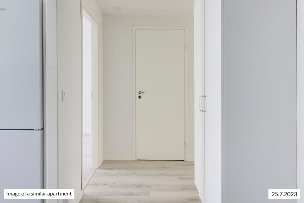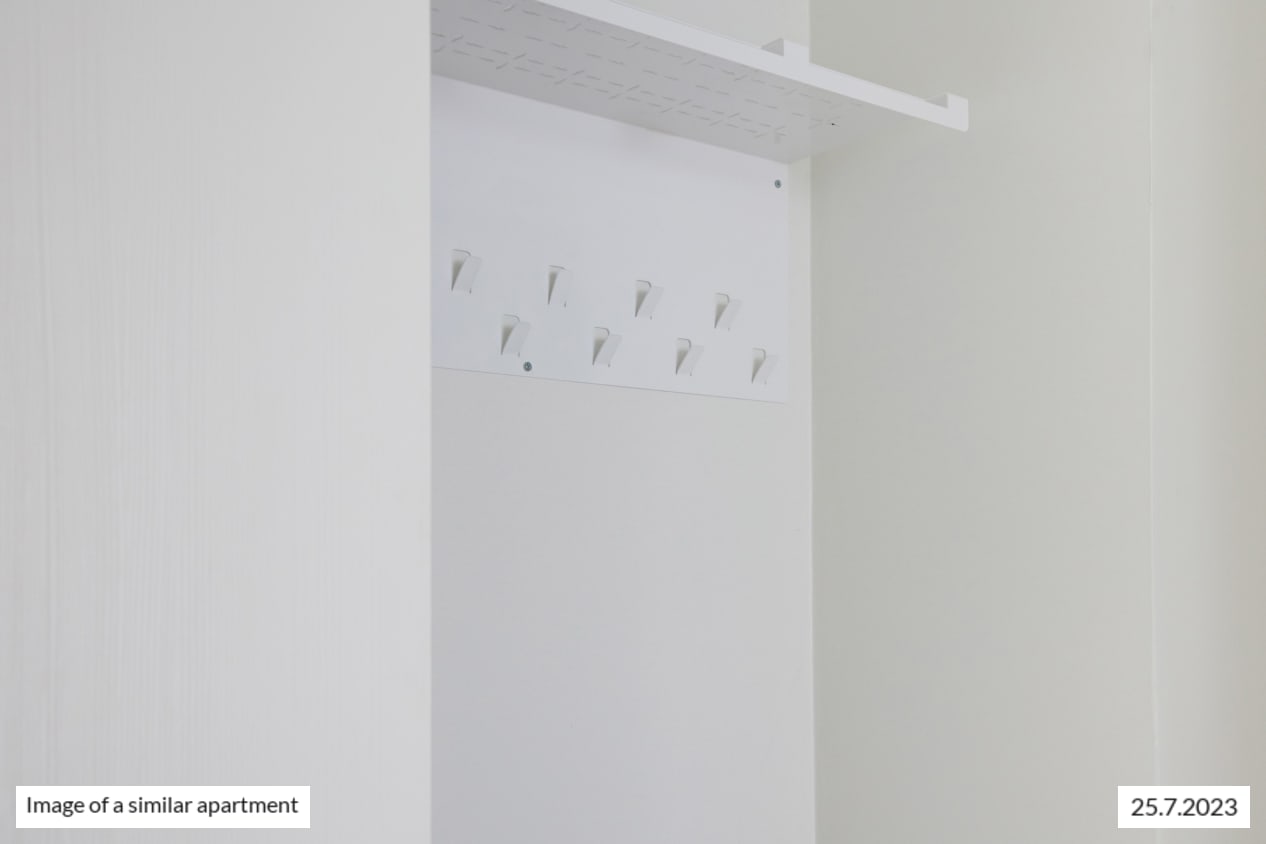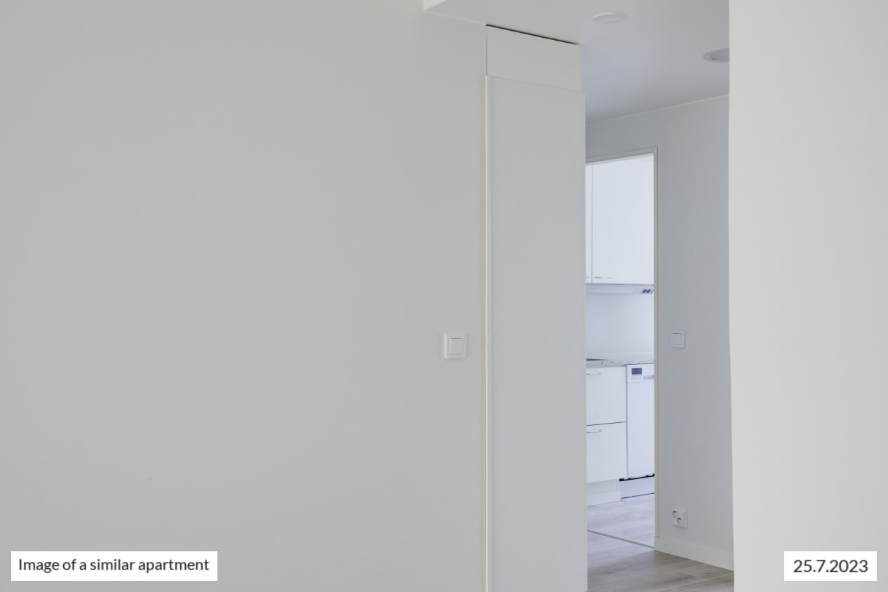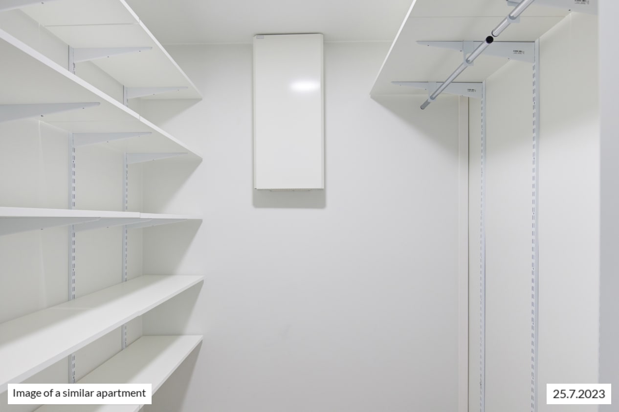 Light flows in through the wide window of the living room. The lounging area features plenty of unbroken wall space enabling many different furniture setups. Everyday luxury is provided by the spacious walk-in closet, with added storage found in the entrance hallway. Your own south-facing balcony is a lovely spot for perhaps a cup of coffee in the morning.