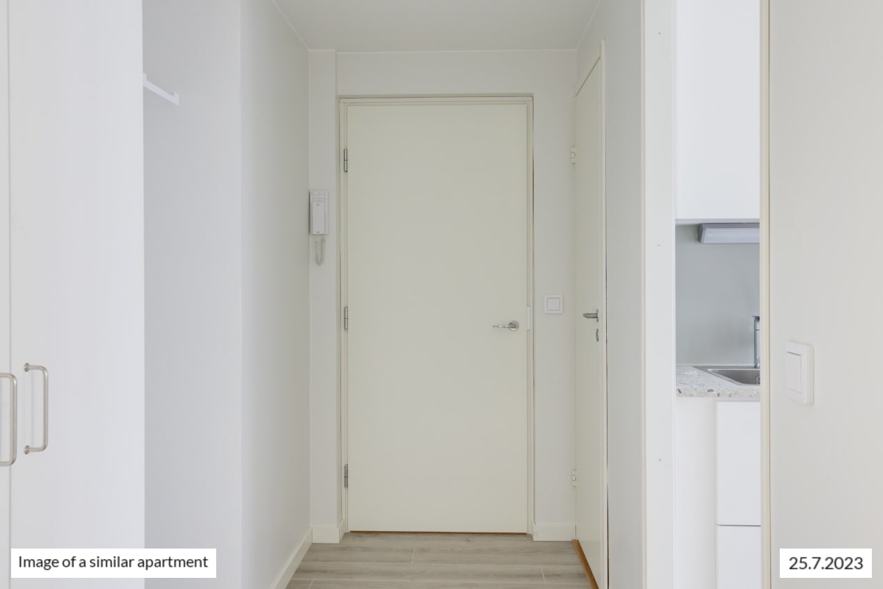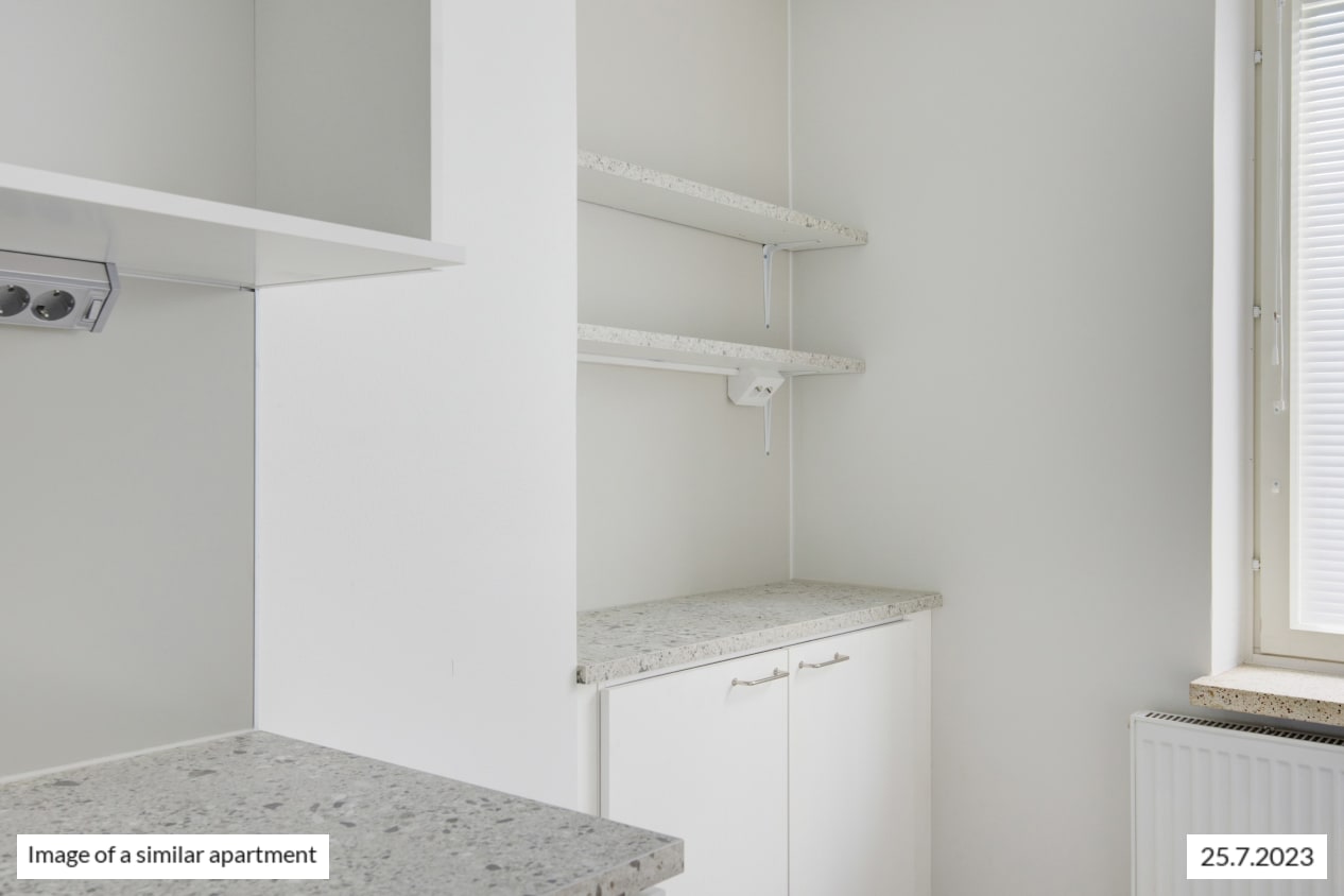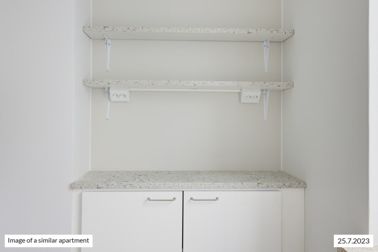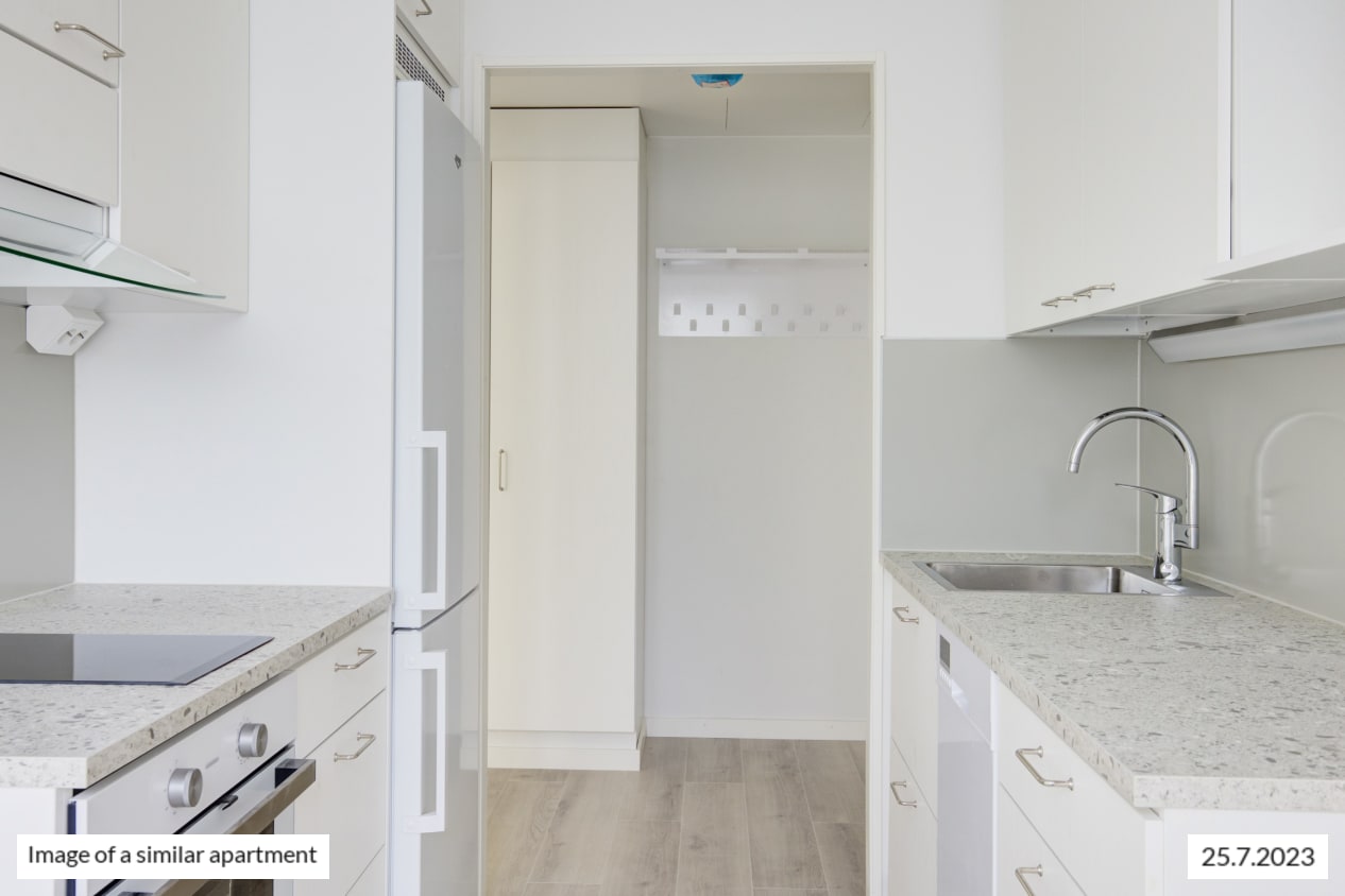 Light flows in through the wide window of the living room. The lounging area features plenty of unbroken wall space enabling many different furniture setups. Everyday luxury is provided by the spacious walk-in closet, with added storage found in the entrance hallway. Your own south-facing balcony is a lovely spot for perhaps a cup of coffee in the morning.