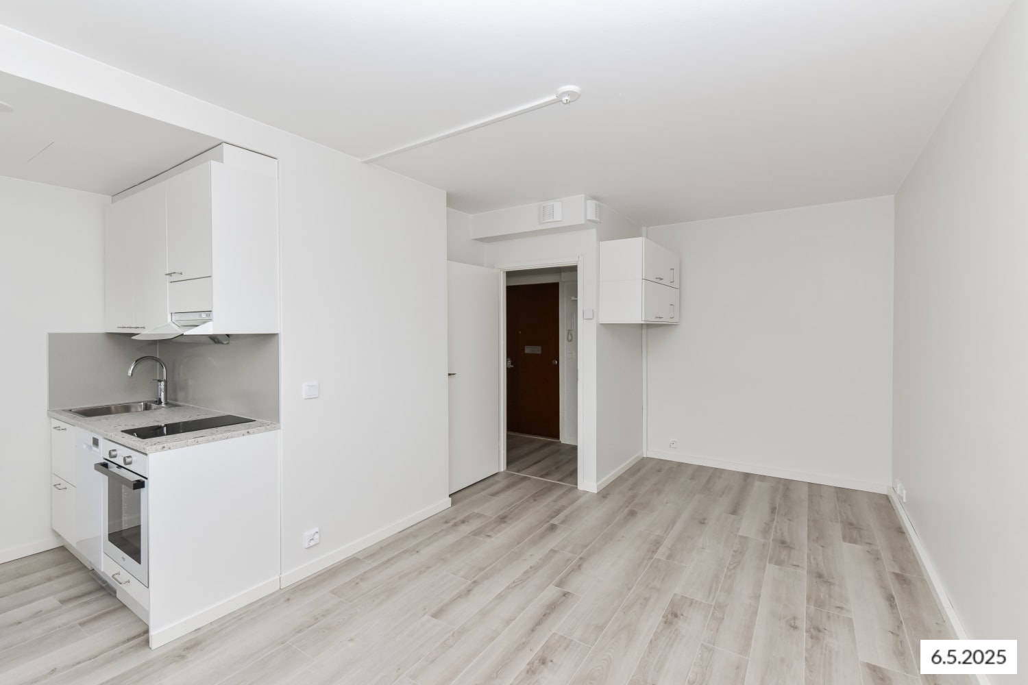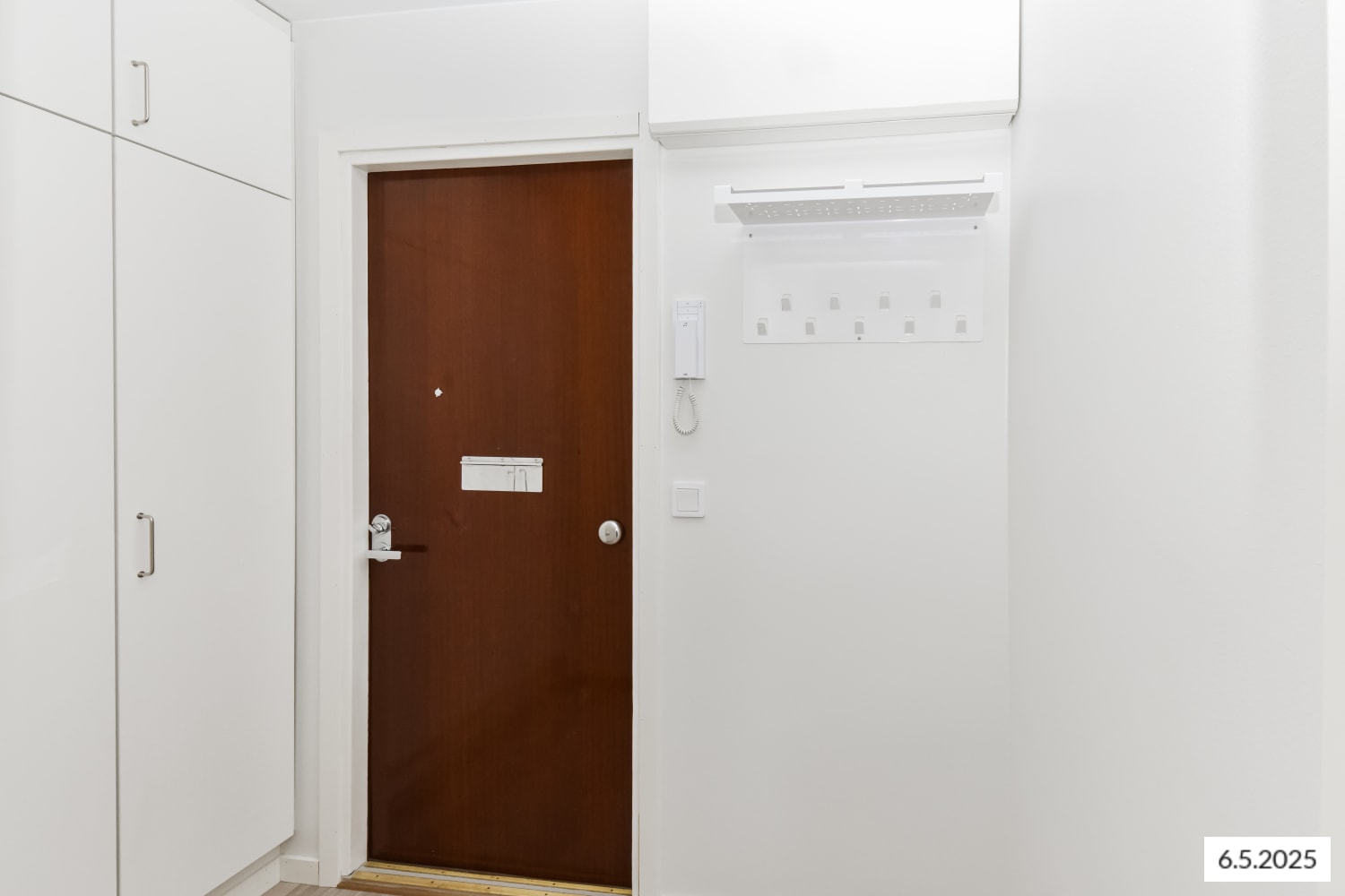The look of the interiors is calm and provides an easy and neutral backdrop to your personal style. The harmonious kitchen colour scheme reflects the tone of the original stone windowsills. The kitchen units are in white wood-effect laminate, the backsplash pale grey and the countertops in neutral faux stone laminate. The floors are laid in pale grey oak laminate. The fully renovated, fresh bathroom is perfect for a splash in the shower: the walls are in traditional white 15 x 15 cm tiles and the floor in smaller pale grey tiles. The timeless Kide range of bathroom furniture is made in Finland and comes with a 25-year guarantee of durability. There is ground floor bicycle and baby transport storage with direct outdoor access. The housing company also has a clubroom. The heated apartment-specific storage units are in the basement. The property is heated with district heat and locking system is iLOQ. About 60 parking spaces and 4 electrified charging points are also available for rent.