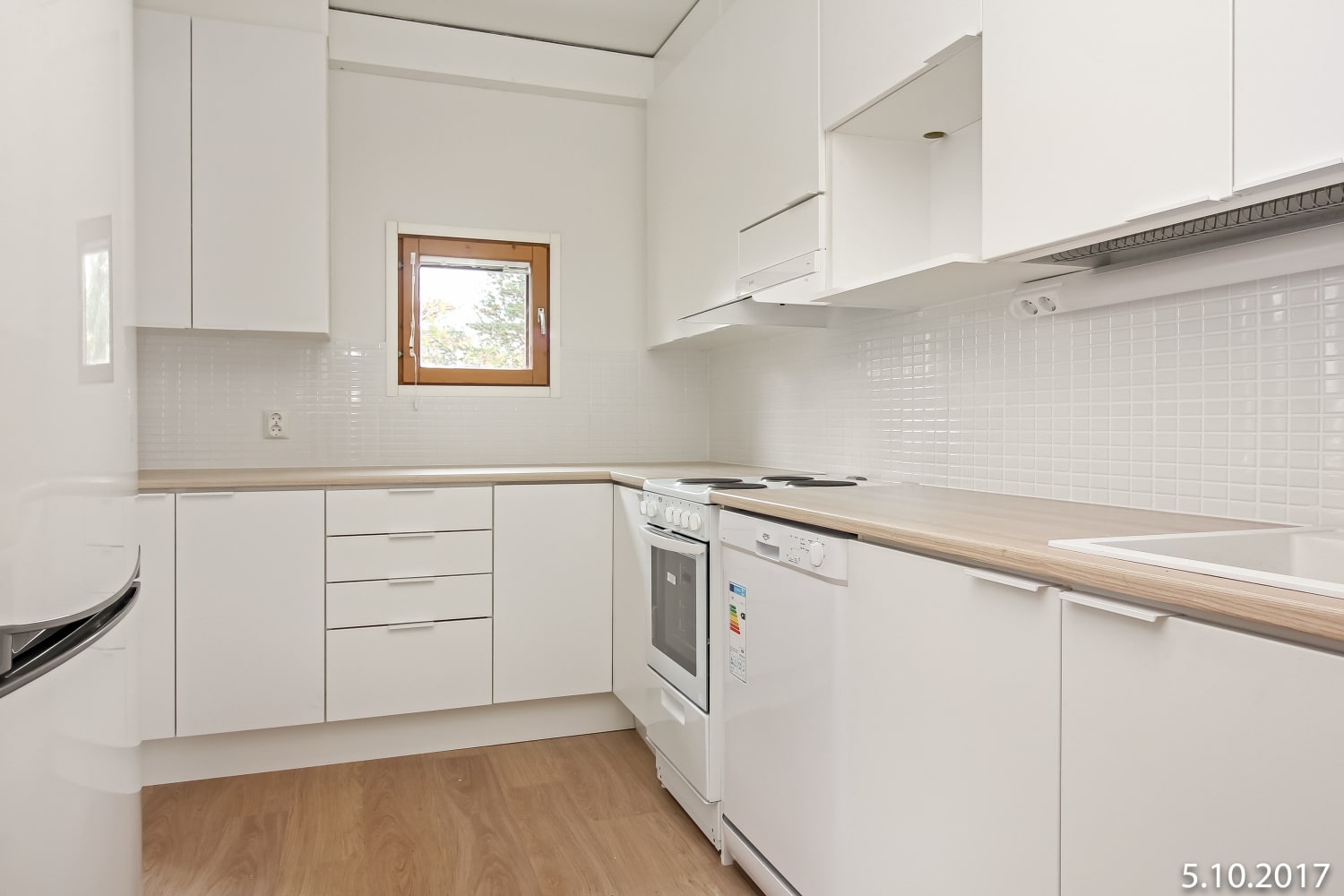 A cosy two-bedroom home awaits its new residents on the outskirts of the lush Bockinpuisto. The open layout offers ample space for a family, and in summer, the large sunny balcony provides additional living space. The home features many practical details: a separate small WC streamlines daily life, all bedrooms have closet space, and there is a convenient utility area adjacent to the shower room.