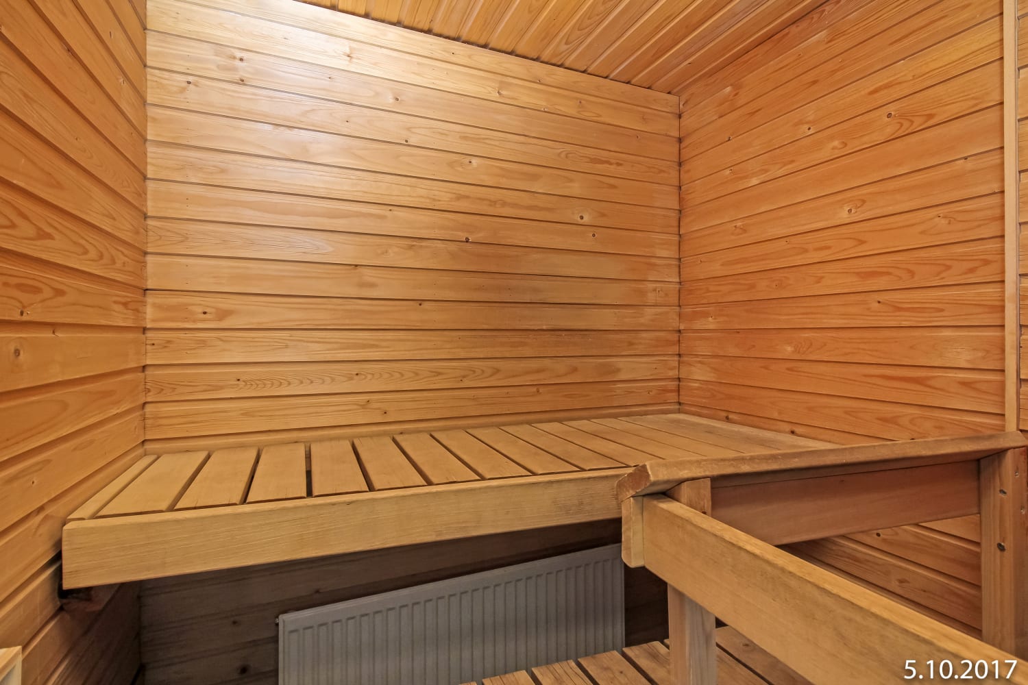 The bathroom is tiled, and you can relax in your own sauna after a busy day. Welcome to explore the property in person!