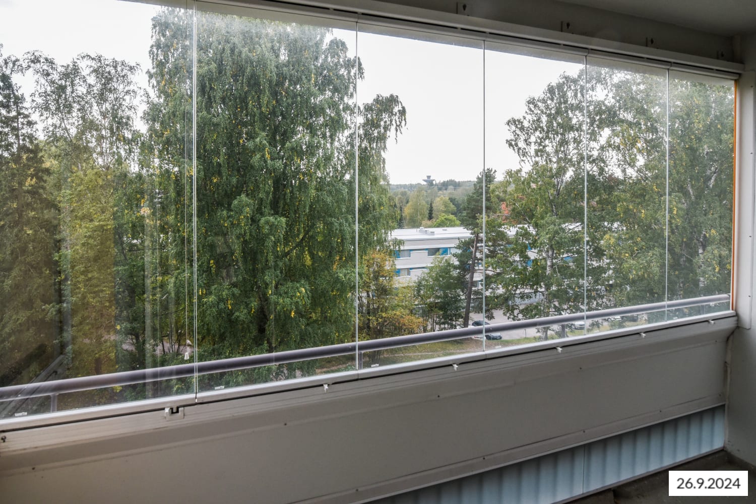 This cosy rental home from the 60s features large windows and a smart, easily furnishable layout. At the heart of the apartment is a spacious living room, which opens onto a sheltered glazed balcony facing southwest, perfect for enjoying the courtyard views.