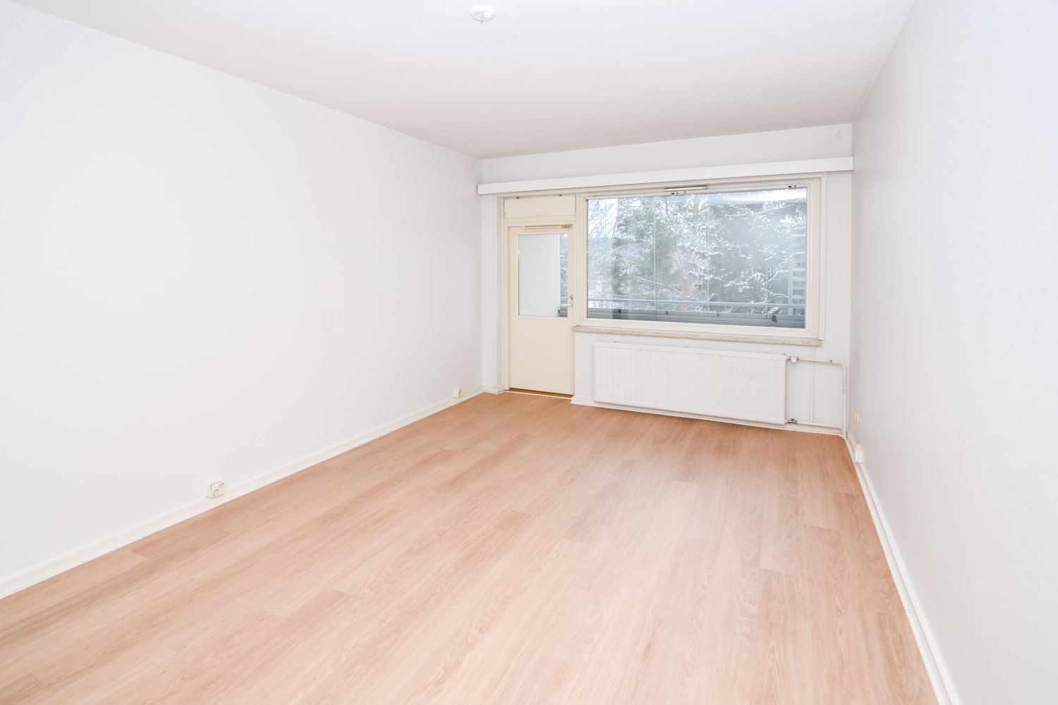 This building located next to Leikkiniitty park and within walking distance of the metro station is surrounded by green grounds on two sides. The units are pleasant, bright and cleanly laid out. The units of over 47 sqm have sheltered balconies. The bathroom cannot accommodate a full-sized washing machine and some of the 56 m² apartments do not have a washing machine connections. However, the building offers a convenient laundry room complete with a drying room.