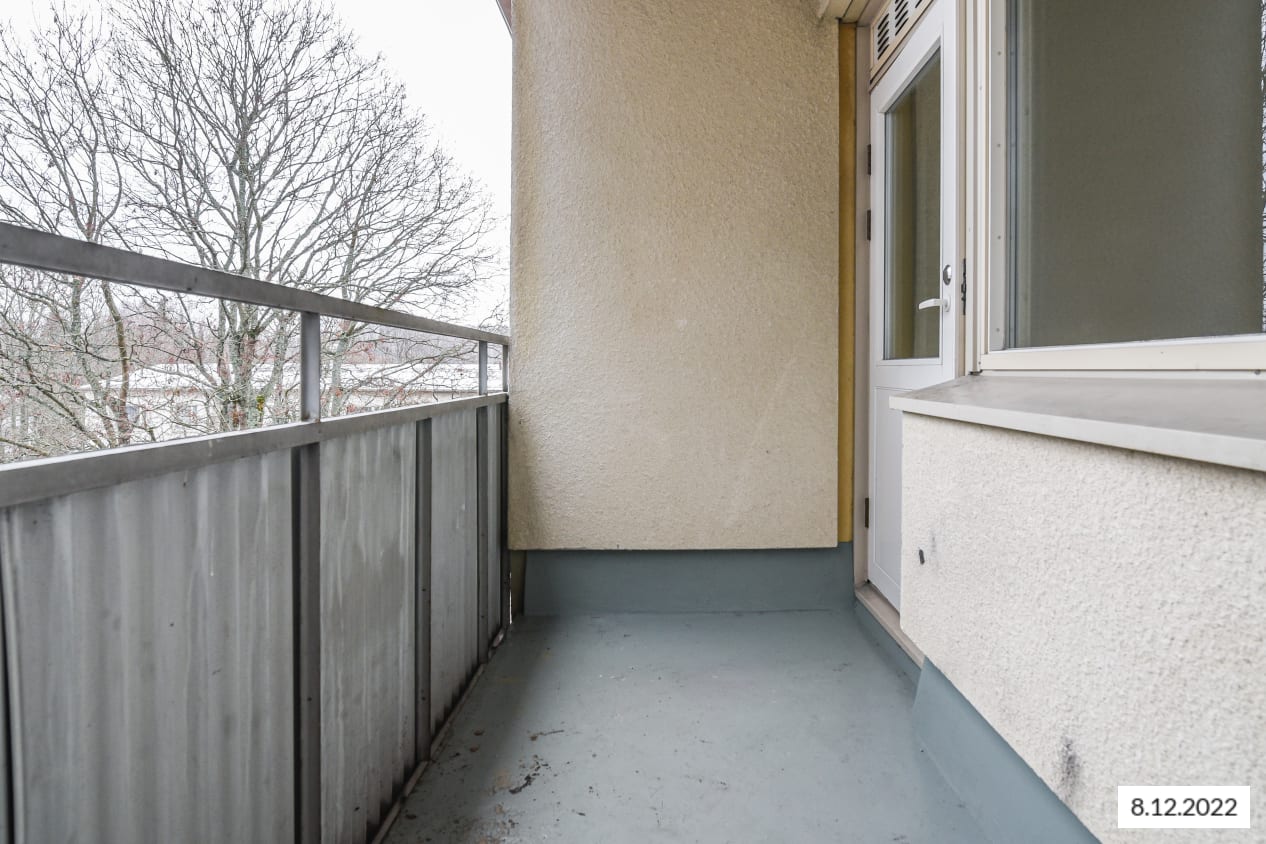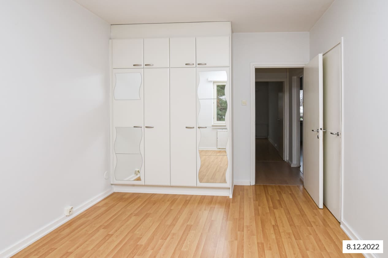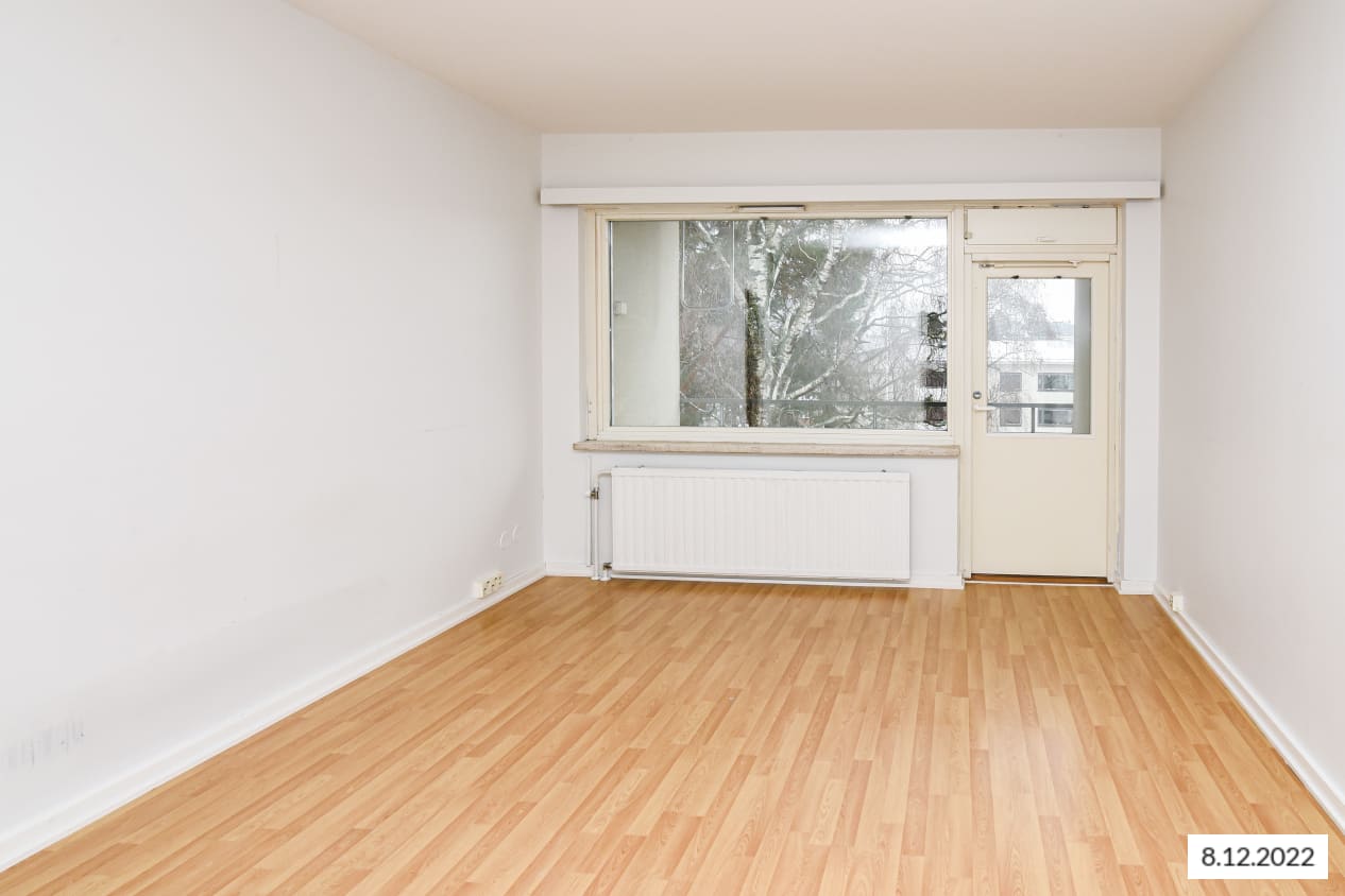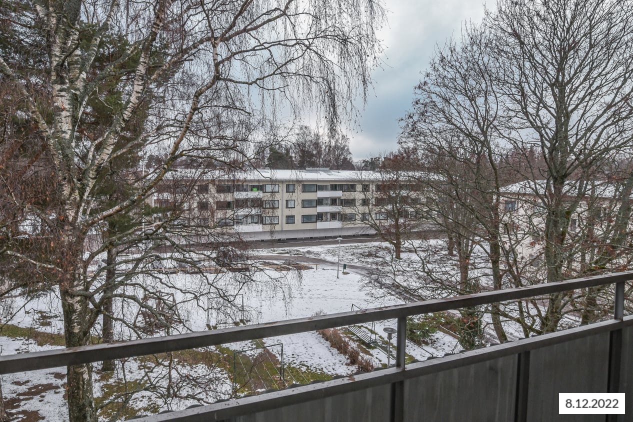This building located next to Leikkiniitty park and within walking distance of the metro station is surrounded by green grounds on two sides. The units are pleasant, bright and cleanly laid out. The units of over 47 sqm have sheltered balconies.