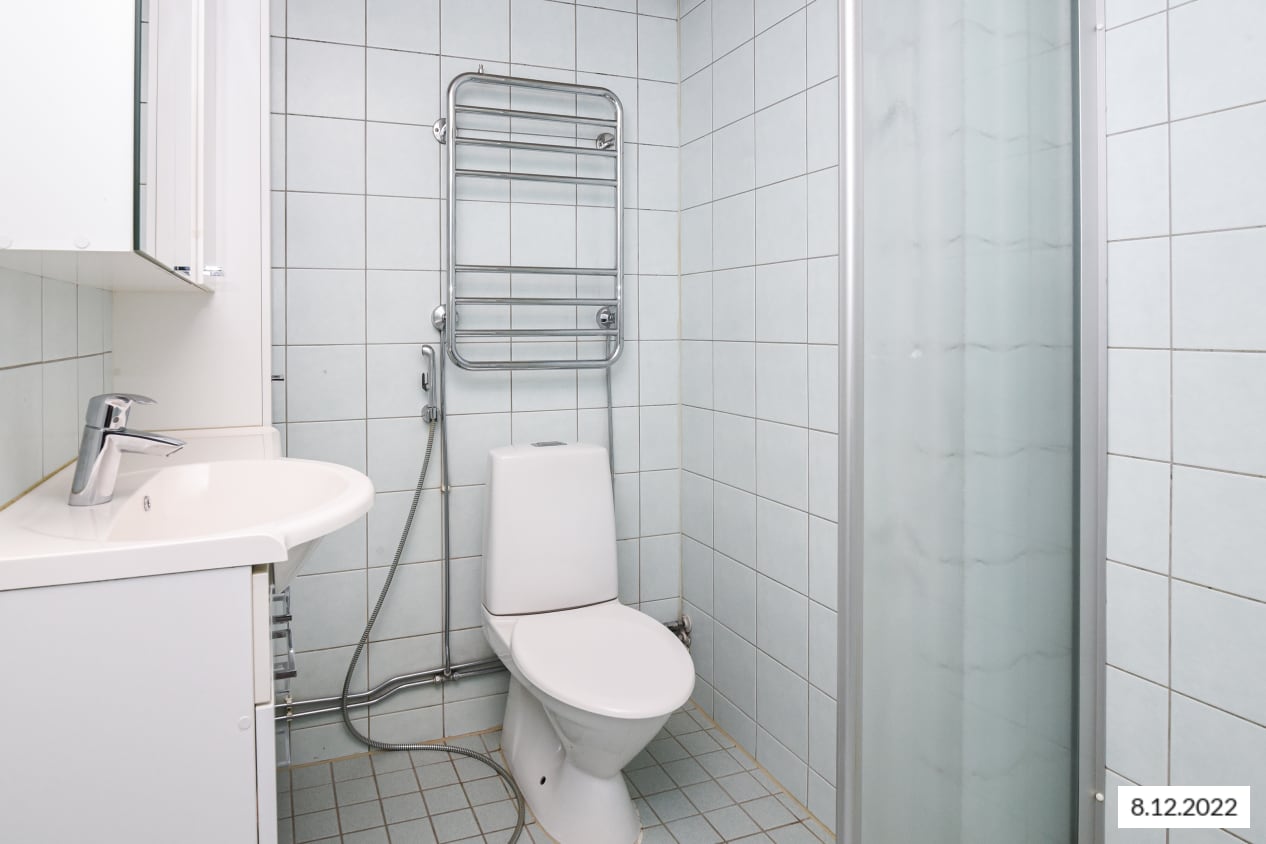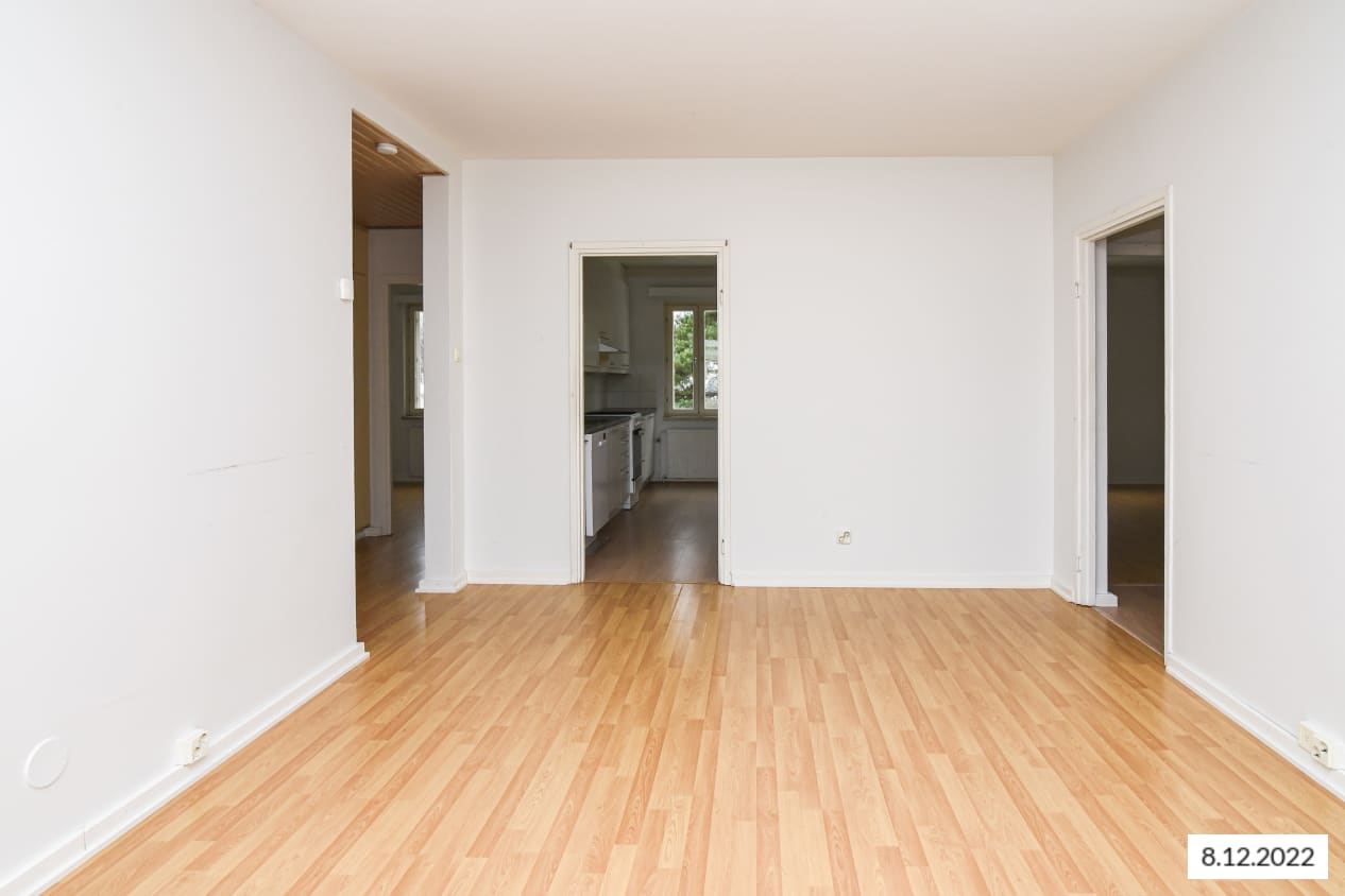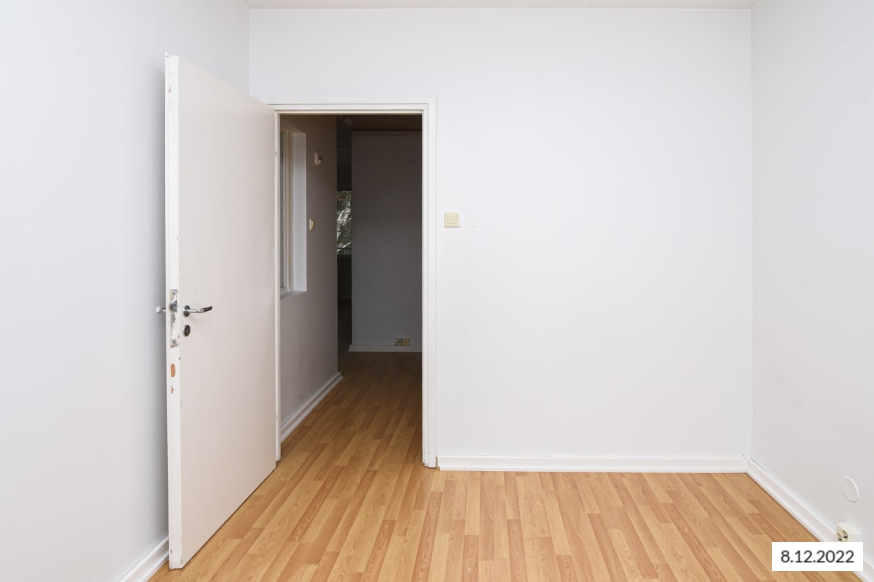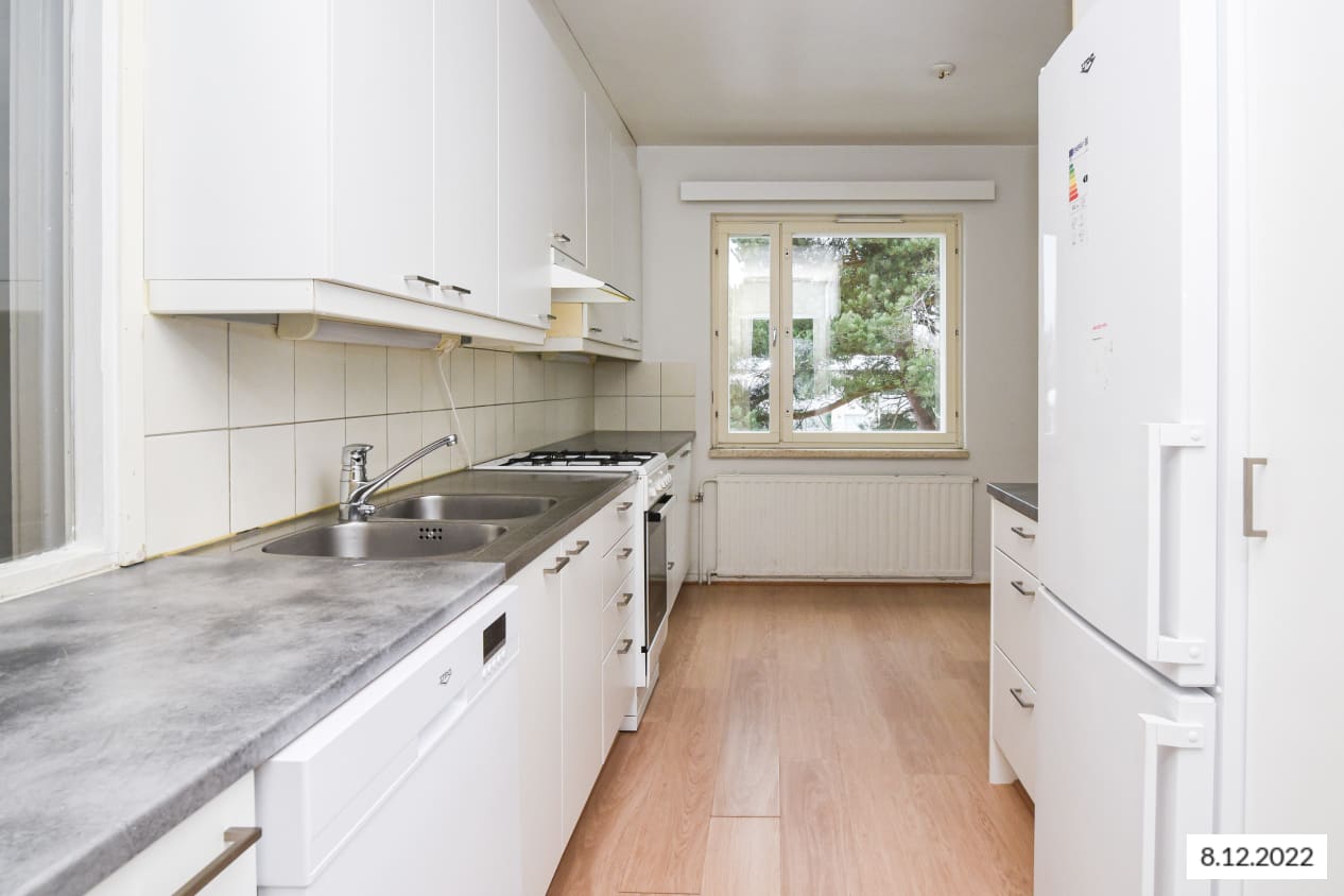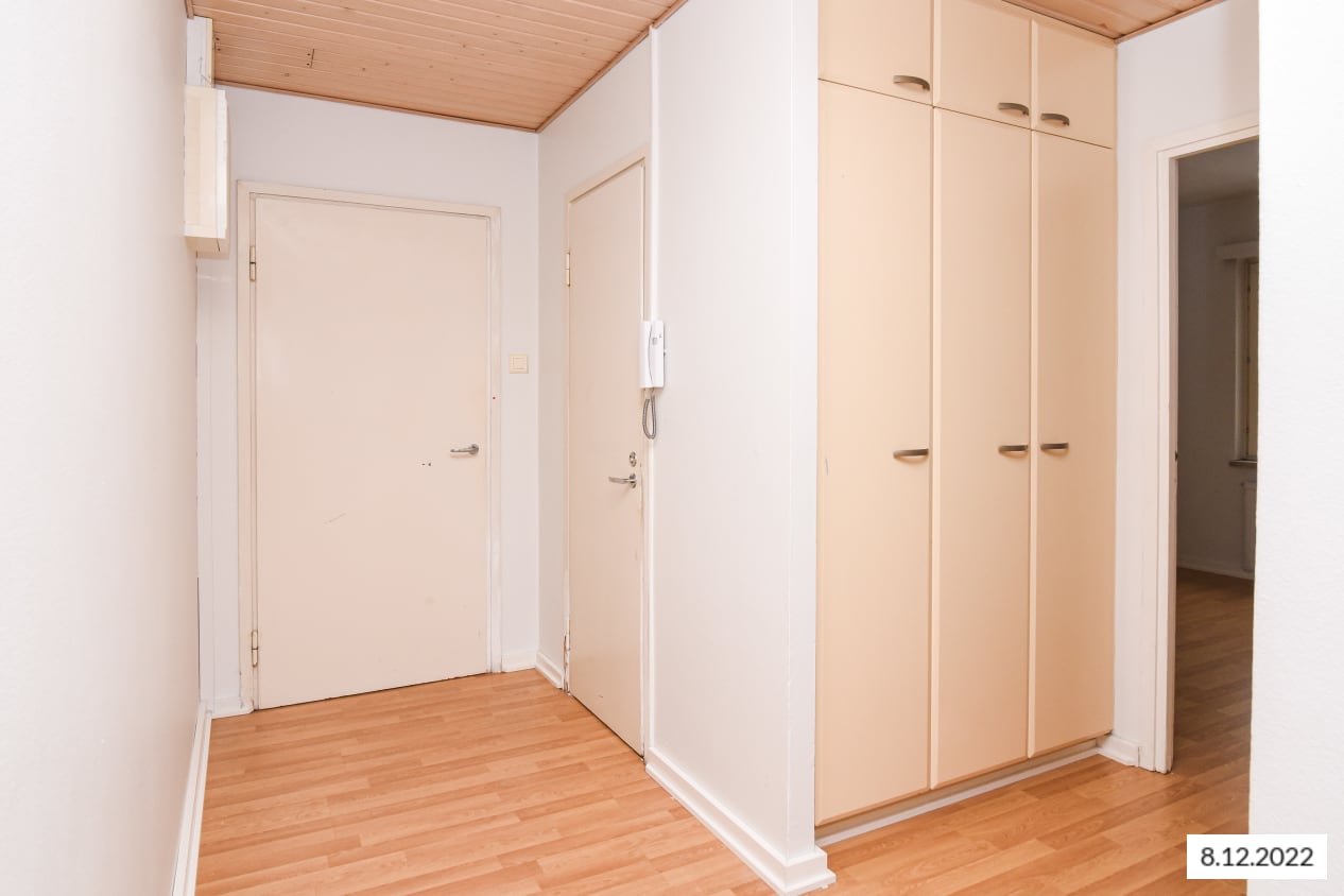 This building located next to Leikkiniitty park and within walking distance of the metro station is surrounded by green grounds on two sides. The units are pleasant, bright and cleanly laid out. The units of over 47 sqm have sheltered balconies.