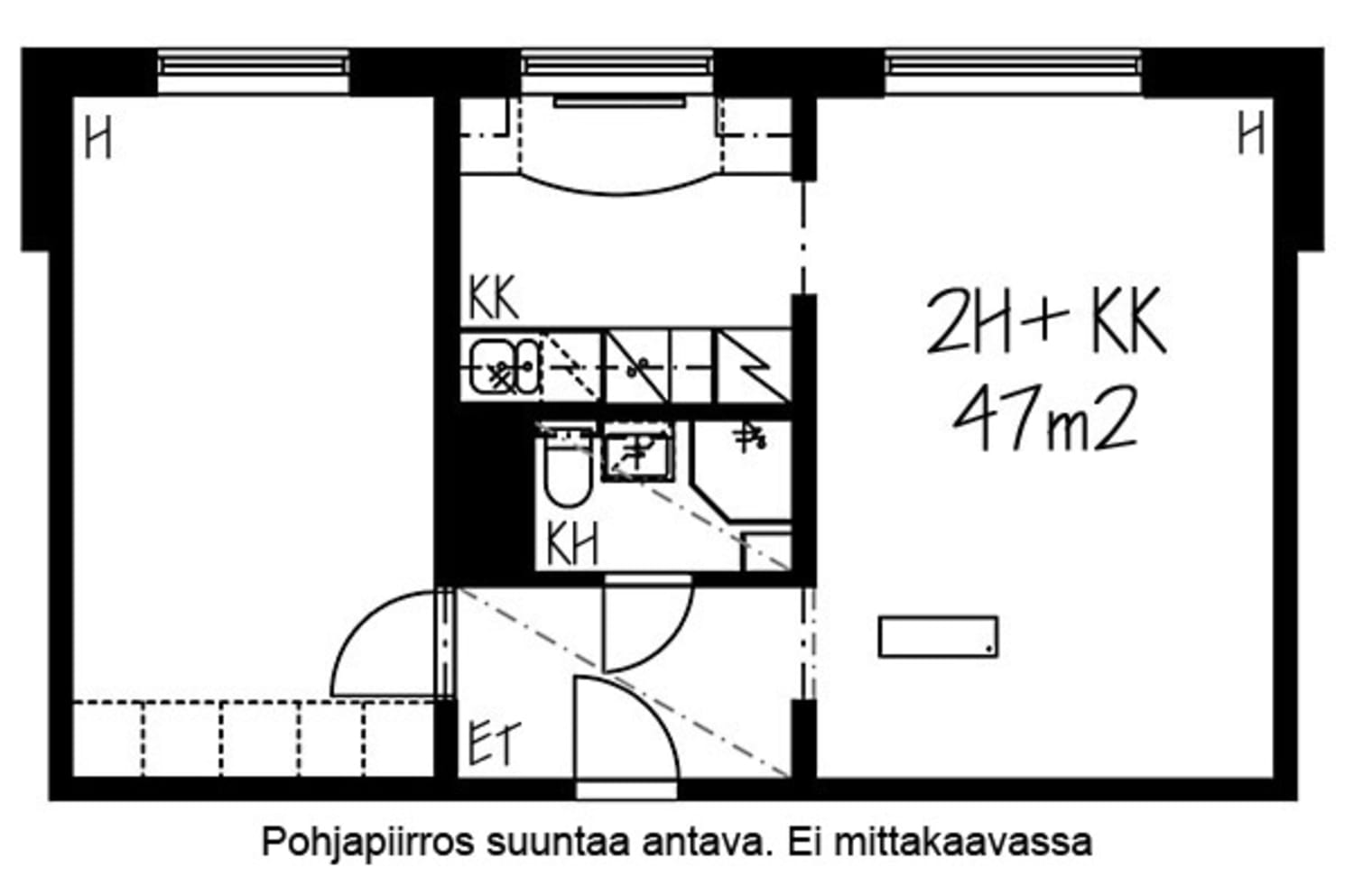 This building located next to Leikkiniitty park and within walking distance of the metro station is surrounded by green grounds on two sides. The units are pleasant, bright and cleanly laid out. The units of over 47 sqm have sheltered balconies.