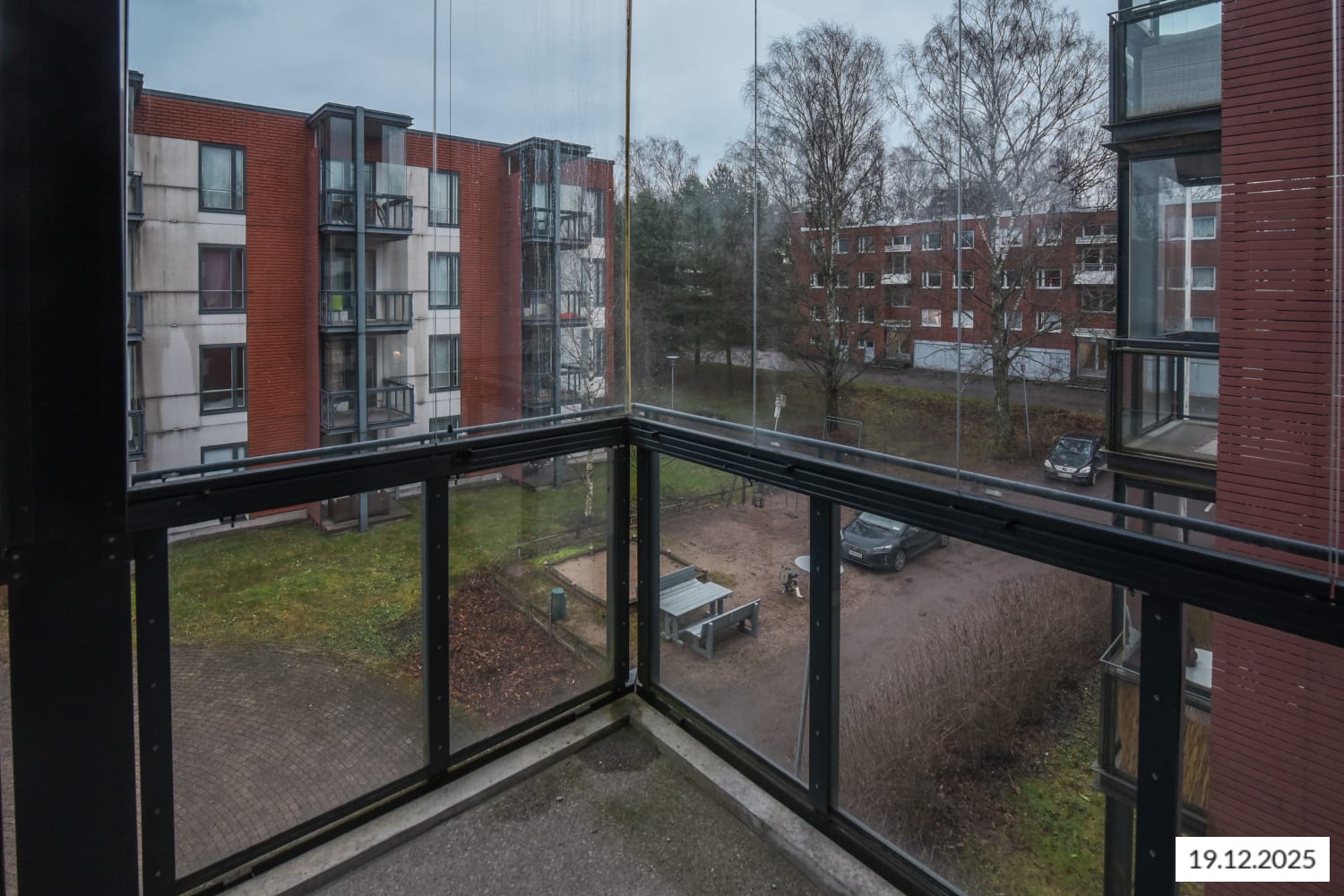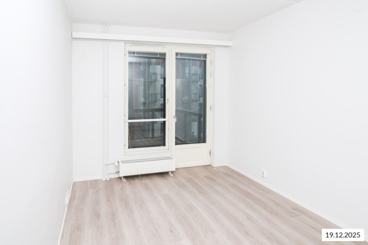 A comfortable one-bedroom home next to Puotila sports park is a delightful place to live. One of the highlights of the apartment is the glazed balcony, perfect for enjoying the changing seasons. The spacious and functional layout combines the living room and kitchen into a cosy living area.