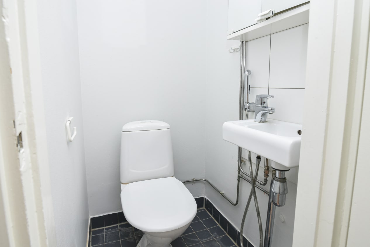 The kitchen has space for a dining table, and a dishwasher makes everyday life easier. The tiled bathroom has space for a washing machine, and a separate small WC adds convenience to daily life.