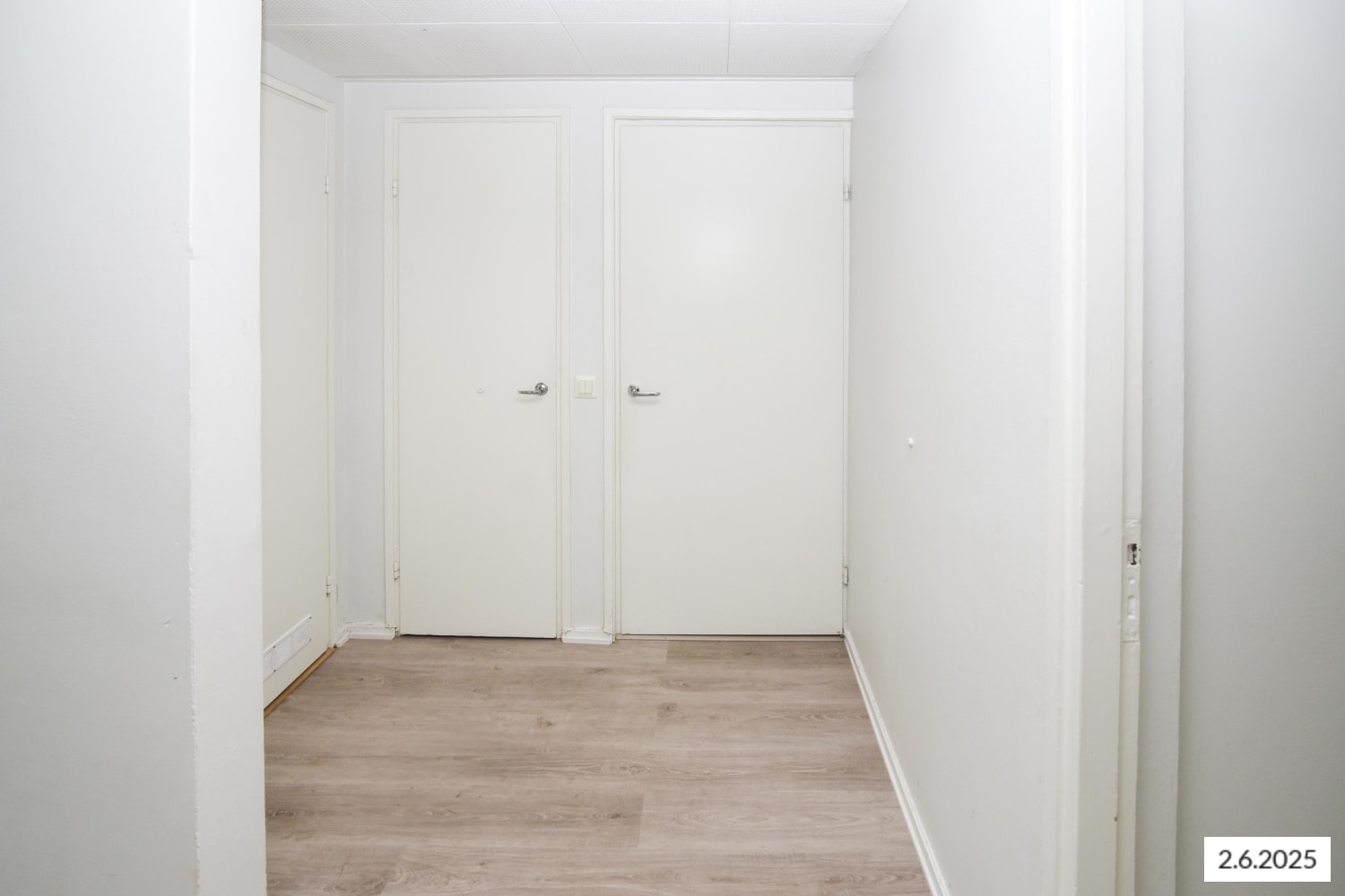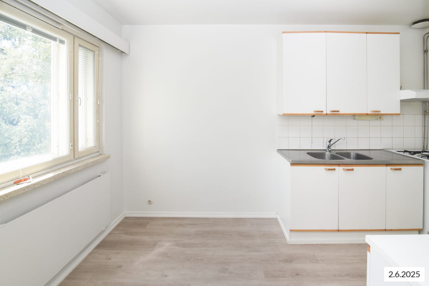 A well-designed rental home awaits its new residents in the charming neighborhood of Puotila. This traditional three-room apartment features a separate kitchen with plenty of space for a dining table by the window. The adjoining living area opens onto a glazed balcony with lush courtyard views—perfect for a breakfast set or summer flower arrangements.