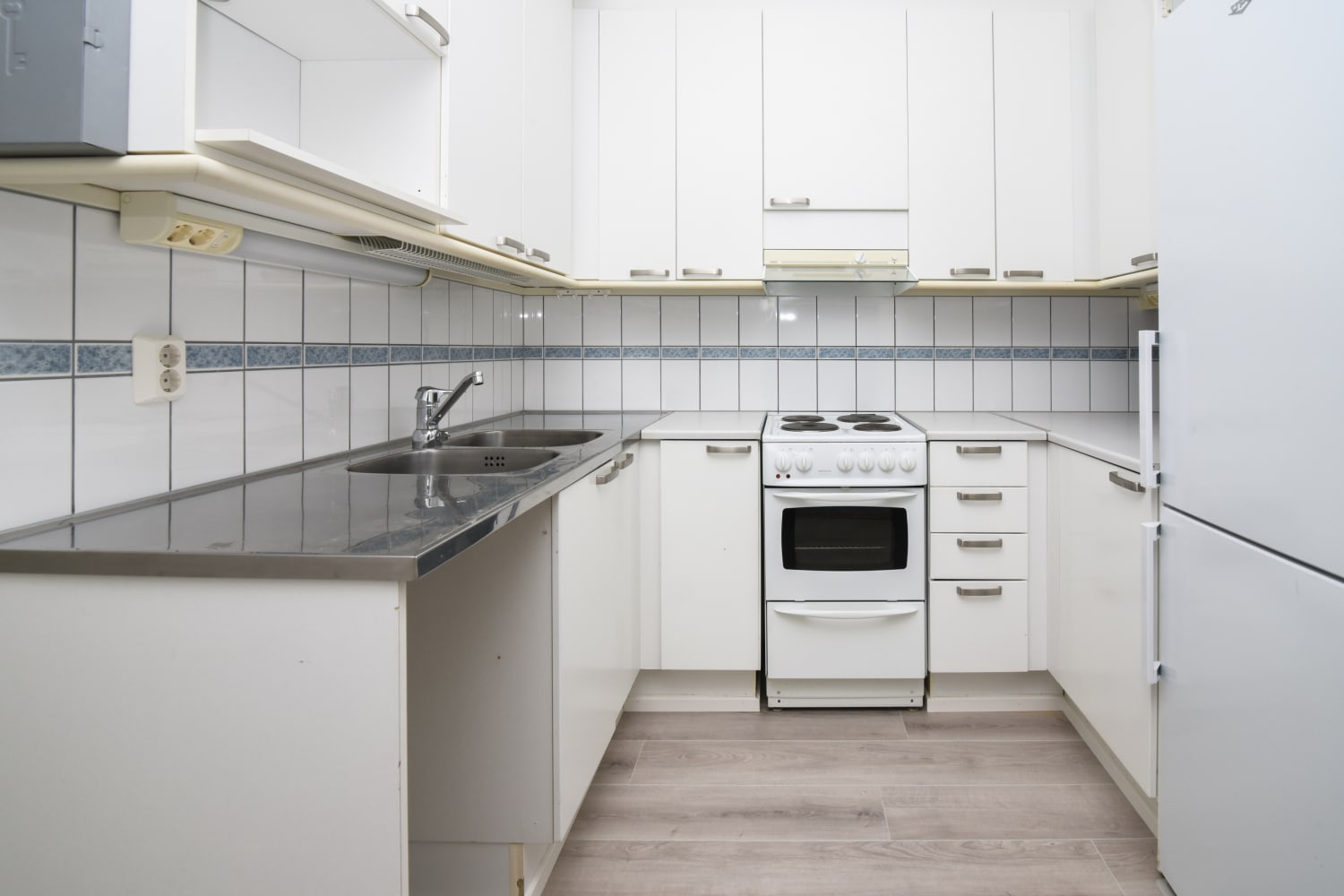 The units have parquet floors, cosy light-coloured kitchens, and glassed-in balconies. The bathrooms mostly have light blue floor tiling with white tile and a narrow blue-tinted mosaic border on the walls. All units have space for a dishwasher and washing machine.
