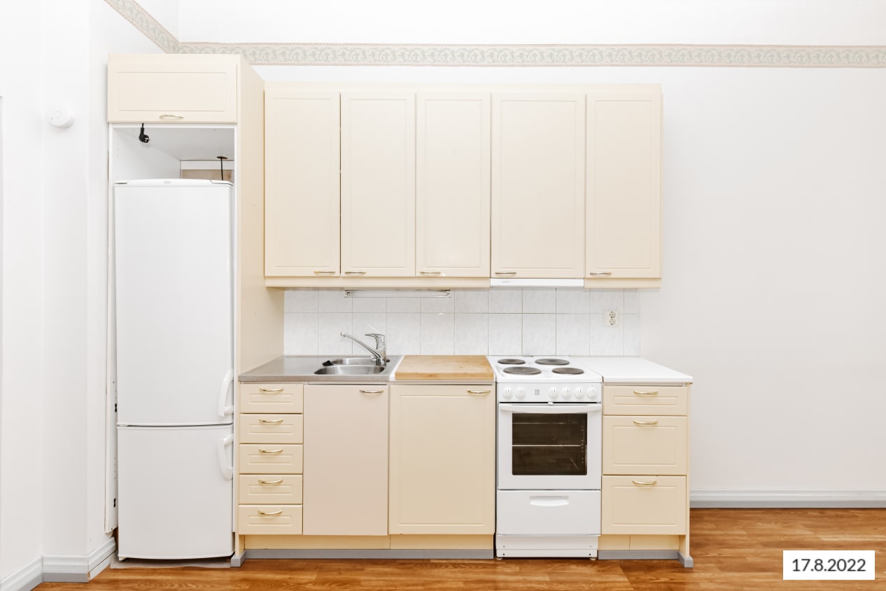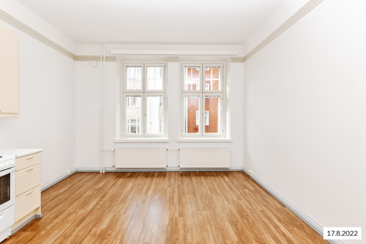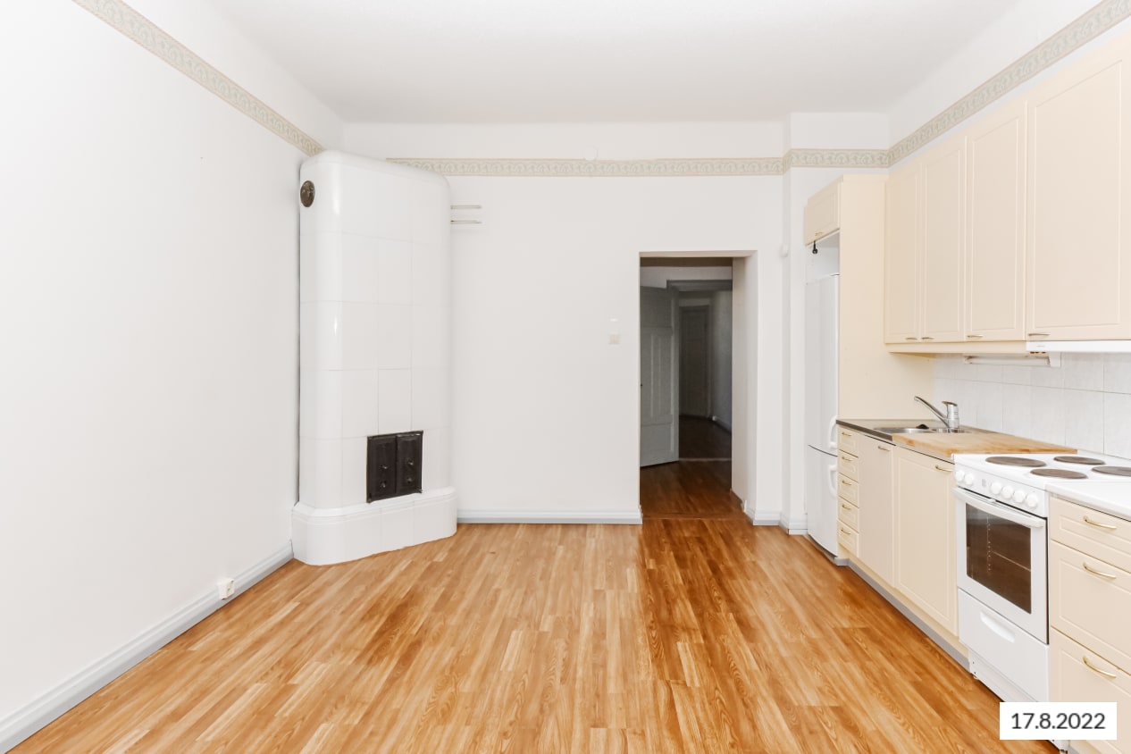 Renovated in the 1990s, this charasteristic Jugend-style building stands close to the legendary Kurvi street and offers excellent access to all public transport. The homes in the building are city homes with large rooms and lots of character. The units oor units have balconies and some of the units feature splendid (but non-functional) tiled stoves.