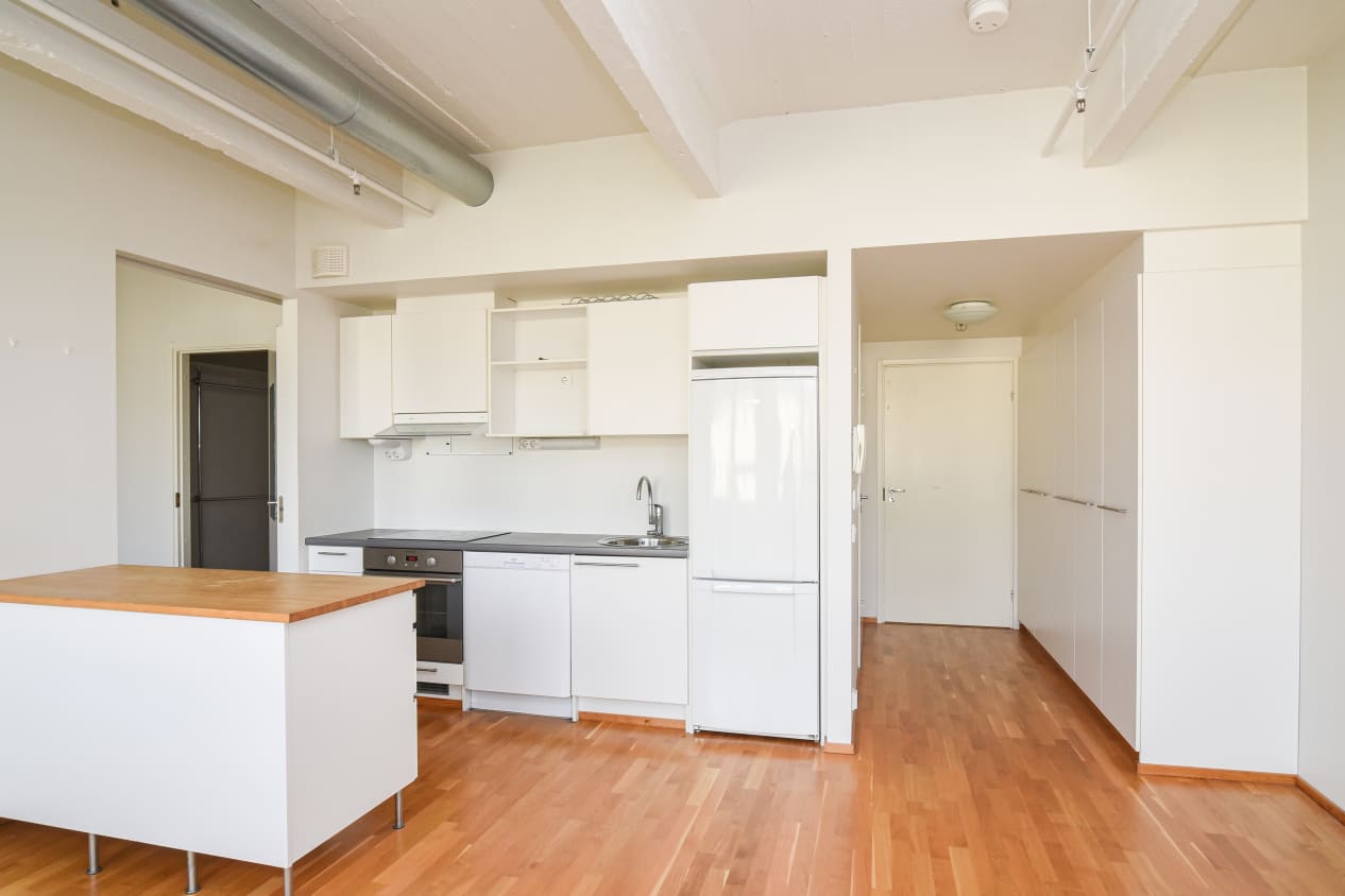 This building in Pääskylänrinne is a former office and business building renovated into apartments with a loft feel that are perfect for the urban lifestyle. The building has 79 classy homes from studios to two-bedroom apartments. Some of the apartments have a balcony or a terrace overlooking the peaceful courtyard. There are splendid views from the penthouse apartments over Helsinki’s rooftops, with some of the homes even enjoying a view of the sea.