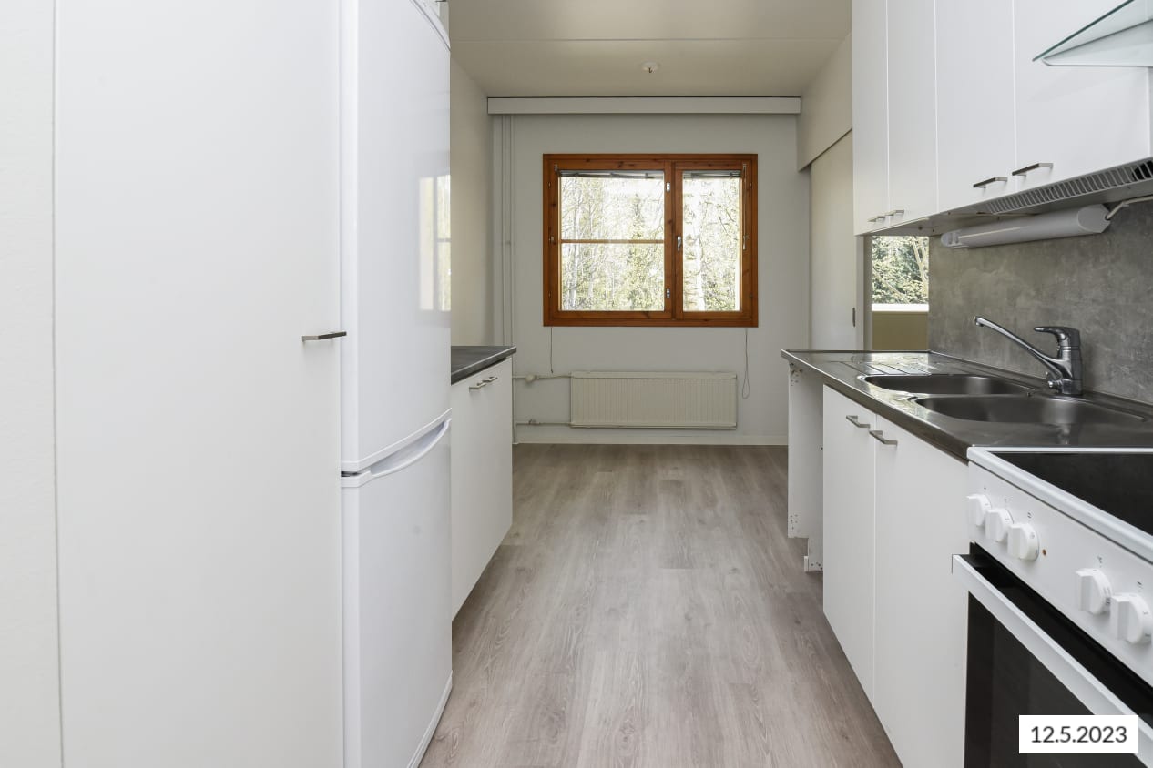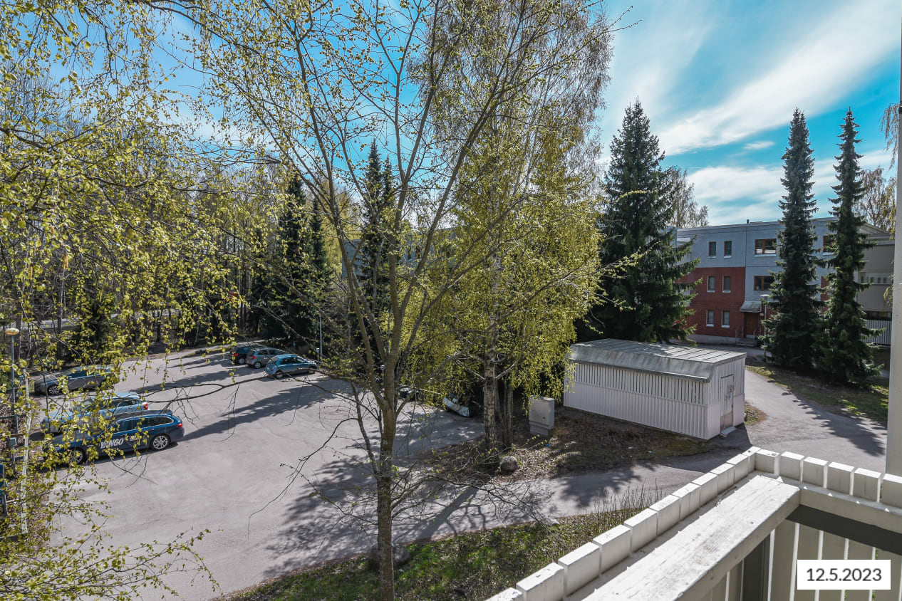 Every home in this three-storey building located by a park right by the border between Helsinki and Vantaa has a balcony and a clean and practical layout. There is space for a washing machine in the bathrooms. There are sheltered grounds between the buildings for play and relaxation.