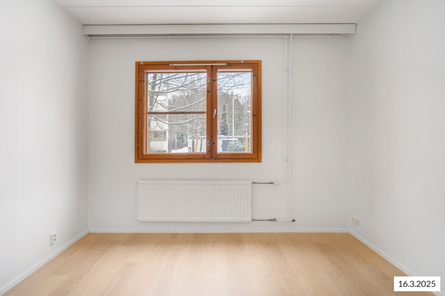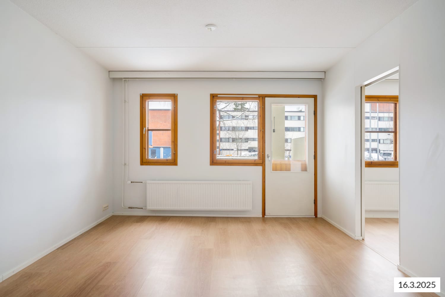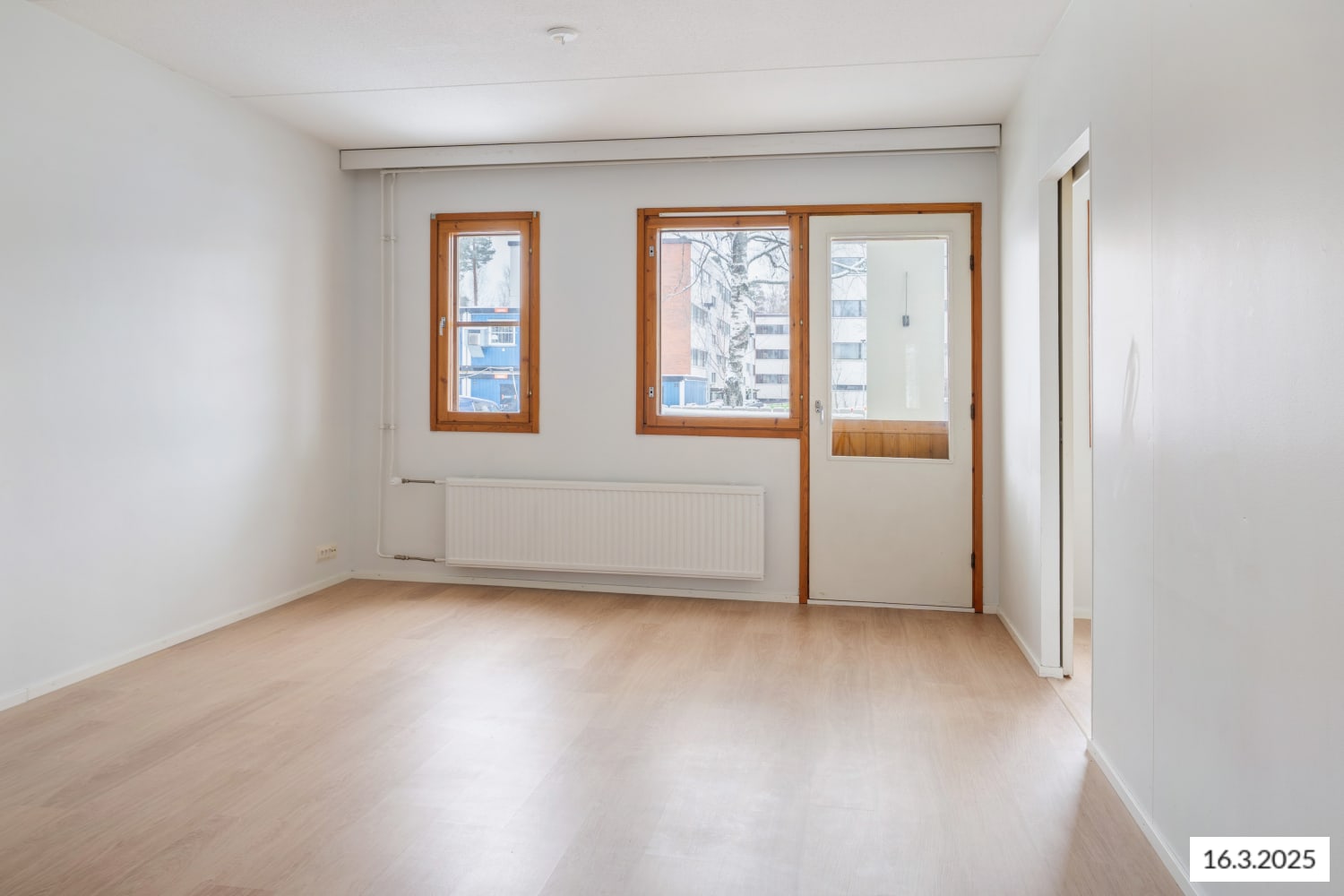 Every home in this three-storey building located by a park right by the border between Helsinki and Vantaa has a balcony and a clean and practical layout. There is space for a washing machine in the bathrooms. There are sheltered grounds between the buildings for play and relaxation.