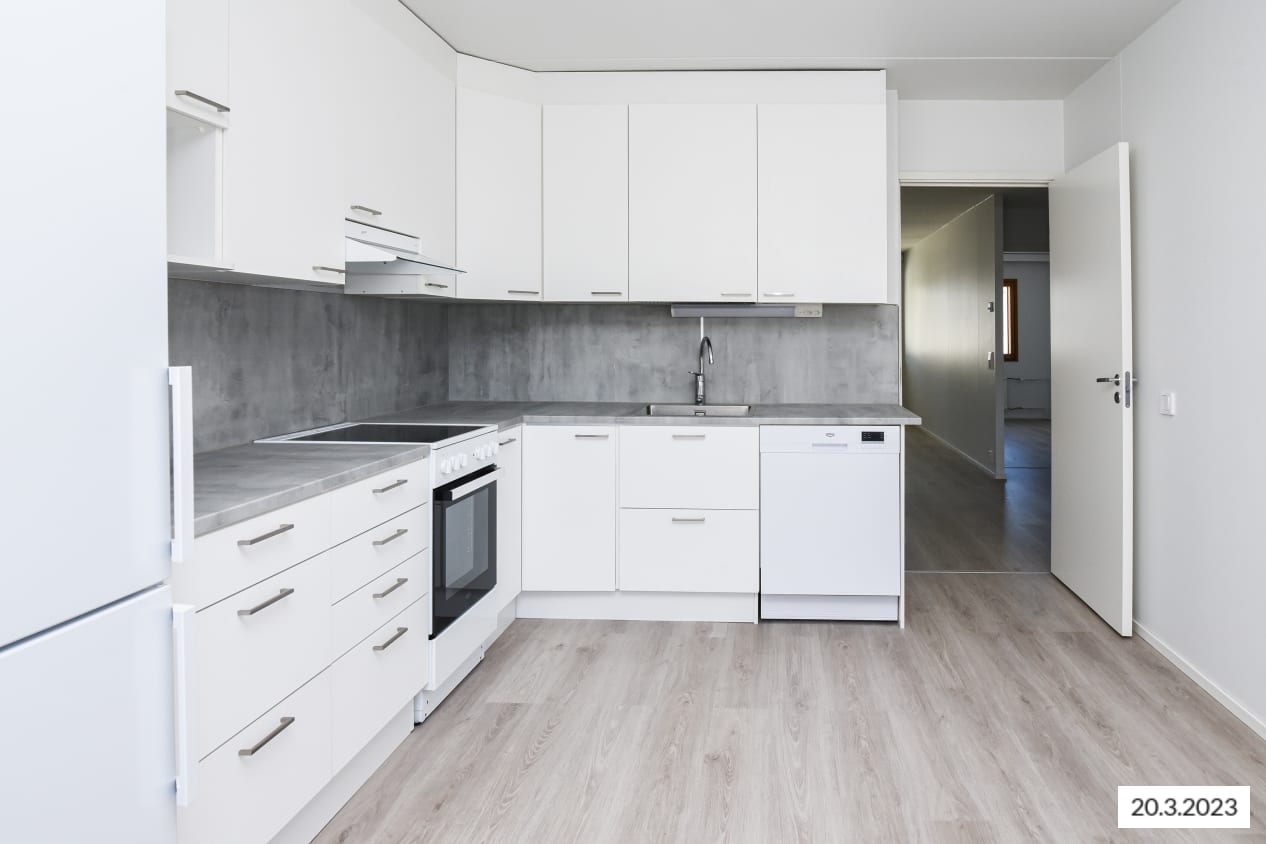 Every home in this three-storey building located by a park right by the border between Helsinki and Vantaa has a balcony and a clean and practical layout. There is space for a washing machine in the bathrooms. There are sheltered grounds between the buildings for play and relaxation.