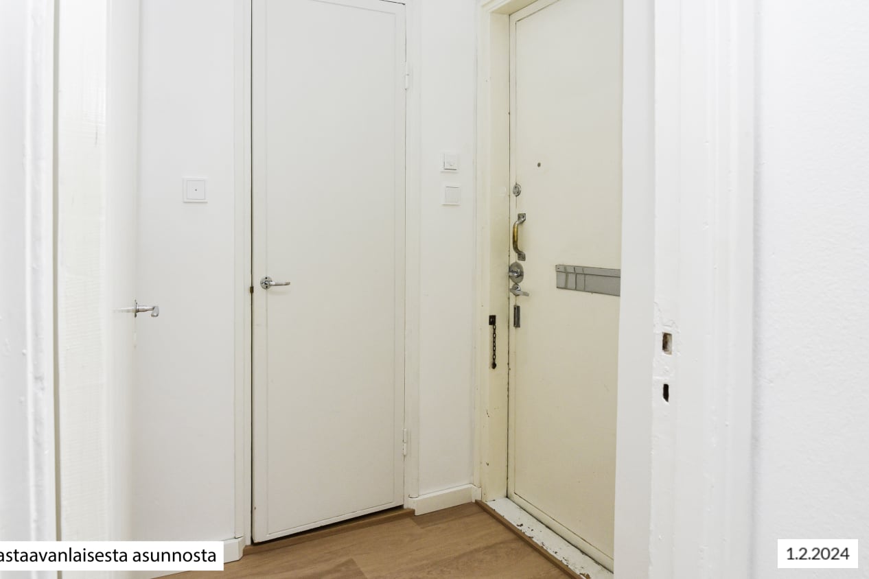 The bright, 2nd-floor studio apartment has an atmospheric bay window overlooking Savilankatu. The cosy kitchen, renovated in 2024, has space for a dining table under the window.