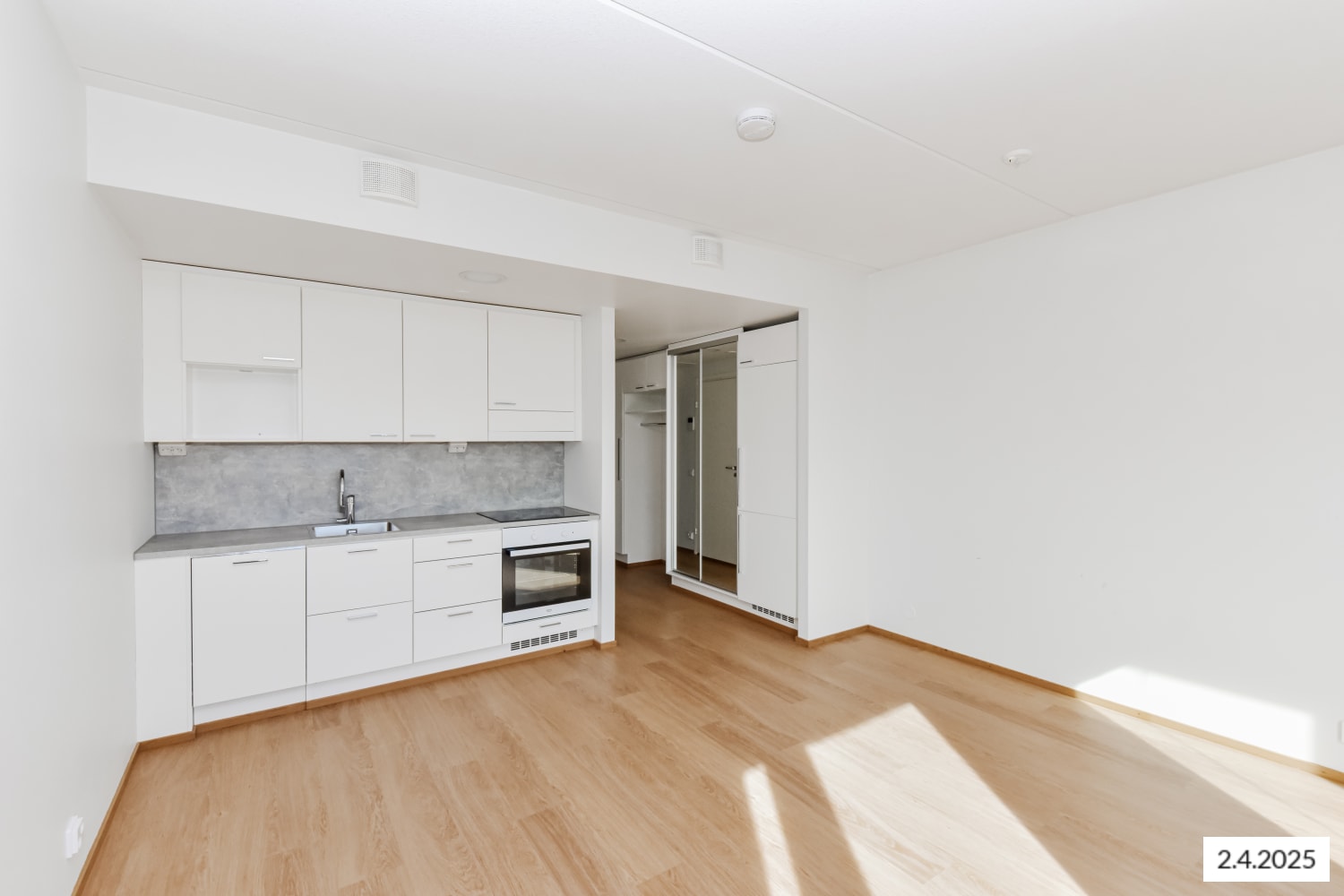 The layout of this top-floor studio apartment is spacious and functional. The south-facing glassed-in balcony offers extra space and invites you to enjoy warm summer days. The home is easy to decorate to your liking thanks to the beautiful, calm and light-coloured surface materials.