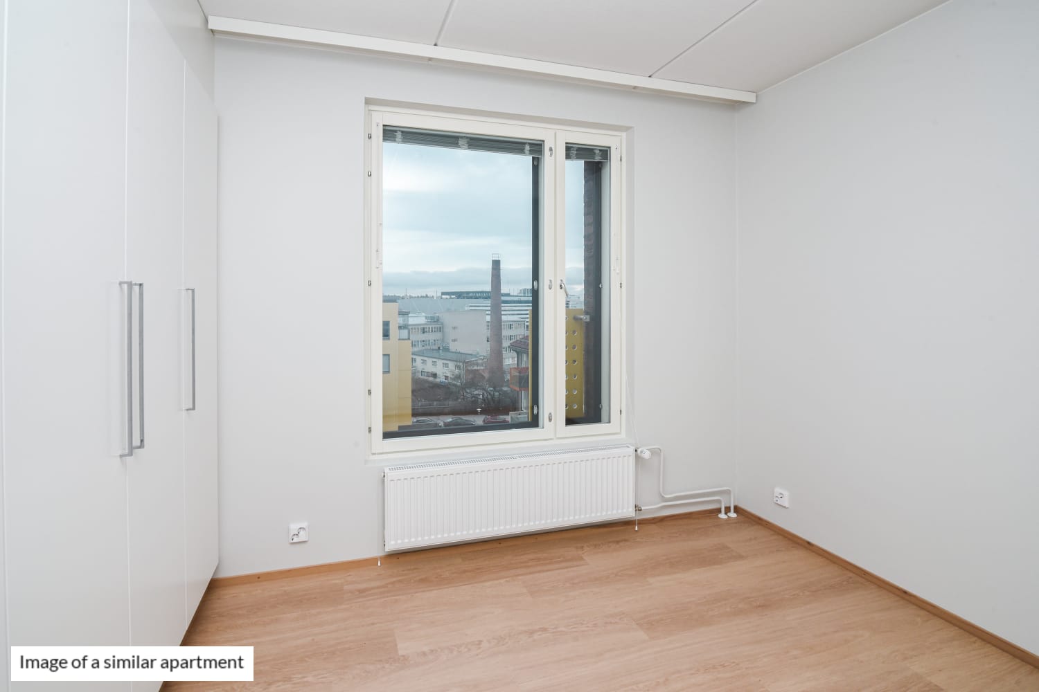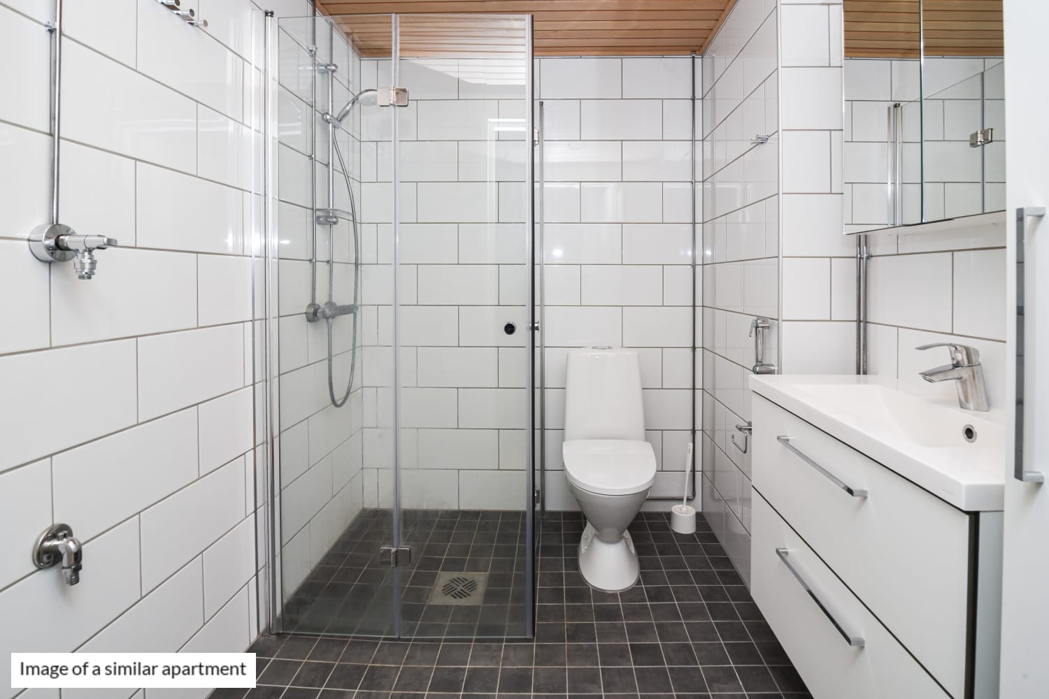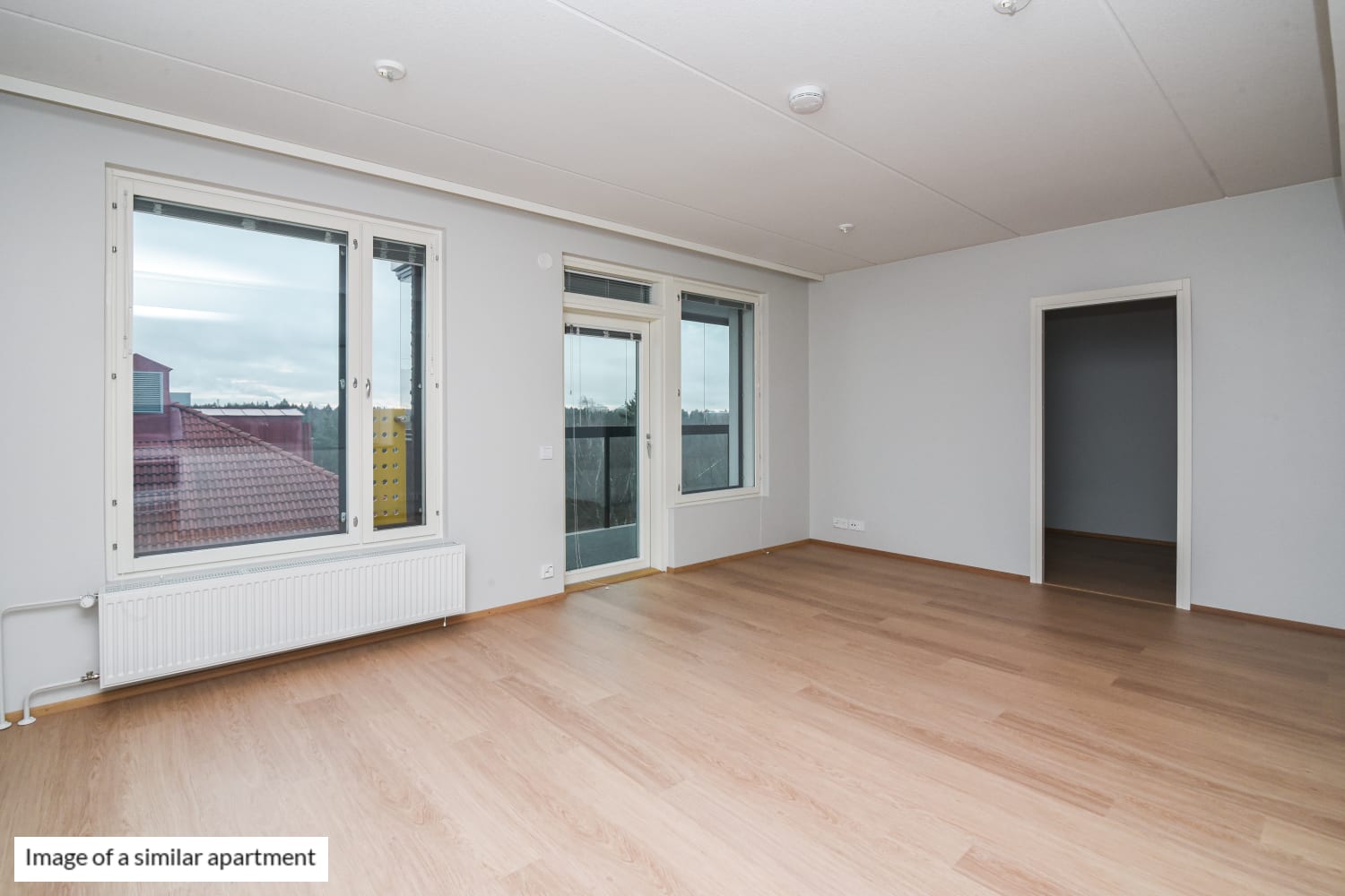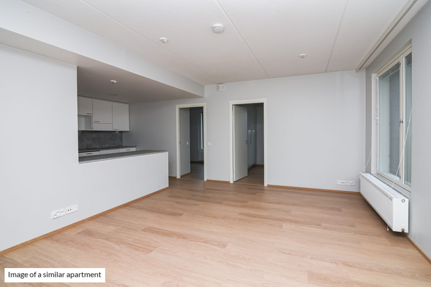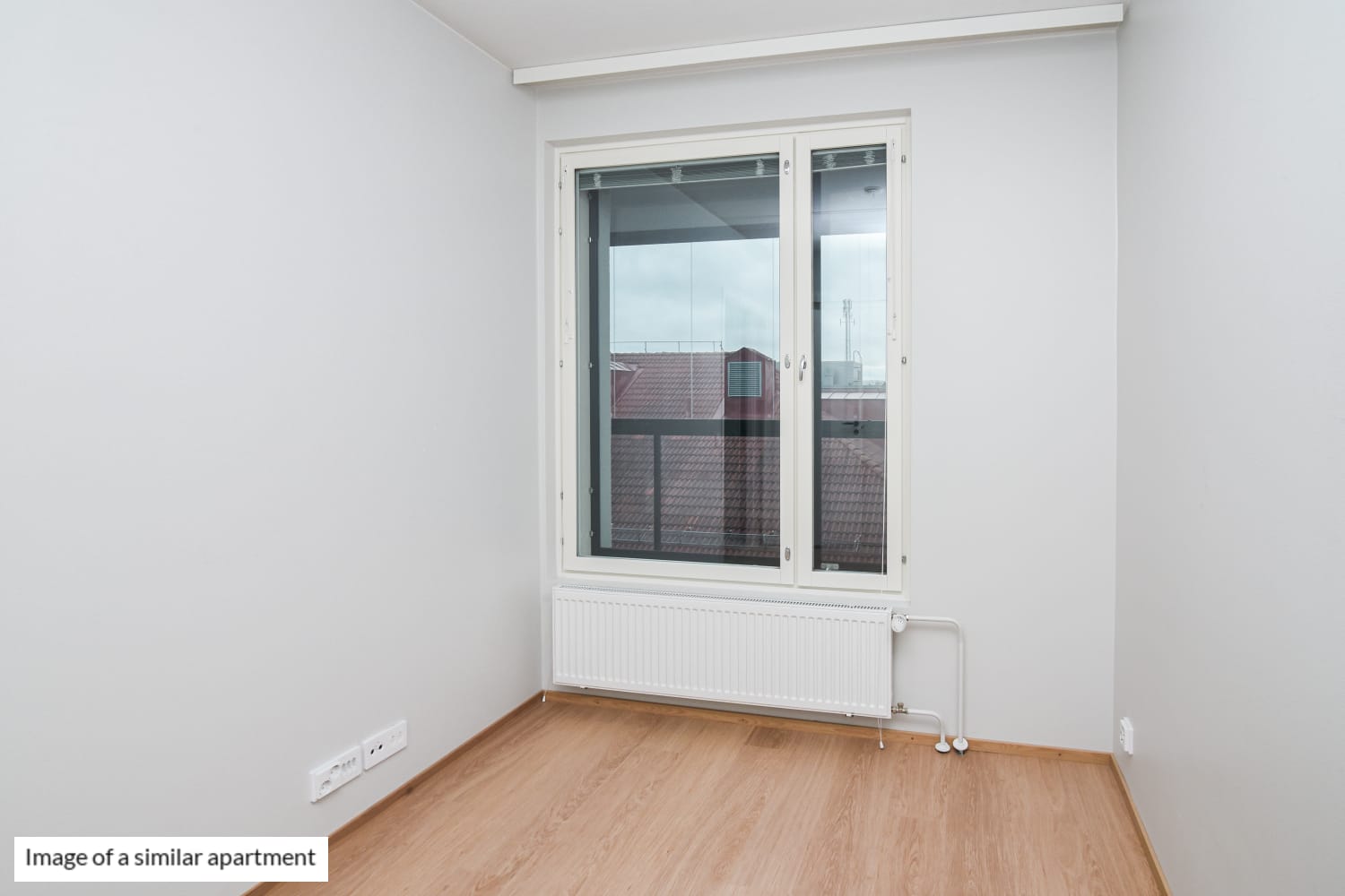 The interior materials and furnishings of the light-toned apartments are timeless and high-quality. The color world follows a calm Scandinavian style, which suits many tastes. The floors of the apartments are light oak laminate, and the walls are painted white. The entrance has either an open coat rack or a mirrored sliding door wardrobe. The cabinets in the bedrooms are white. The windows come with white Venetian blinds. All cabinets and closet furniture are domestic production of Kankarin Kaluste. The kitchen cabinet doors are white microlaminate. The space between the top and bottom cabinets and the worktop are grey laminate. The standard equipment includes a fridge-freezer in studio and 2br+kitchen apartments and a tall fridge and freezer, dishwasher, induction hob, separate oven, and cooker hood in 3br+kitchen apartments. The cold appliances and dishwashers are integrated into the kitchen furniture. The bathroom fixtures are from SATO's Kide collection, and their material is very durable and beautiful white solid laminate. The bathroom walls are white brick-laid tiling, and the floor tiling is grey. There is a space for a washing machine and tumble dryer.