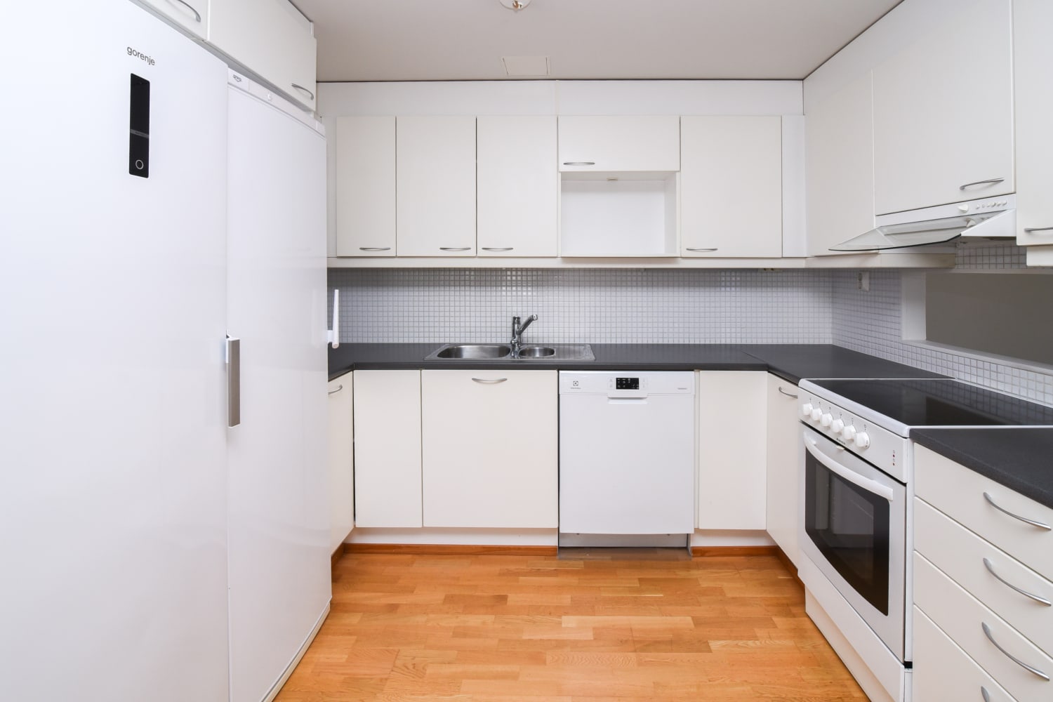 In the kitchen, the dishwasher makes everyday life easier. A proper dining table can be placed by the window extension of the kitchen, where the whole family can gather for meals.