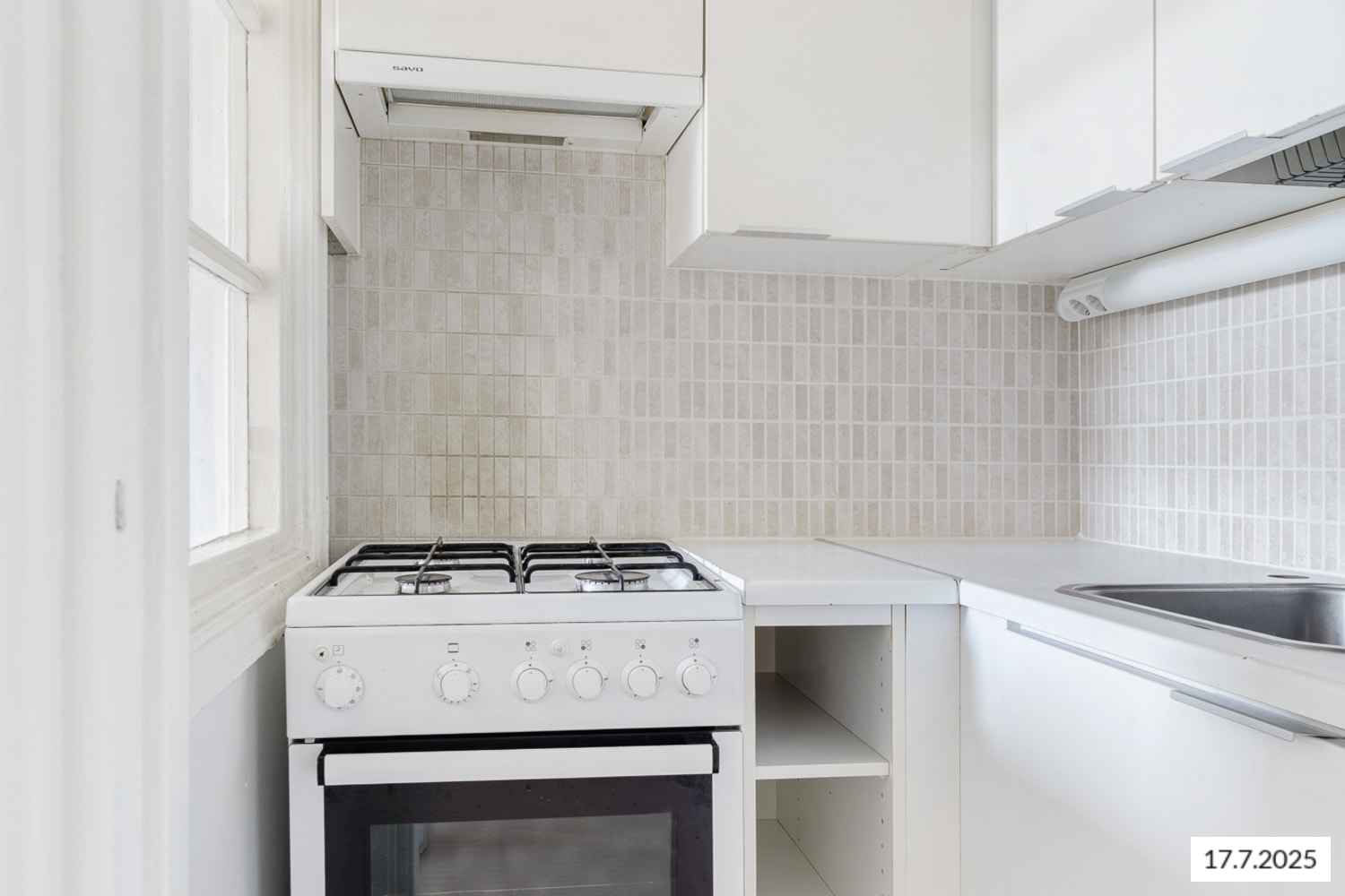 This building with a prime location across from the lush Paavalinpuisto park and with excellent access to public transport houses compact city homes. Most of the one-bedroom apartments with kitchenette have been converted into spacious studio apartments with kitchen.