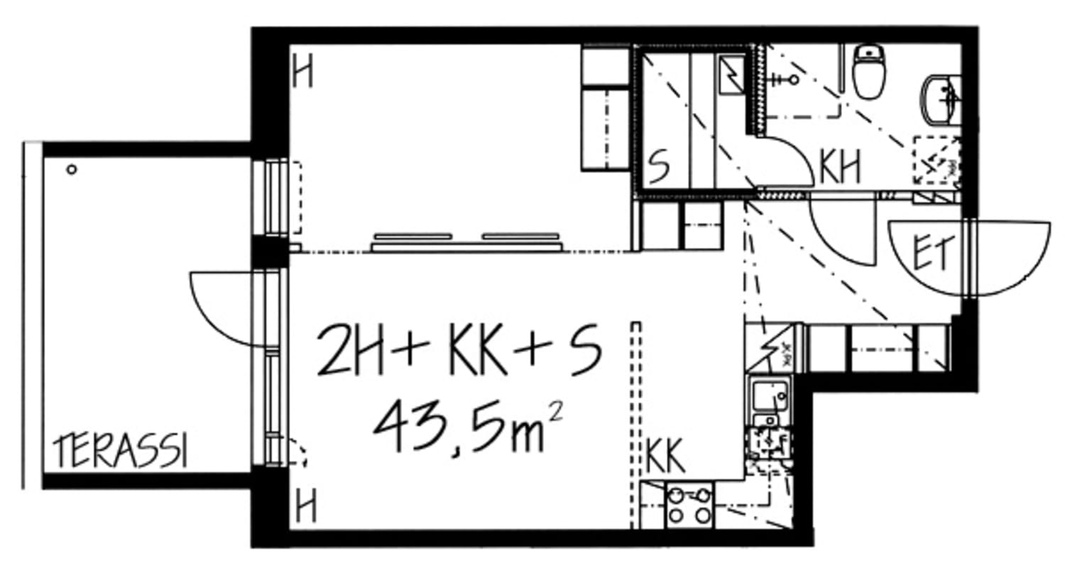 - 1 bedroom, 43.5 m²