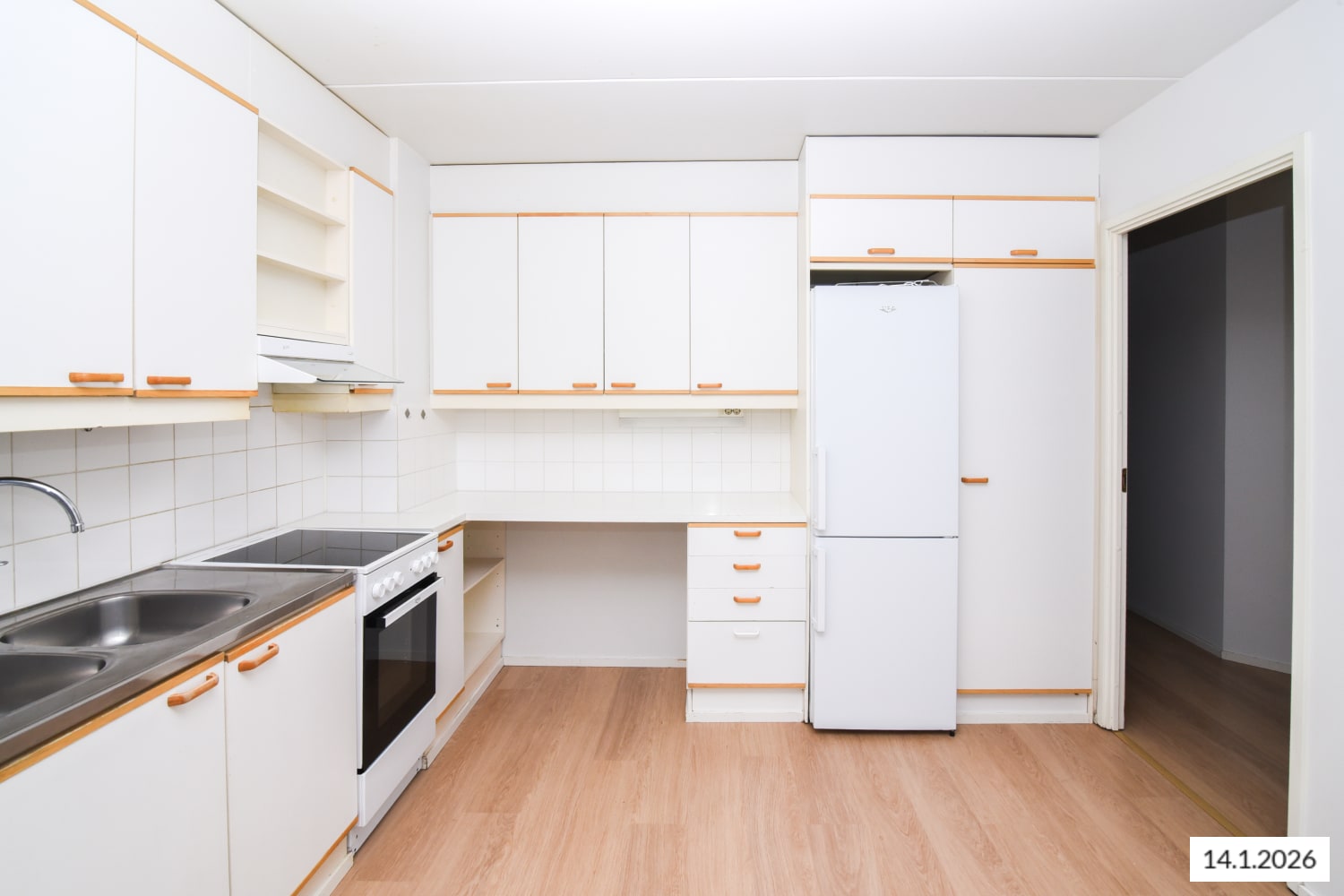 The separate kitchen is equipped with a dishwasher, freezer-refrigerator, and an easy-to-clean ceramic hob.