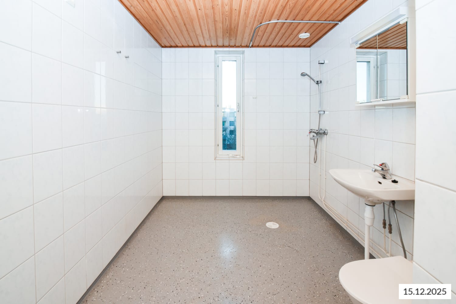 The bathroom is spacious enough to accommodate both a washing machine and a tumble dryer.