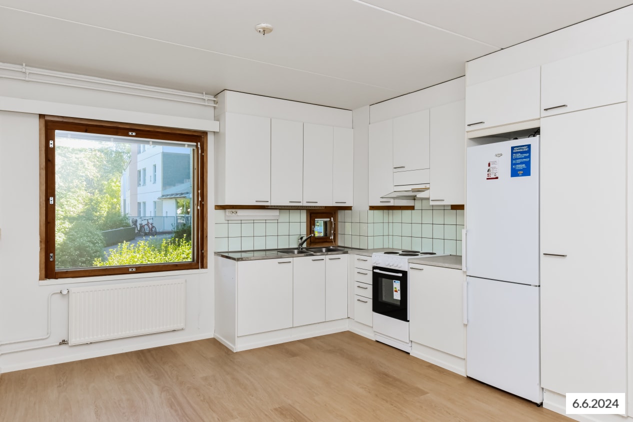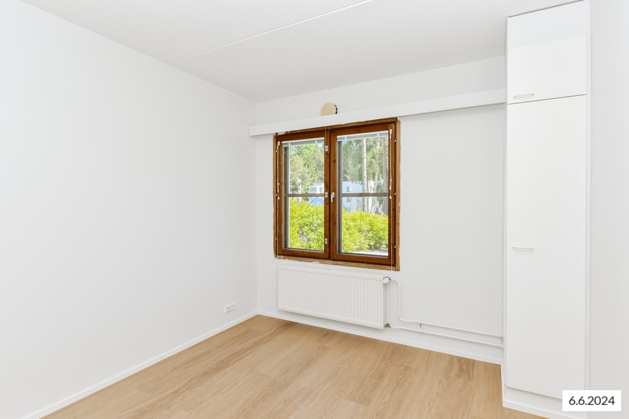 A cosy apartment close to large parks and varied outdoor trails awaits its new residents. Located on the western edge of the leafy Pohjavedenpuisto park, these pleasant homes have a sheltered balcony and space for a washing machine. The apartments have clear floorplans and functional layouts.