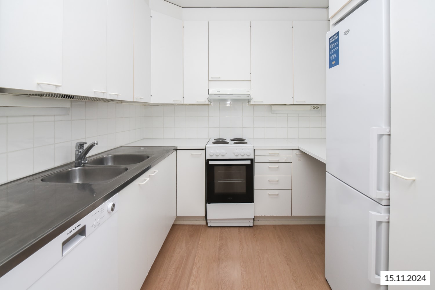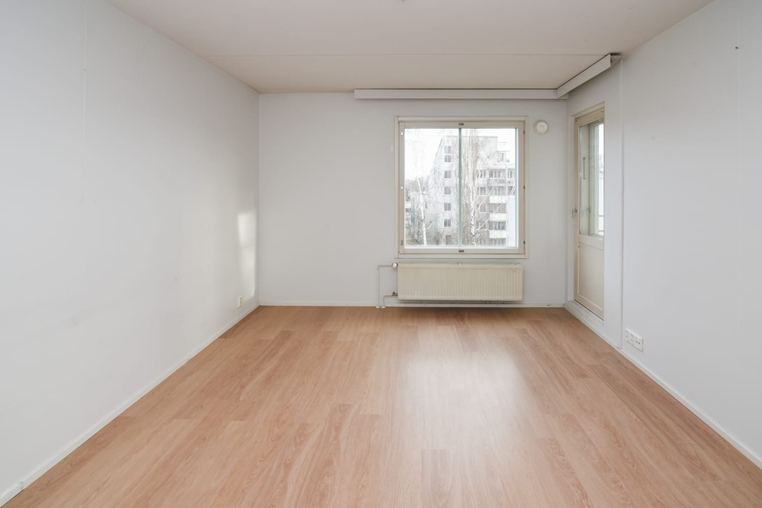 This two-bedroom apartment features a traditional and easily furnishable layout. The home offers plenty of built-in storage space in the entryway, bedrooms, and a separate walk-in closet. Next to the kitchen is a dining area with space for a dining table by the window. The living room opens onto a balcony where you can quietly enjoy the fresh air. The floors throughout the home are laminate, and the bathroom is stylishly fully tiled.