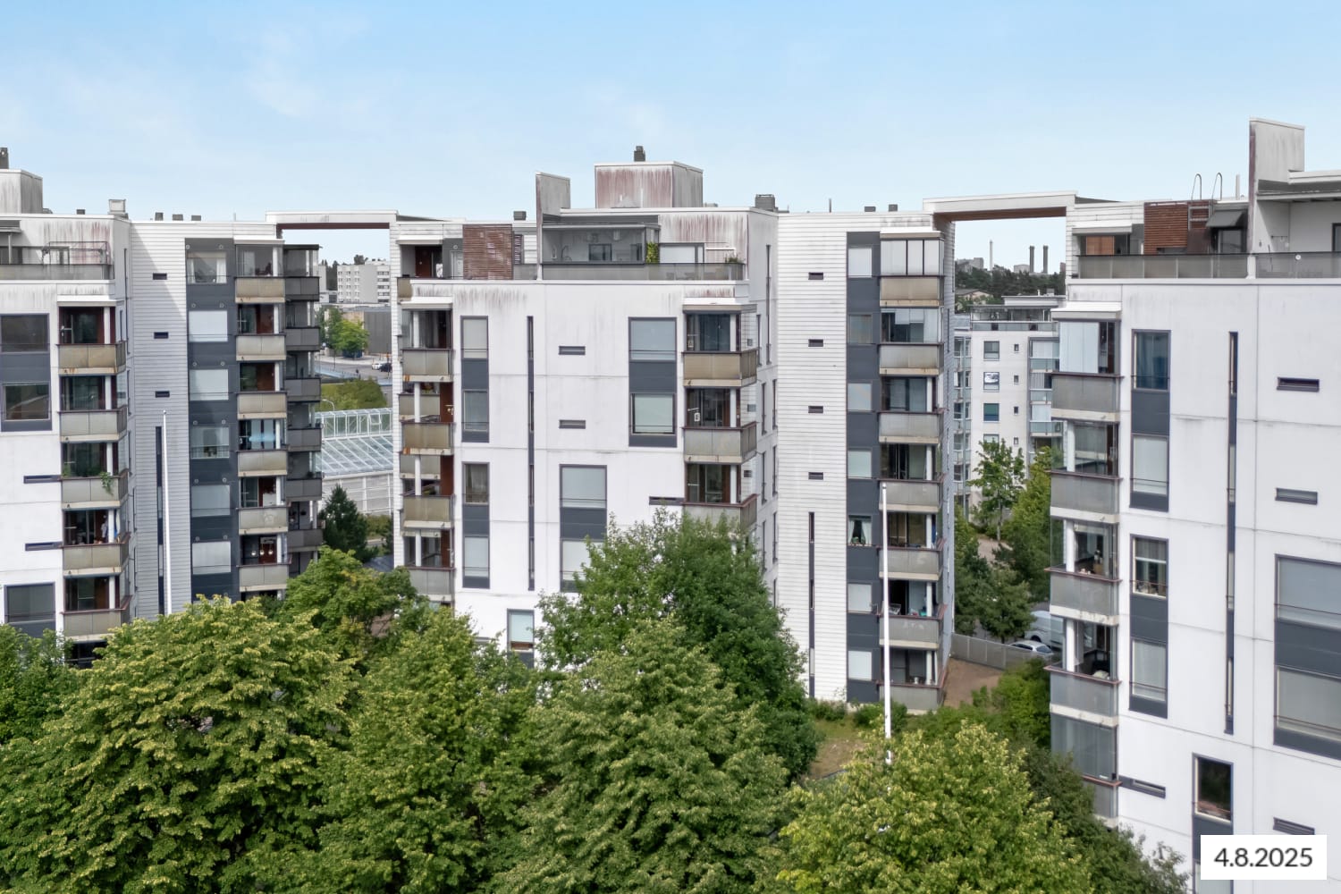 Located at the edge of Pohjavedenpuisto park just a stone’s throw from the metro station, this building contains many types of units ranging from studios to three-bedroom family homes. All units have balconies and some offer unobstructed views of the park. Most rooms in the units have vinyl flooring. The bathroom floors are mostly done in wet area vinyl flooring, the walls are tiled. All units are equipped with a fridge-freezer and four-burner electric cooker and also have space for a microwave, dishwasher and washing machine.