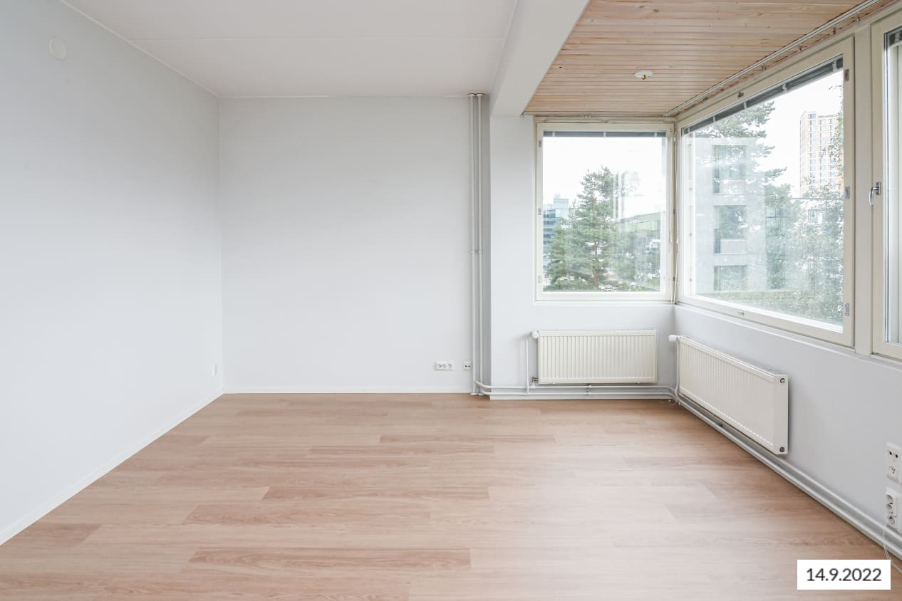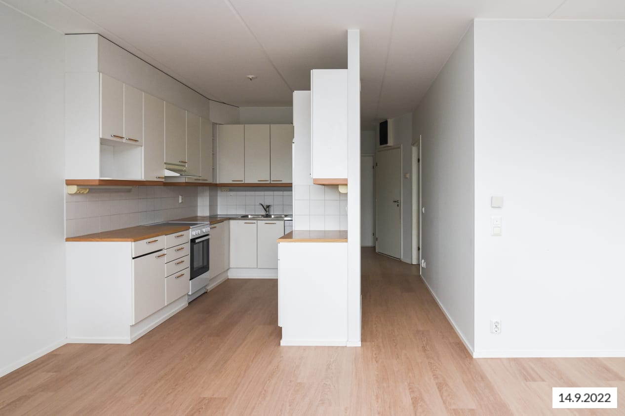 Located in a well-maintained building just a couple of minutes' walk from the metro station and diverse daily services, a stylish small one-bedroom home has become available. Its peaceful location on the top floor, bright layout, and private sauna enhance the comfort of this convenient rental home.