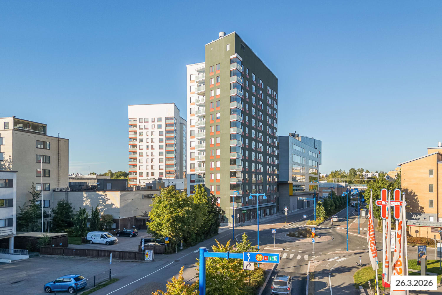 As Oy Järvenpään Basso, located in the centre of Järvenpää, is a 14-storey apartment building with a lift, completed in October 2022, comprising 104 residential units and commercial premises. The building is situated close to Järvenpää railway station and local services. Järvenpää Beach Park and Järvenpää Upper Secondary School are also located within a radius of less than one kilometre.
