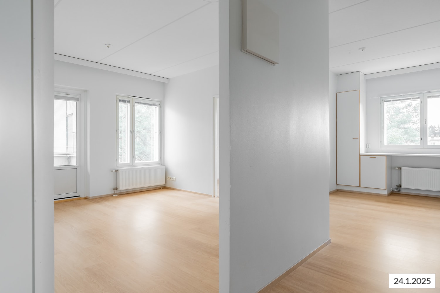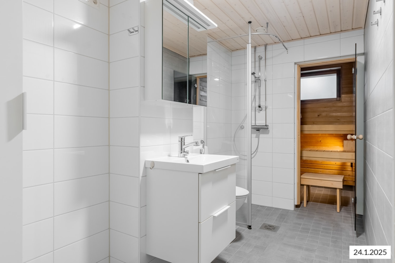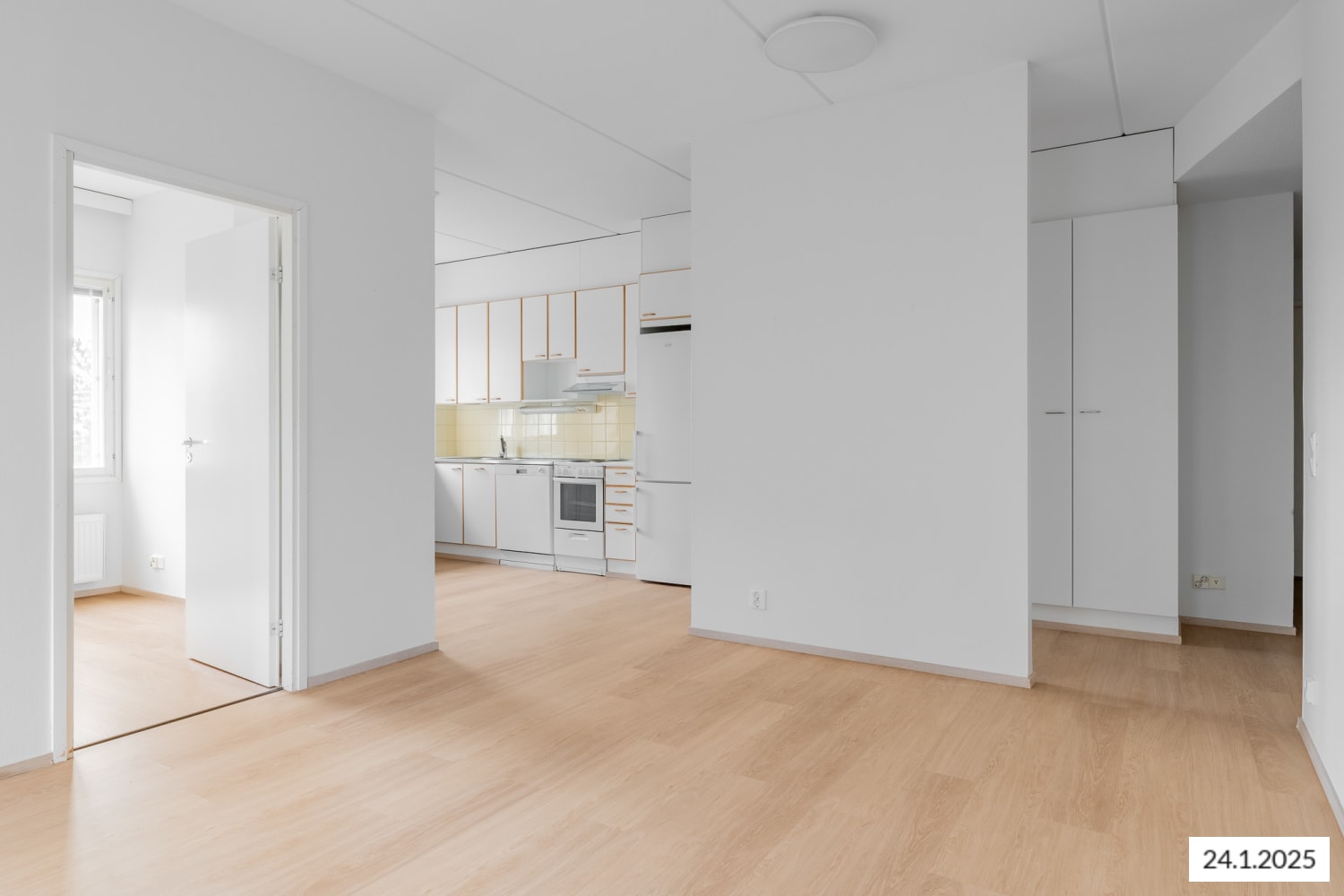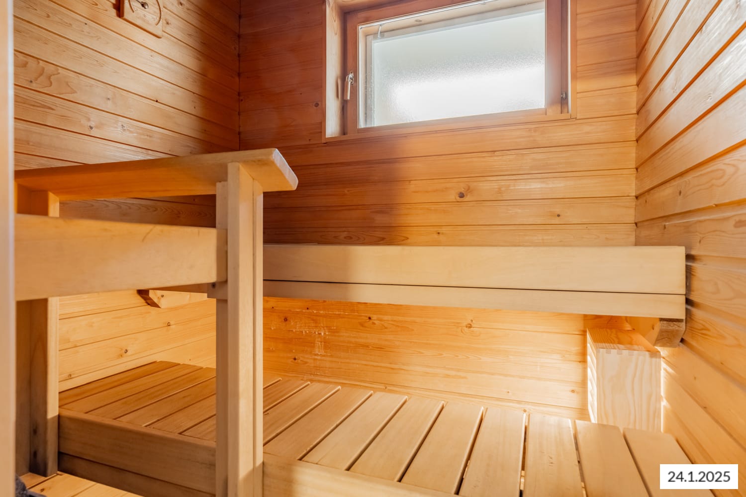This charming and bright one-bedroom apartment is a perfect home for a couple or a single resident who values a modern layout and practicality. The spacious living room and separate kitchen create a sense of openness, while the bedroom provides a peaceful retreat for rest. The apartment features its own sauna, adding a touch of everyday luxury, and a spacious bathroom with a connection for a washing machine. The balcony enhances comfort, offering a cozy outdoor space for relaxation. Ample storage ensures convenience in daily life. This home combines style and functionality seamlessly!